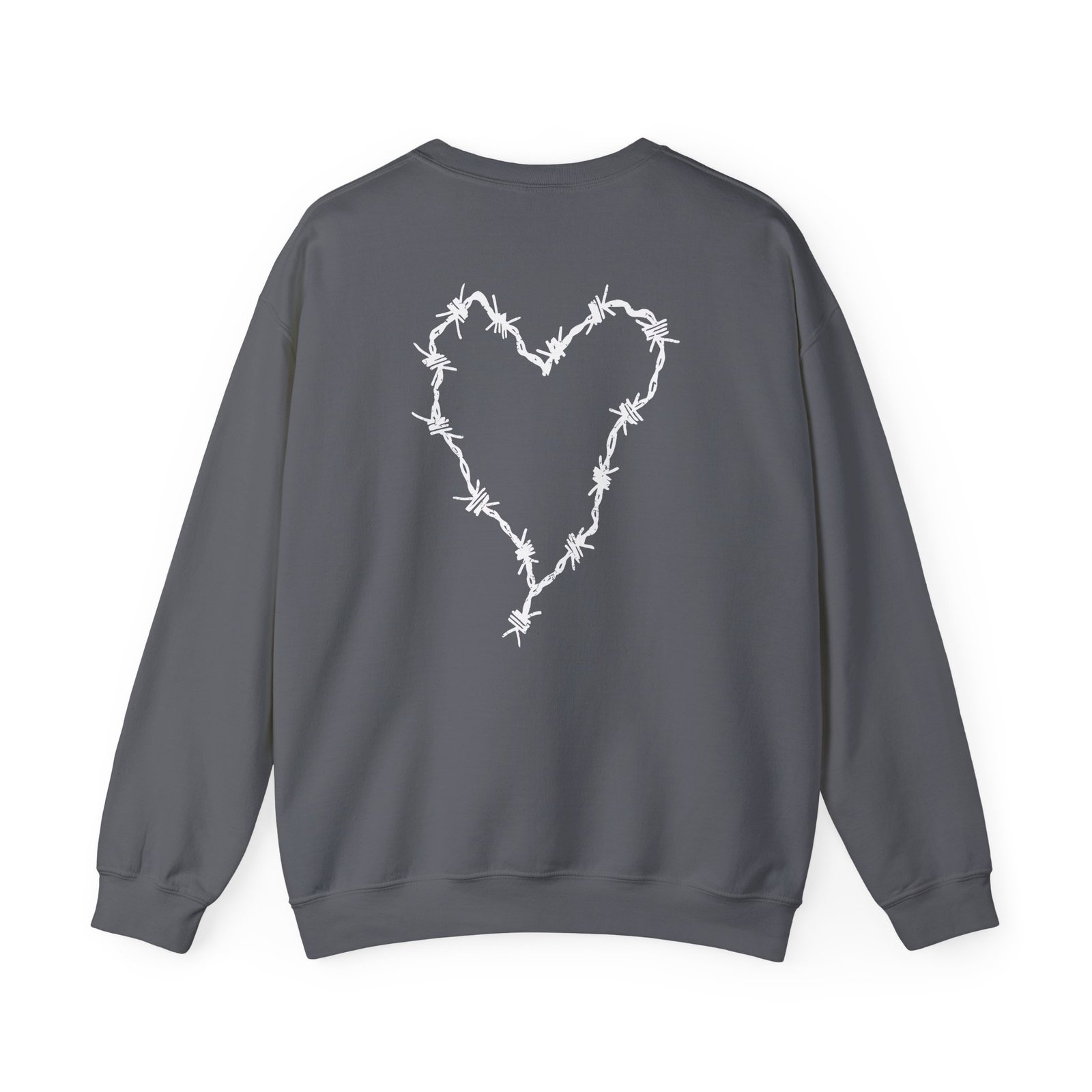 Ideal for any situation, a Frank Iero Barbed Wire Heart unisex heavy blend crewneck sweatshirt is pure comfort. These garments are made from polyester and cotton. This combination helps designs come out looking fresh and beautiful. The collar is ribbed knit, so it retains its shape even after washing. There are no itchy side seams on these sweaters.