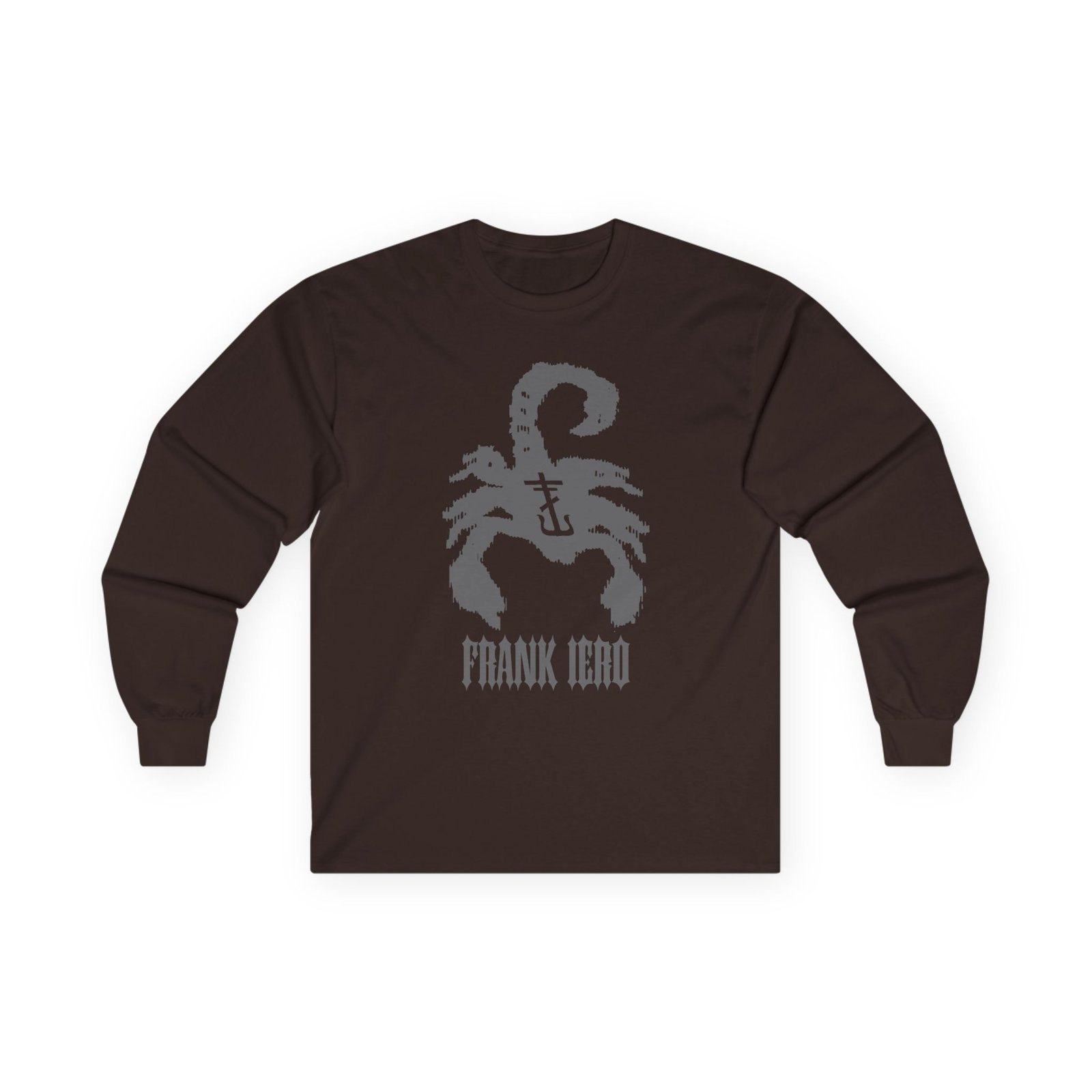 A bit more formal than a standard-issue t-shirt, the Frank Iero Scorpion ultra cotton long sleeve tee is a clear comfort winner. The sleeves also act as a nice frame. There are no side seams. The shoulders are taped for improved durability. This makes for a good fitting around the shoulders and neck. The cotton used for these shirts is environmentally friendly.