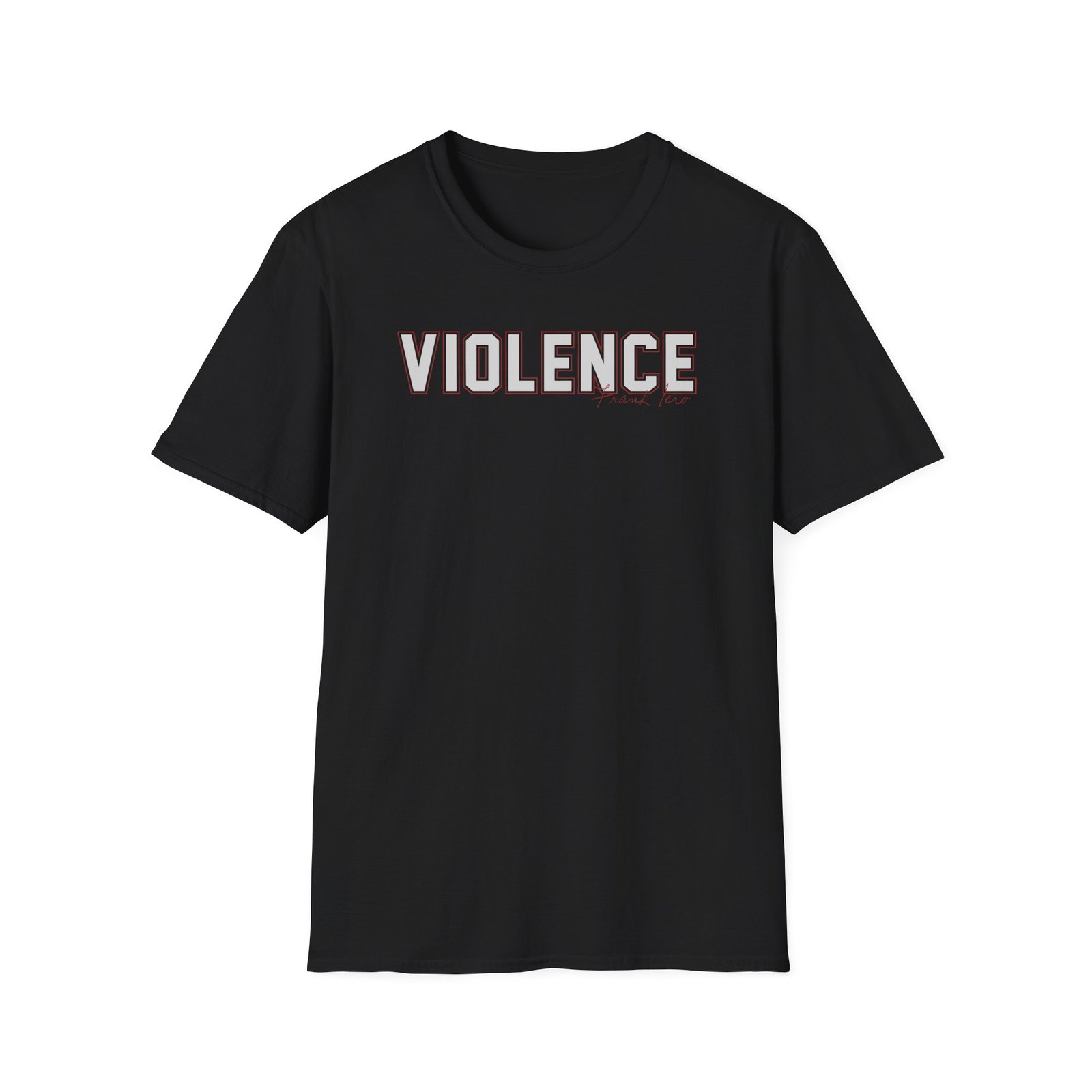 The Frank Iero Violence Varsity unisex soft-style t-shirt puts a new spin on casual comfort. Made from very soft materials, this tee is 100% cotton for solid colors. Heather colors and sports grey include polyester. The shoulders have twill tape for improved durability. There are no side seams. The collar is made with ribbed knitting to prevent curling damage.