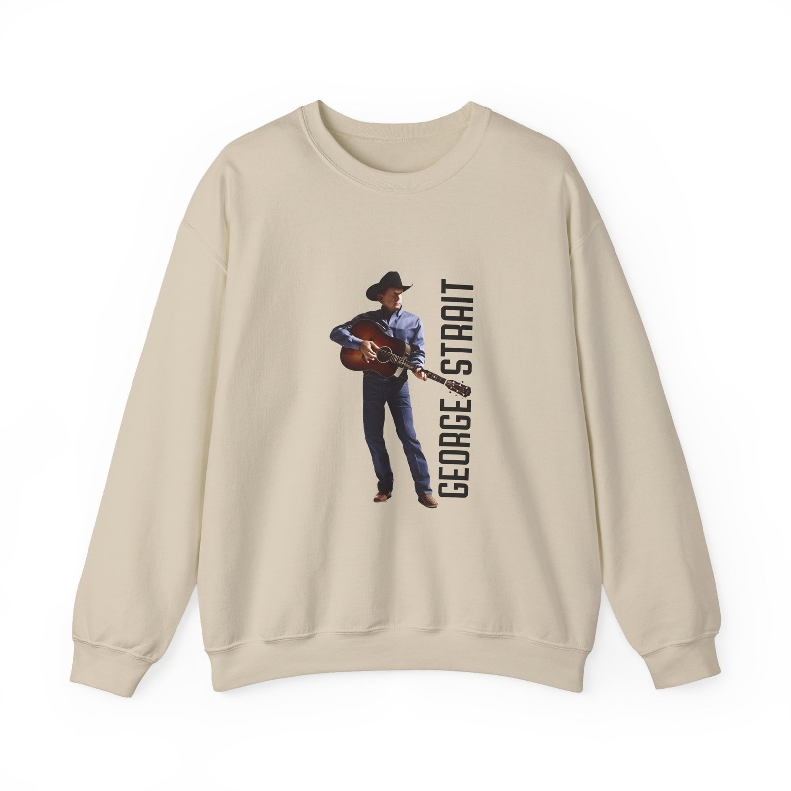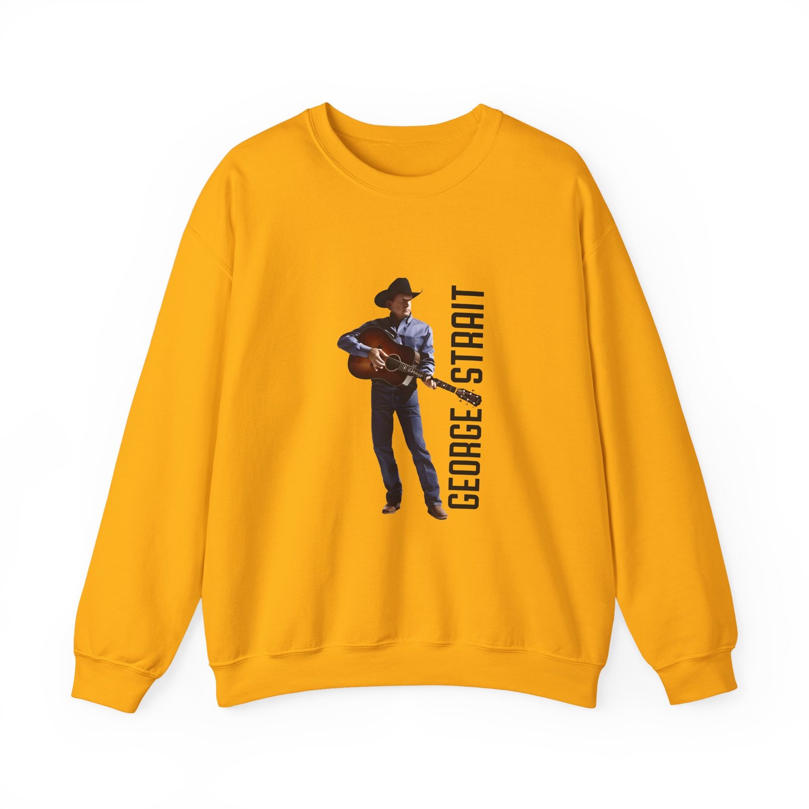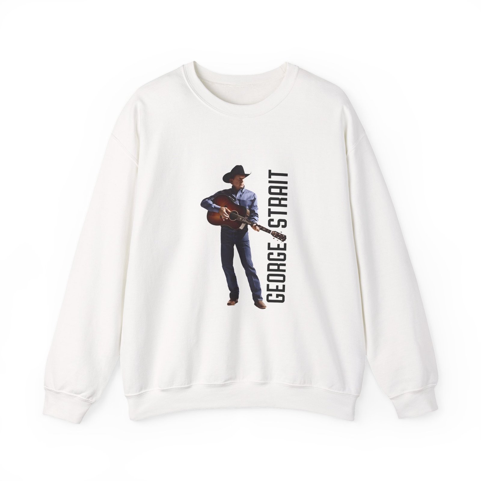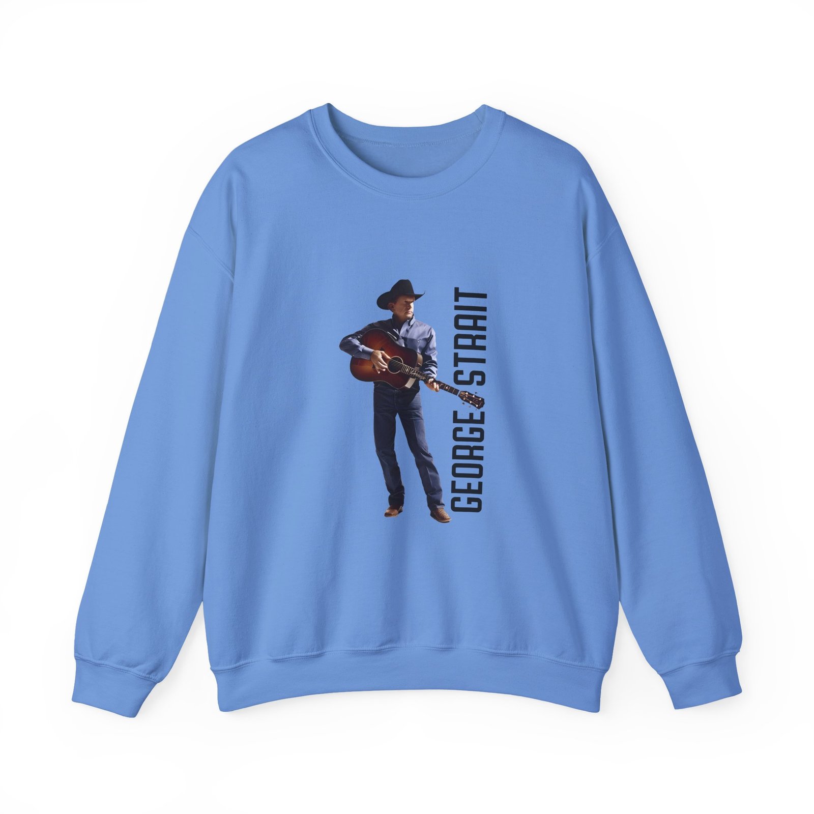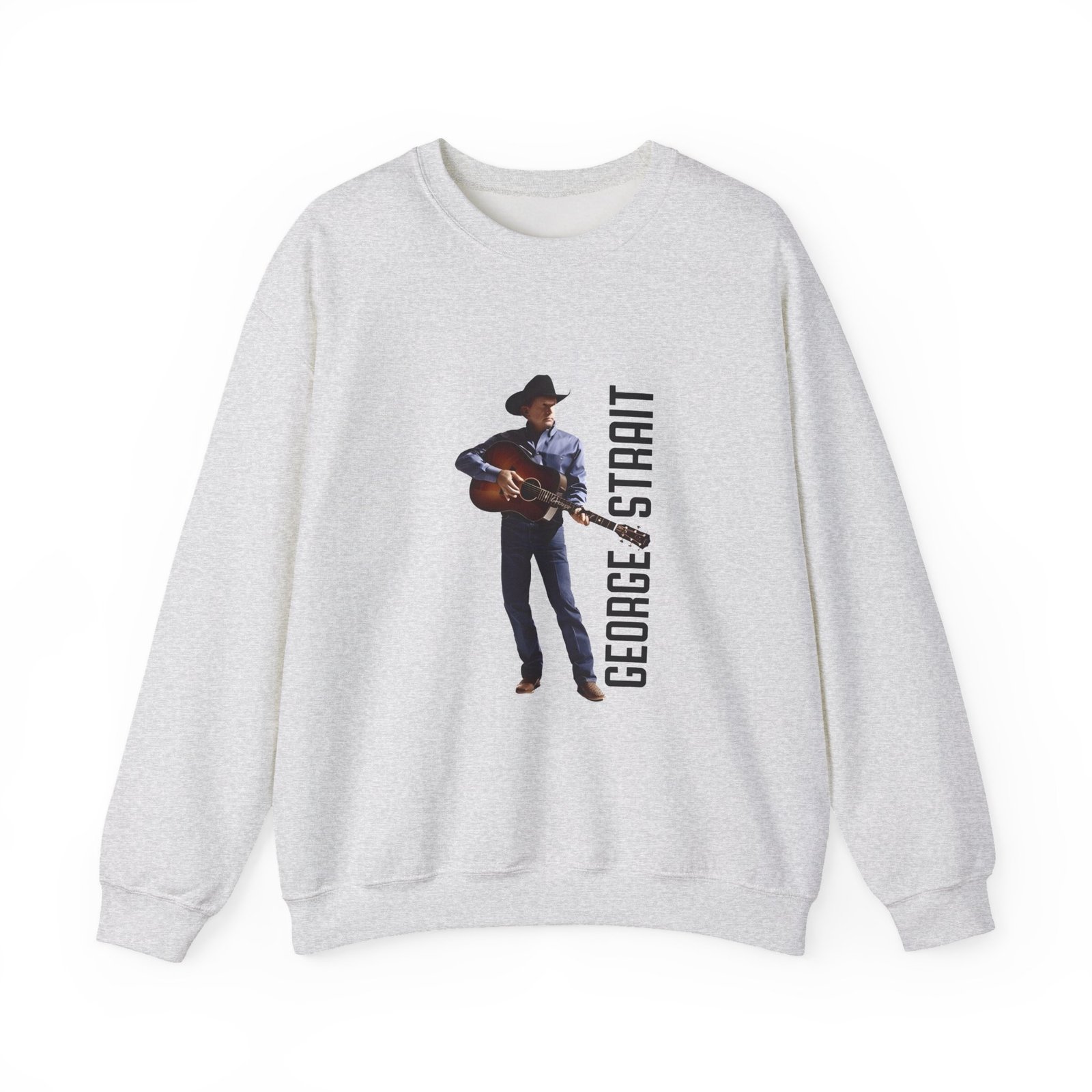 Ideal for any situation, a George Strait Heather Denim Silhouette unisex heavy blend crewneck sweatshirt is pure comfort. These garments are made from polyester and cotton. This combination helps designs come out looking fresh and beautiful. The collar is ribbed knit, so it retains its shape even after washing. There are no itchy side seams on these sweaters.