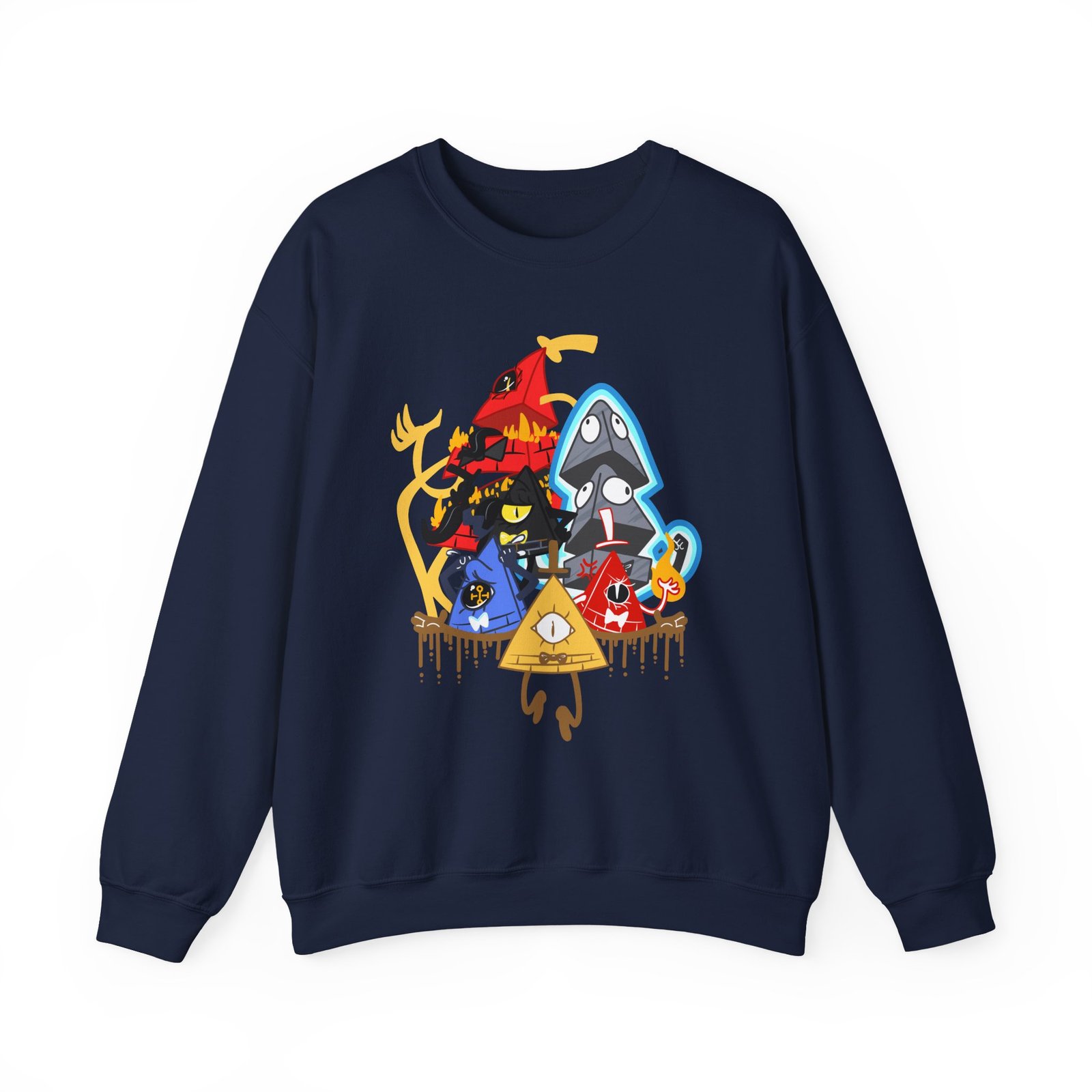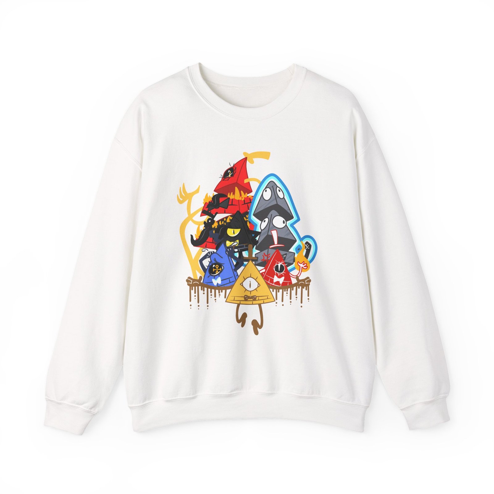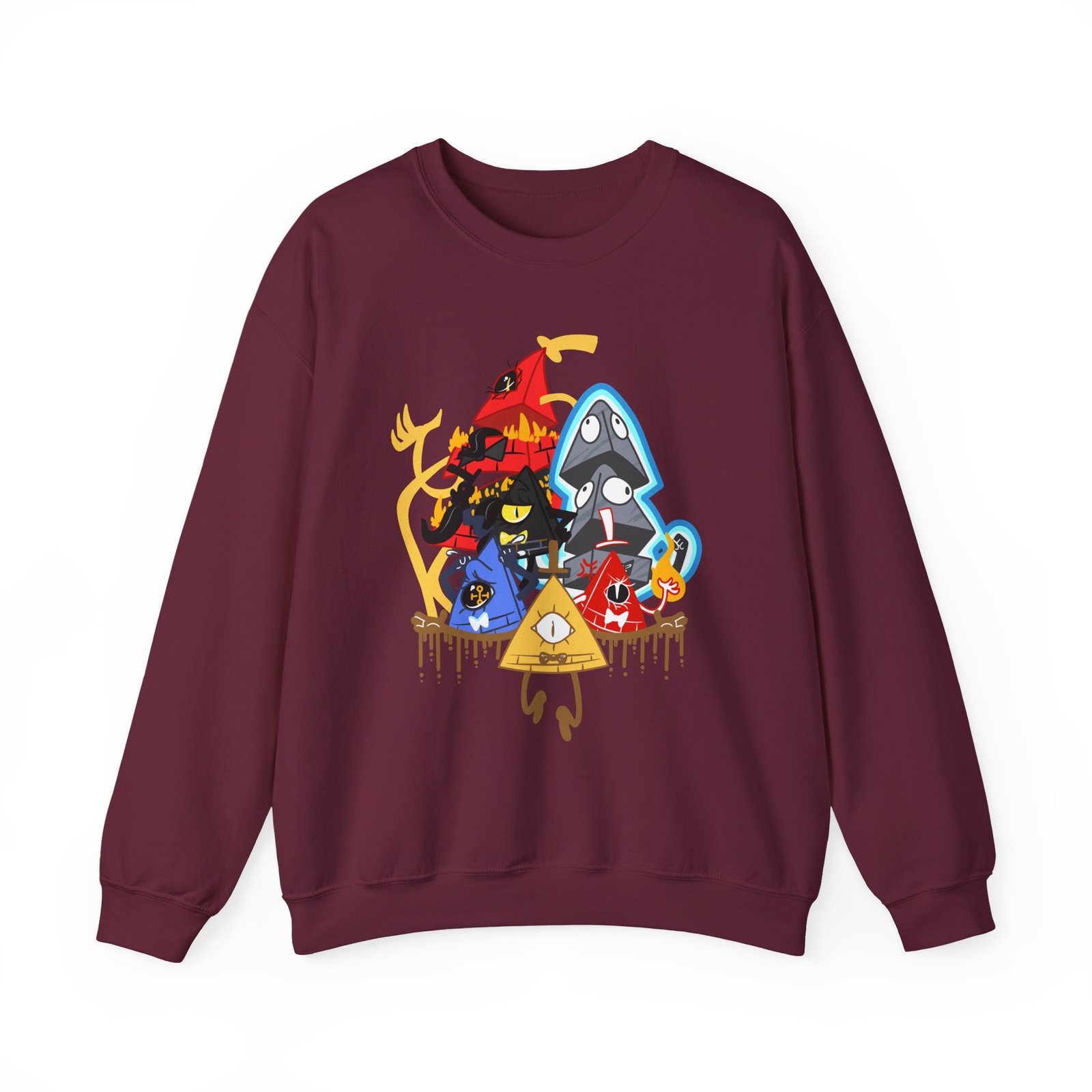 Ideal for any situation, a Gravity Falls Bill Cipher Many Forms unisex heavy blend crewneck sweatshirt is pure comfort. These garments are made from polyester and cotton. This combination helps designs come out looking fresh and beautiful. The collar is ribbed knit, so it retains its shape even after washing. There are no itchy side seams on these sweaters.