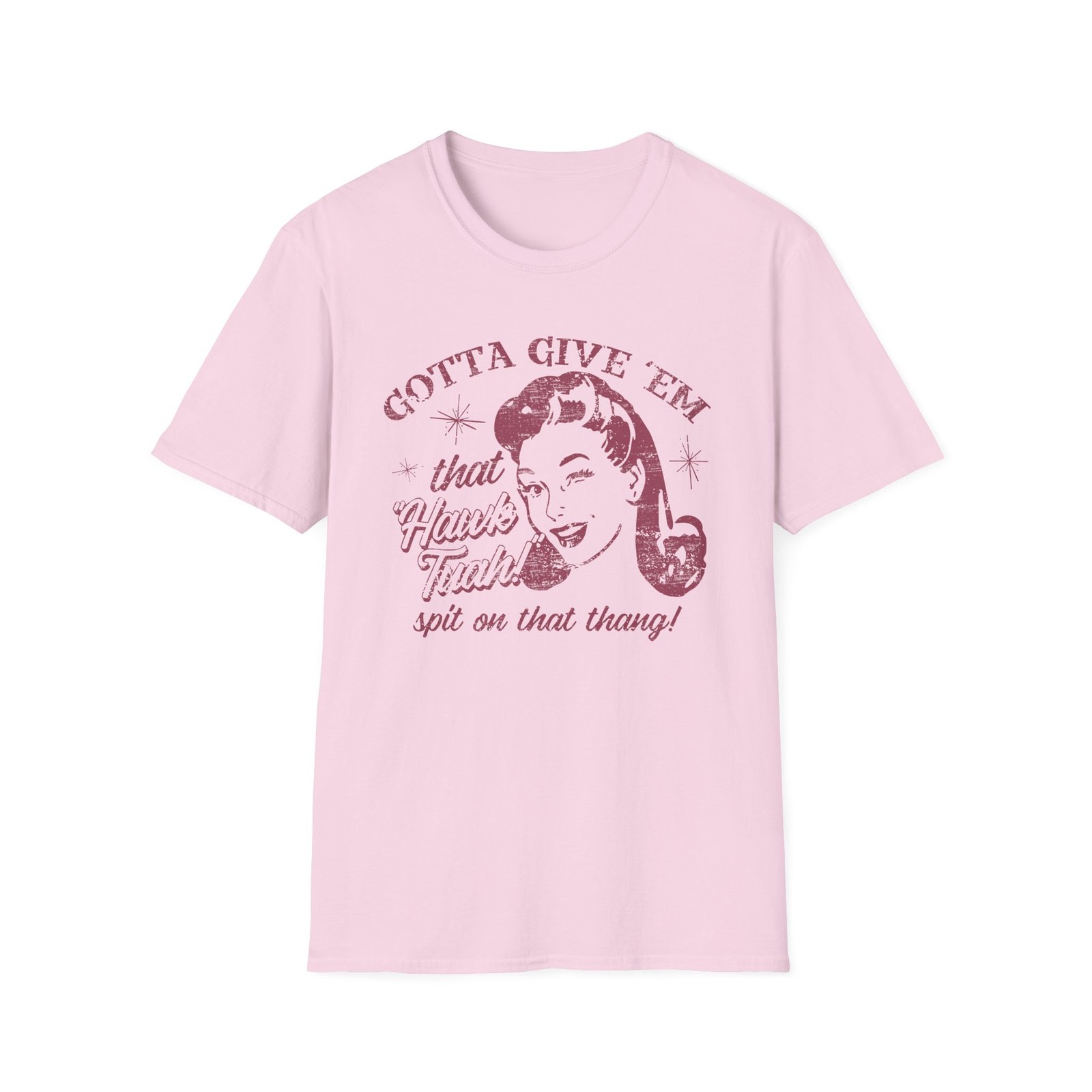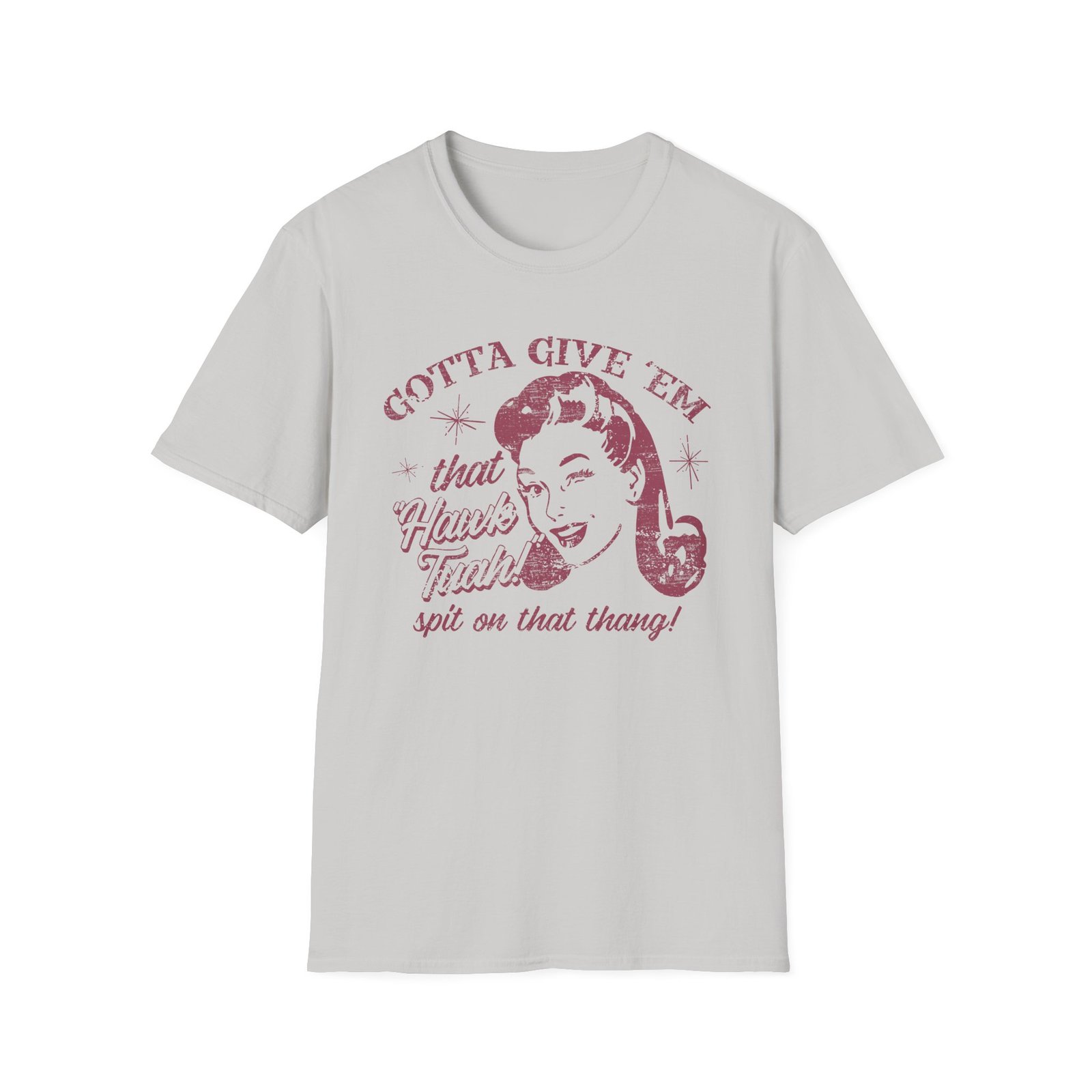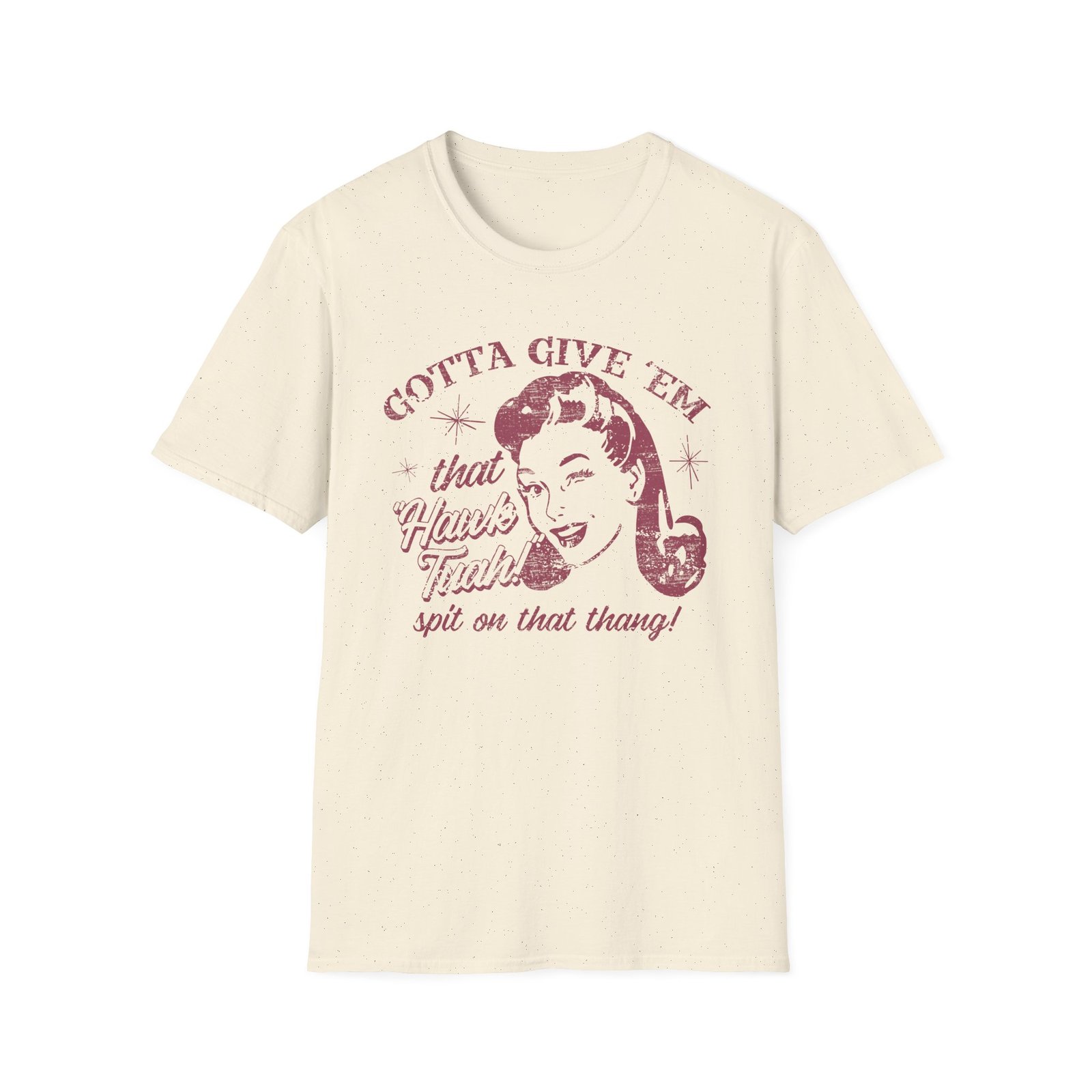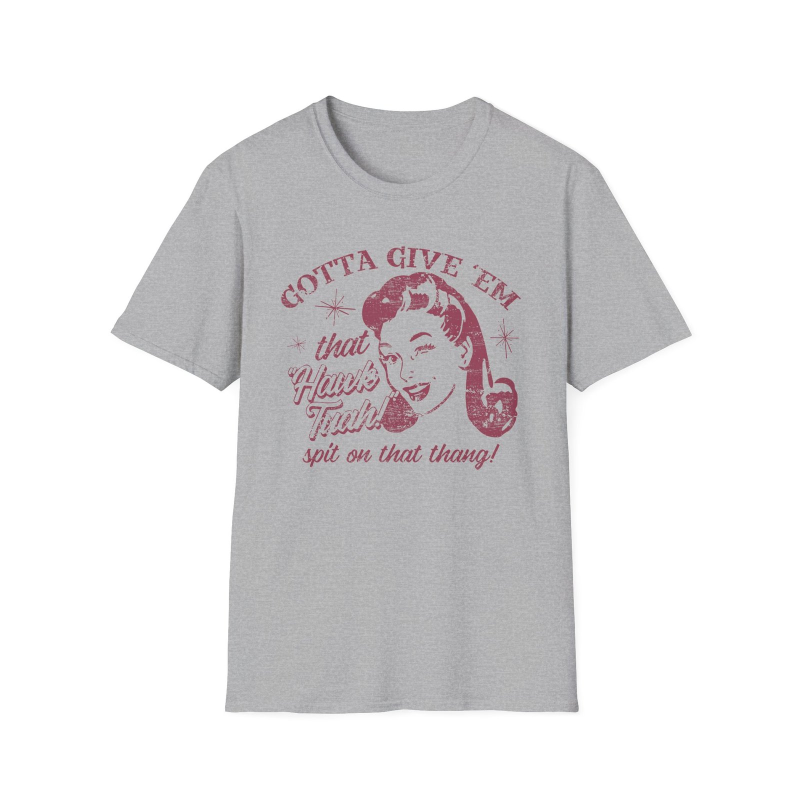 The Hawk Tuah unisex soft-style t-shirt puts a new spin on casual comfort. Made from very soft materials, this tee is 100% cotton for solid colors. Heather colors and sports grey include polyester. The shoulders have twill tape for improved durability. There are no side seams. The collar is made with ribbed knitting to prevent curling damage.