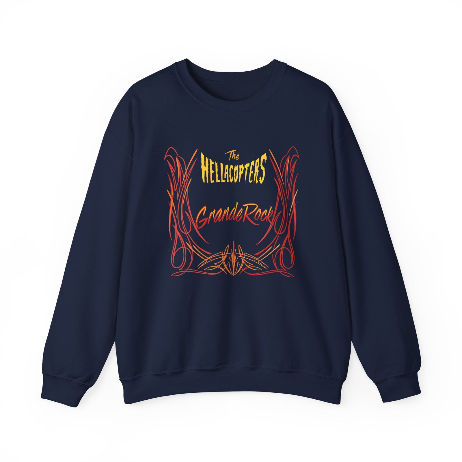 Ideal for any situation, a Hellacopters Grande Rock unisex heavy blend crewneck sweatshirt is pure comfort. These garments are made from polyester and cotton. This combination helps designs come out looking fresh and beautiful. The collar is ribbed knit, so it retains its shape even after washing. There are no itchy side seams on these sweaters.