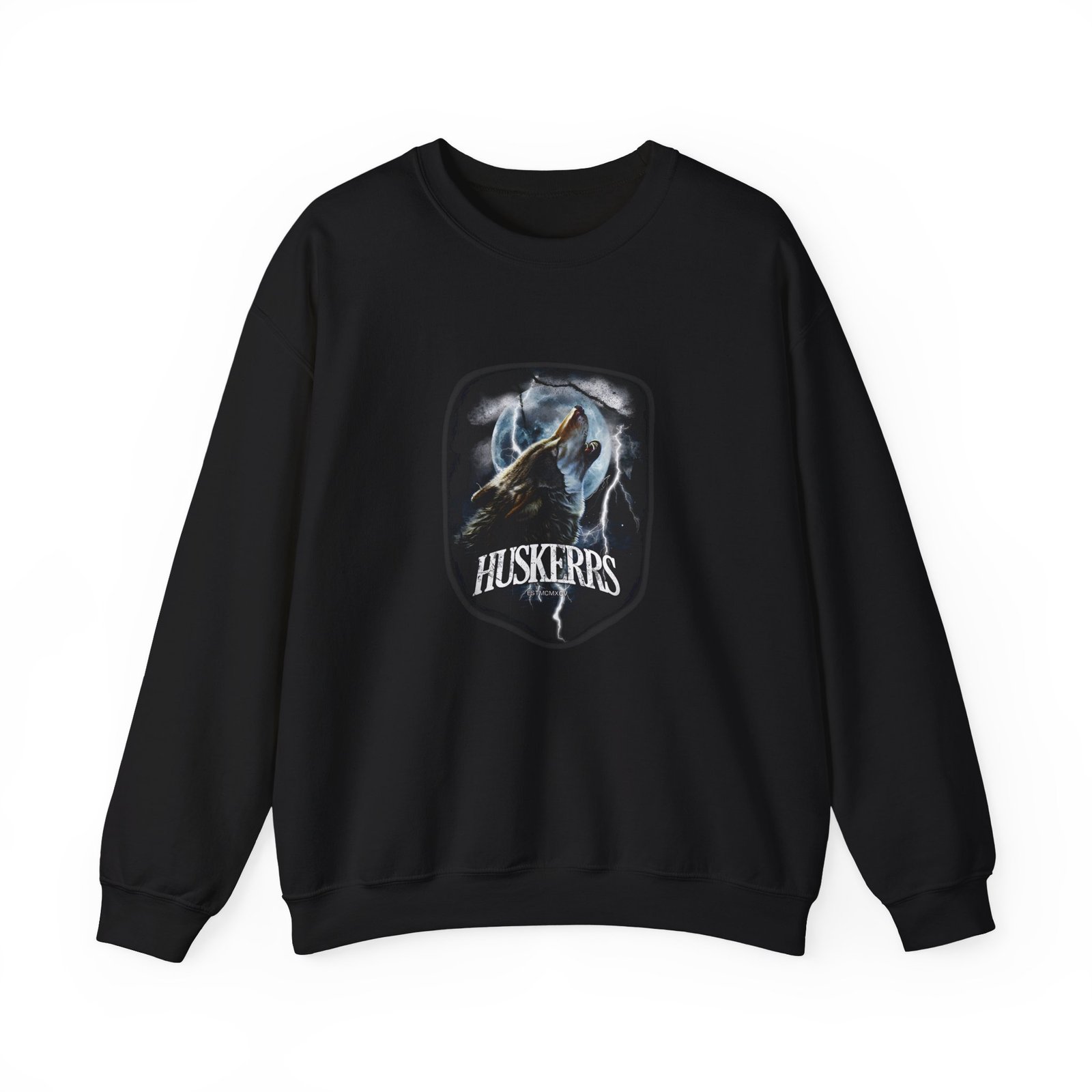 Ideal for any situation, a HusKerrs Howler Storm unisex heavy blend crewneck sweatshirt is pure comfort. These garments are made from polyester and cotton. This combination helps designs come out looking fresh and beautiful. The collar is ribbed knit, so it retains its shape even after washing. There are no itchy side seams on these sweaters.