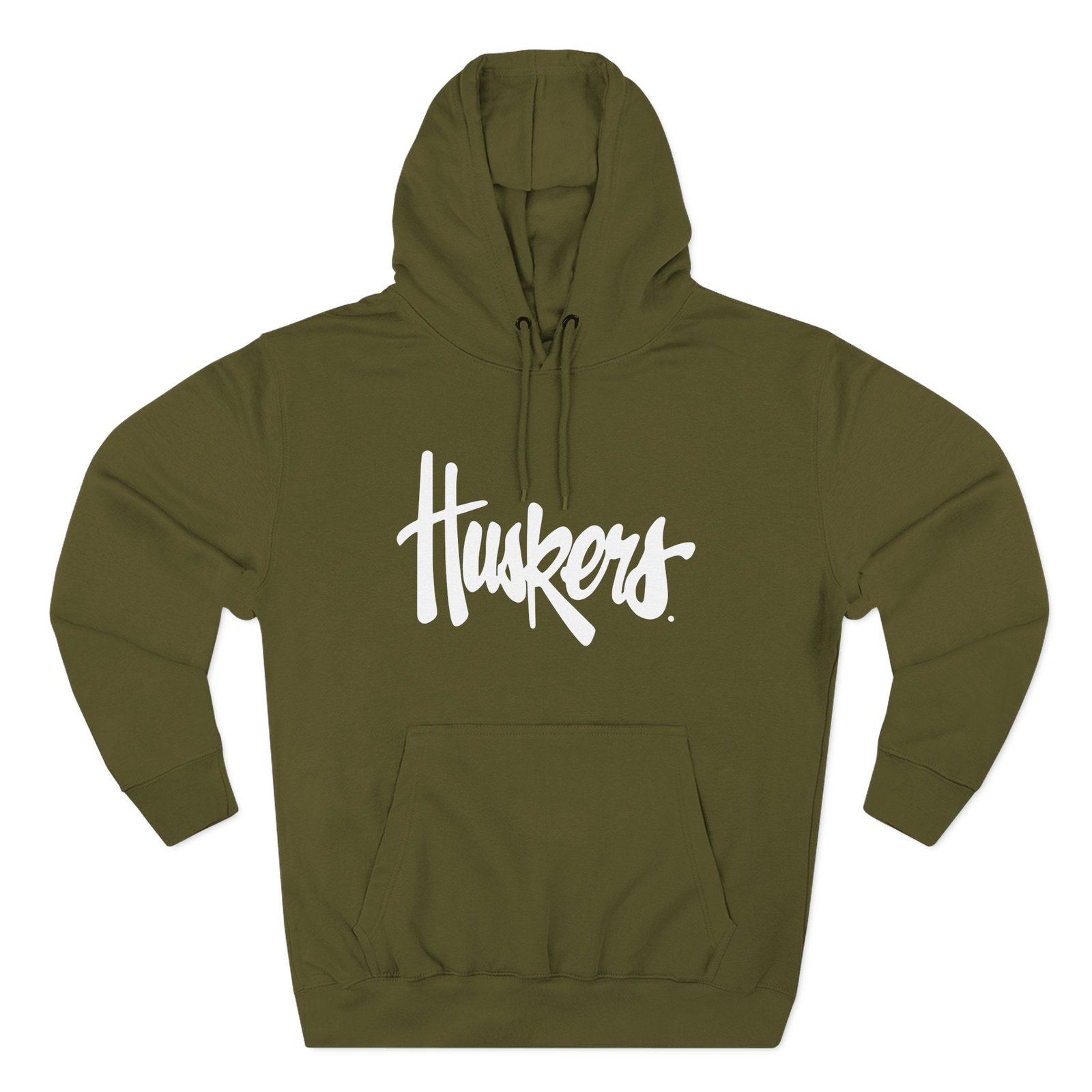 Beat the cold with this Huskerrs Logo premium pullover hoodie that’s just the right layer of warm and cozy. Made with three-panel fleece lining, this pullover is double stitched for durability and roomy. Pick one in your favorite color to match your style.
