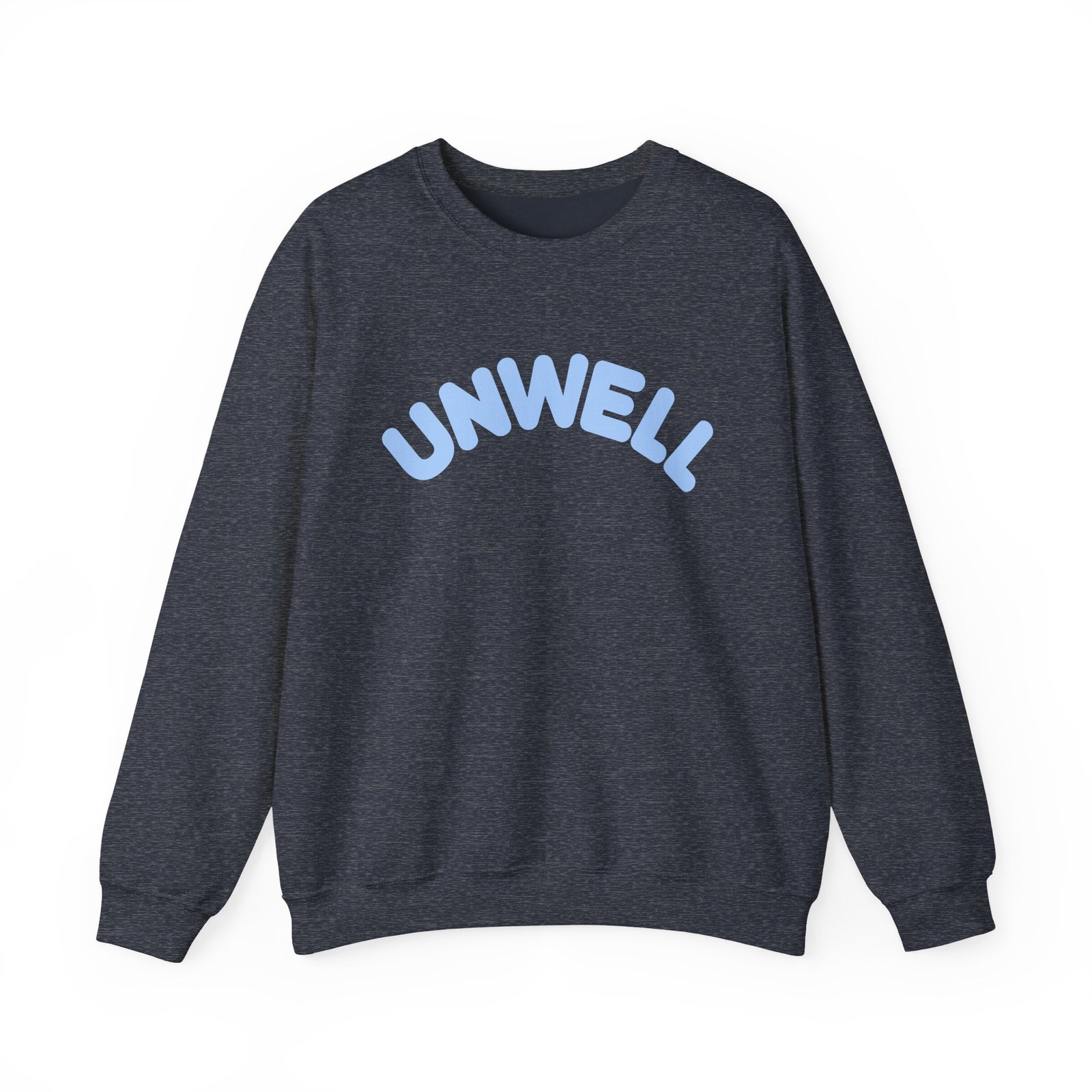 Ideal for any situation, a I Am Unwell unisex heavy blend crewneck sweatshirt is pure comfort. These garments are made from polyester and cotton. This combination helps designs come out looking fresh and beautiful. The collar is ribbed knit, so it retains its shape even after washing. There are no itchy side seams on these sweaters.