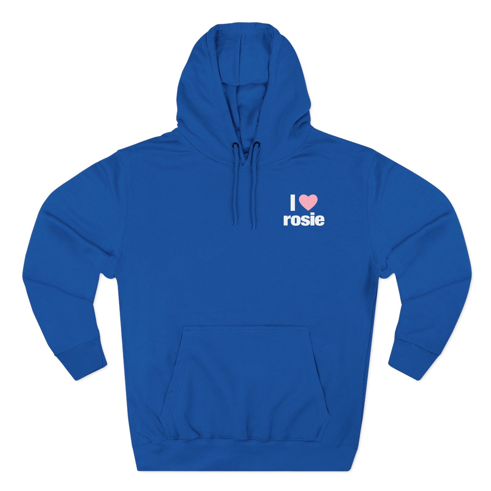 Beat the cold with this I Heart Rosie premium pullover hoodie that’s just the right layer of warm and cozy. Made with three-panel fleece lining, this pullover is double stitched for durability and roomy. Pick one in your favorite color to match your style.
