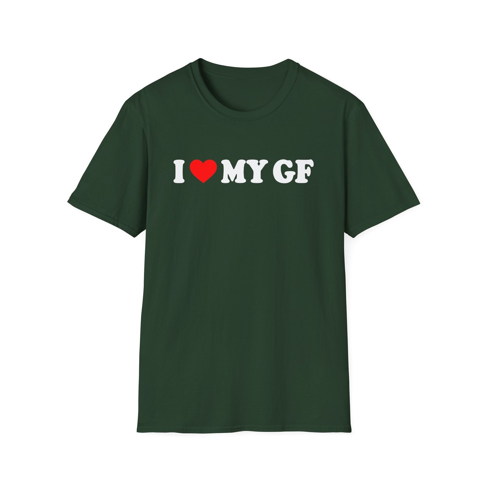 The I Love My Gf unisex soft-style t-shirt puts a new spin on casual comfort. Made from very soft materials, this tee is 100% cotton for solid colors. Heather colors and sports grey include polyester. The shoulders have twill tape for improved durability. There are no side seams. The collar is made with ribbed knitting to prevent curling damage.