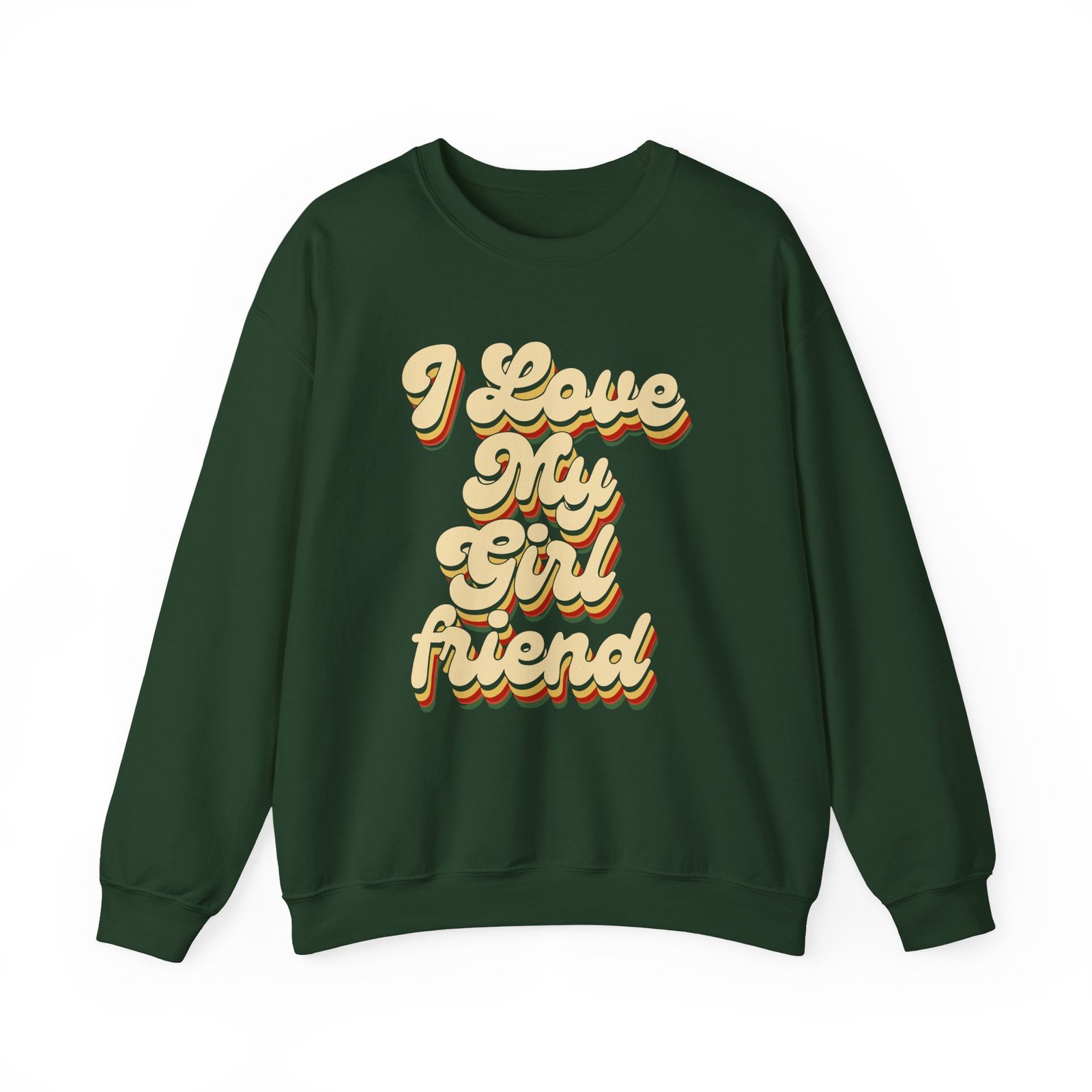 Ideal for any situation, a I Love My Girlfriend unisex heavy blend crewneck sweatshirt is pure comfort. These garments are made from polyester and cotton. This combination helps designs come out looking fresh and beautiful. The collar is ribbed knit, so it retains its shape even after washing. There are no itchy side seams on these sweaters.
