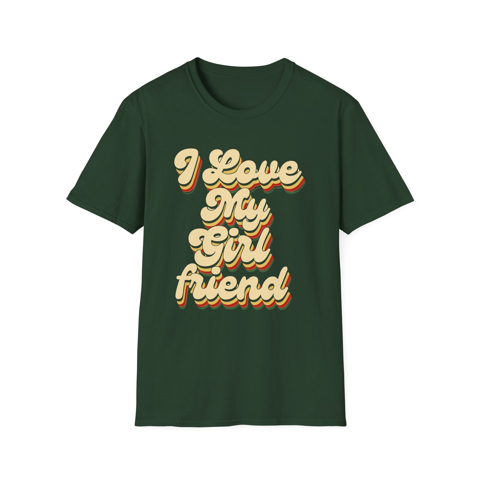The I Love My Girlfriend unisex soft-style t-shirt puts a new spin on casual comfort. Made from very soft materials, this tee is 100% cotton for solid colors. Heather colors and sports grey include polyester. The shoulders have twill tape for improved durability. There are no side seams. The collar is made with ribbed knitting to prevent curling damage.