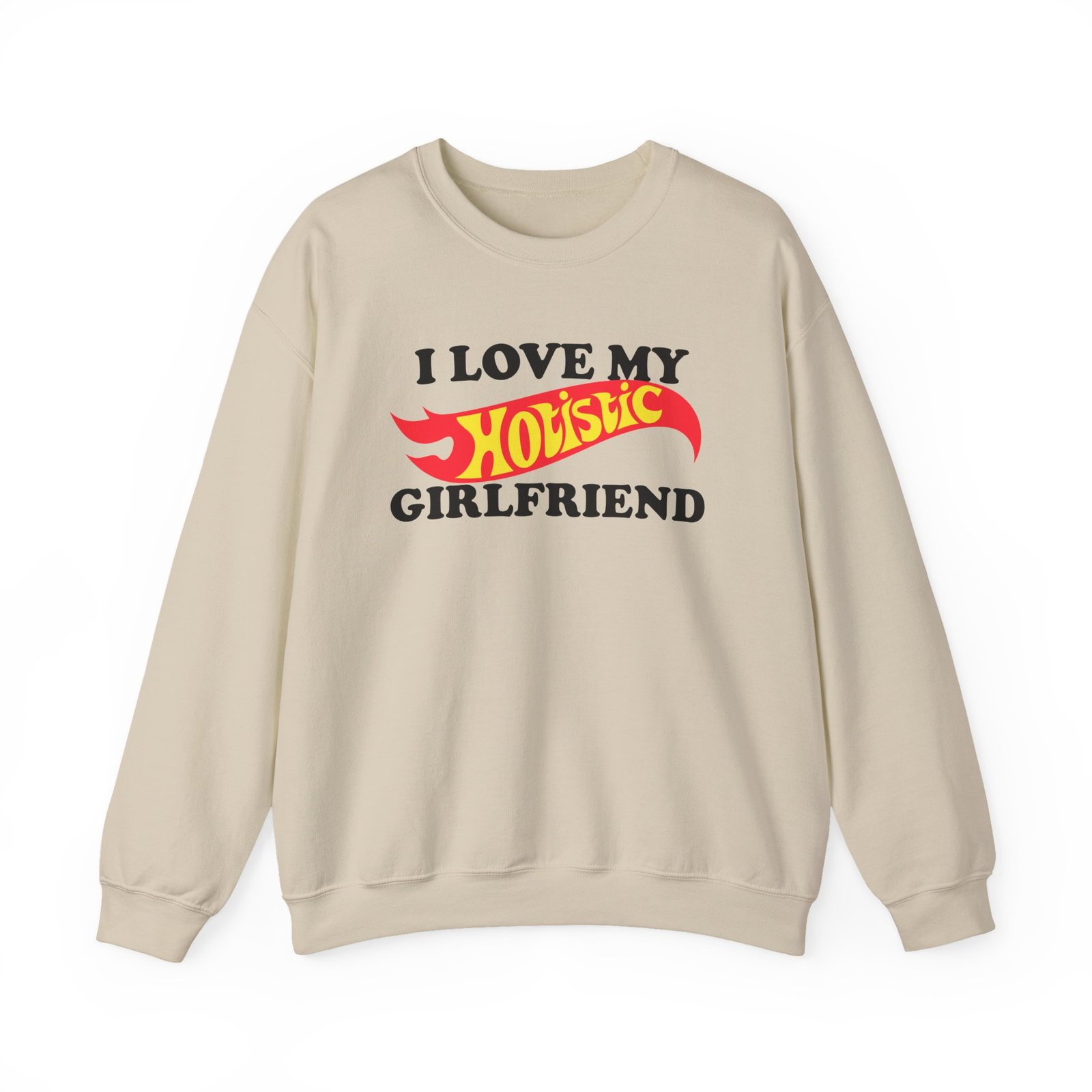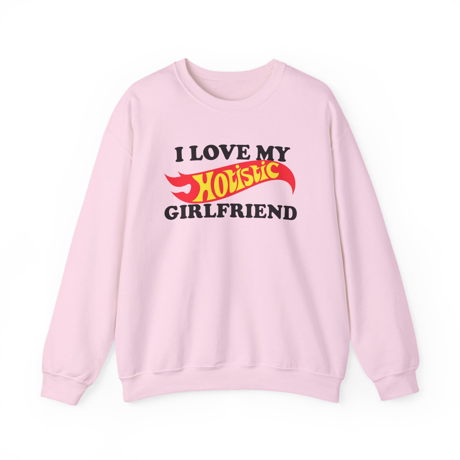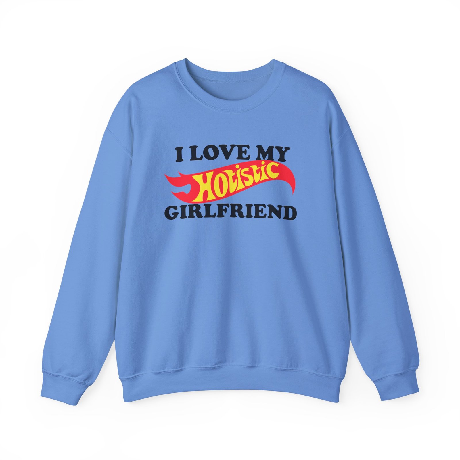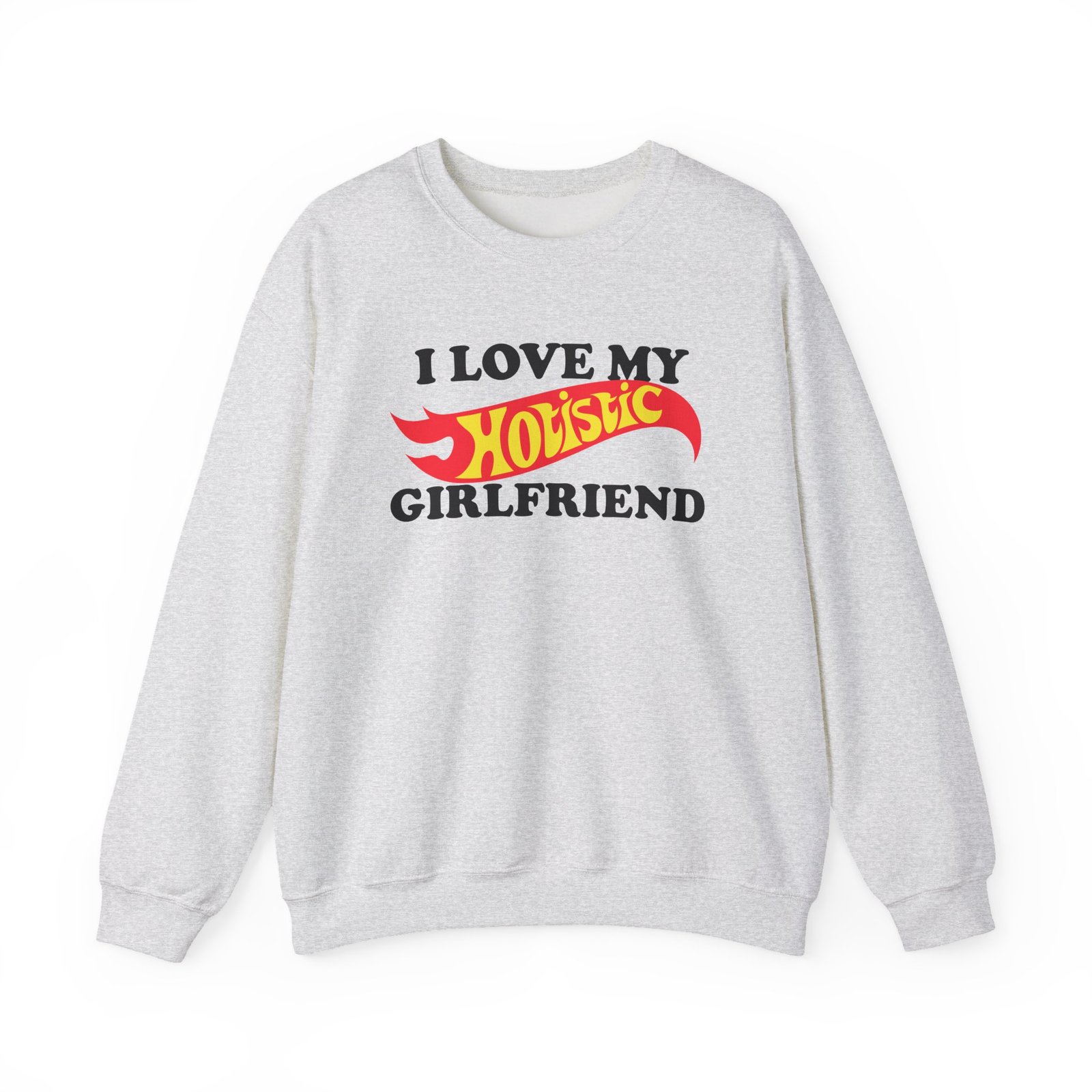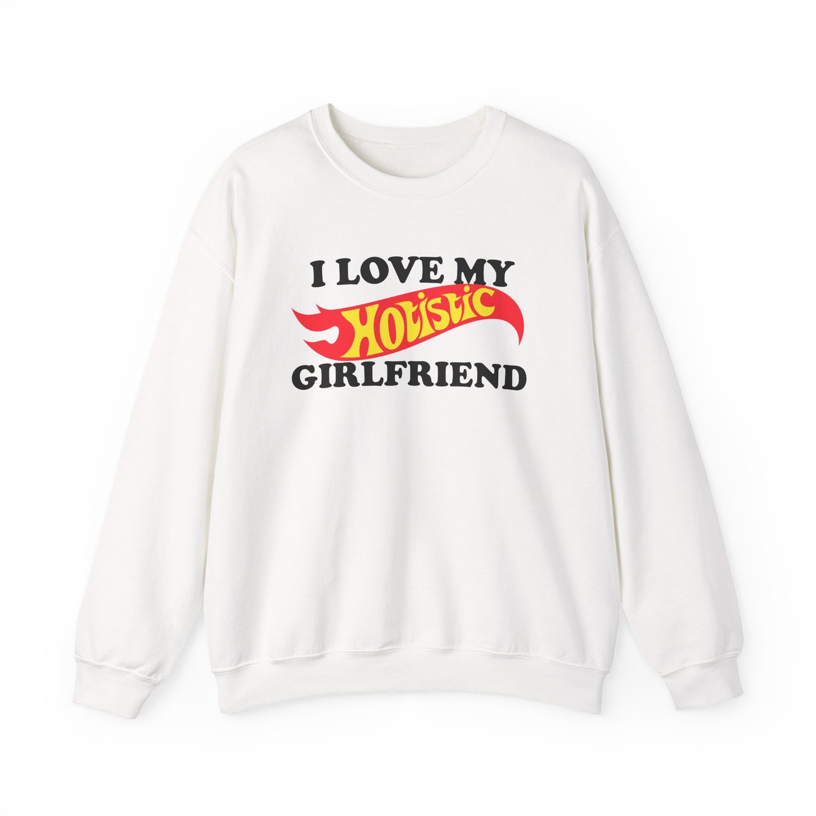 Ideal for any situation, a I Love My Hotistic Girlfriend unisex heavy blend crewneck sweatshirt is pure comfort. These garments are made from polyester and cotton. This combination helps designs come out looking fresh and beautiful. The collar is ribbed knit, so it retains its shape even after washing. There are no itchy side seams on these sweaters.
