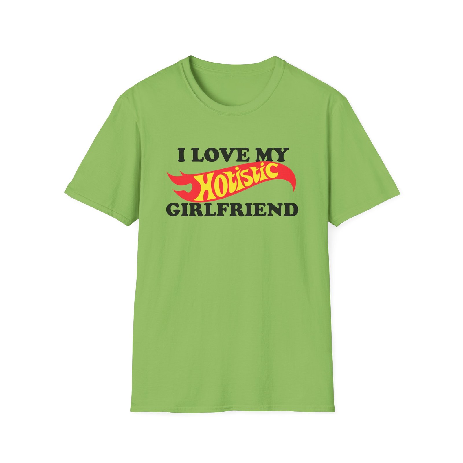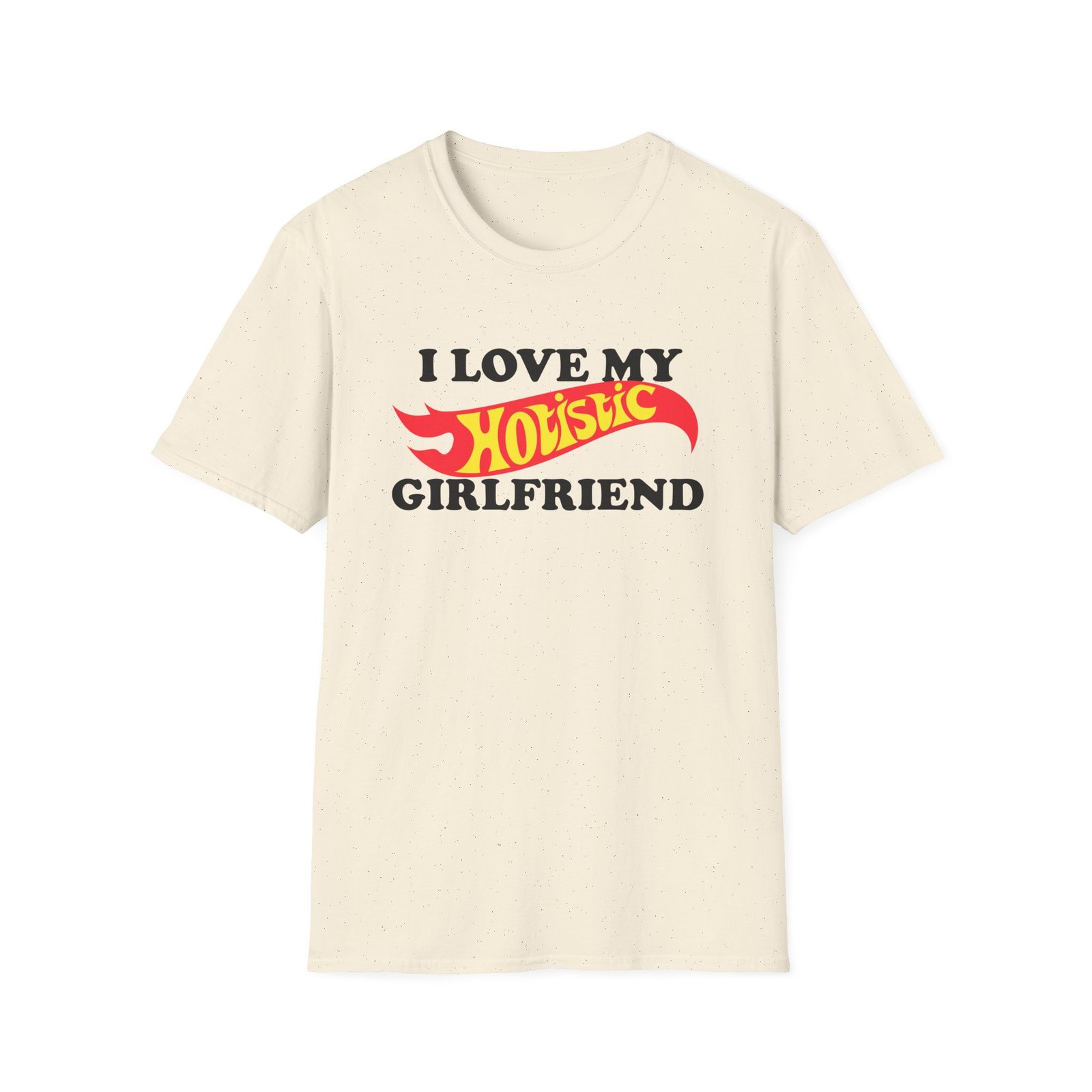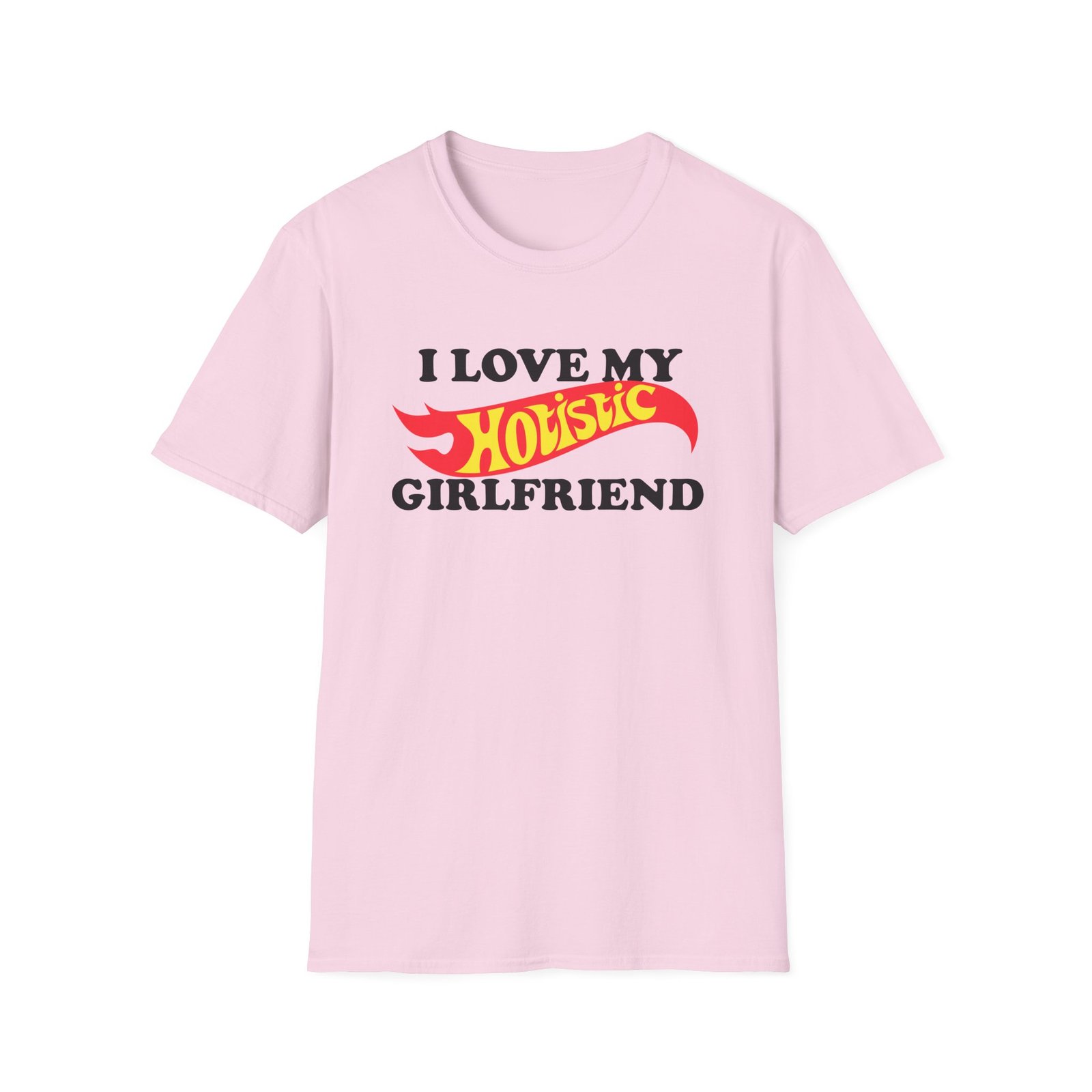 The I Love My Hotistic Girlfriend unisex soft-style t-shirt puts a new spin on casual comfort. Made from very soft materials, this tee is 100% cotton for solid colors. Heather colors and sports grey include polyester. The shoulders have twill tape for improved durability. There are no side seams. The collar is made with ribbed knitting to prevent curling damage.