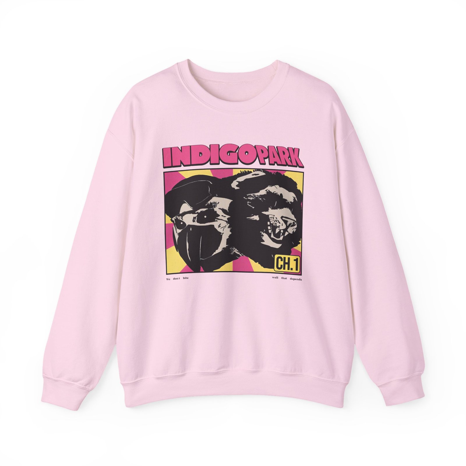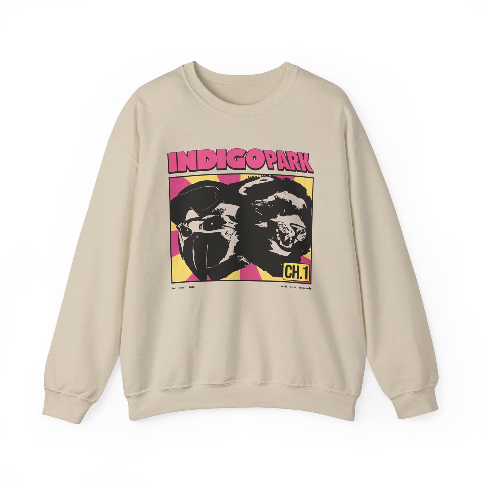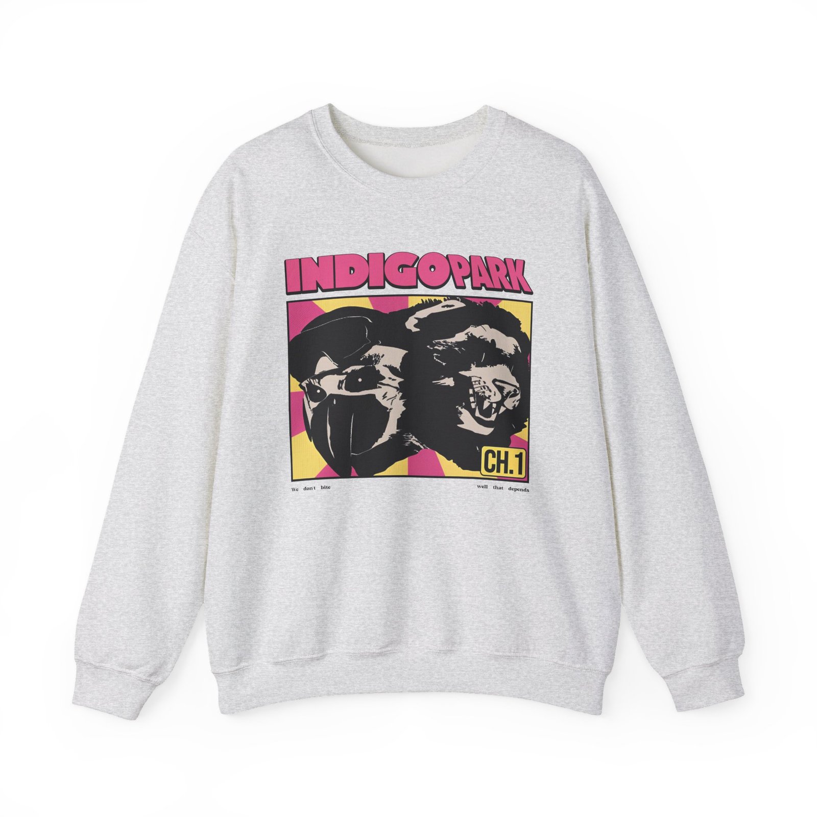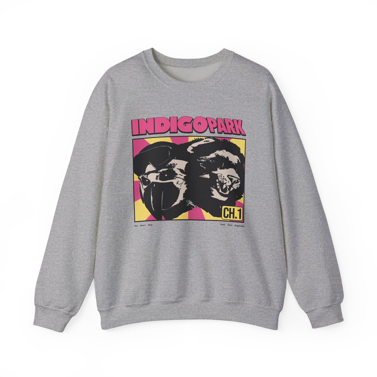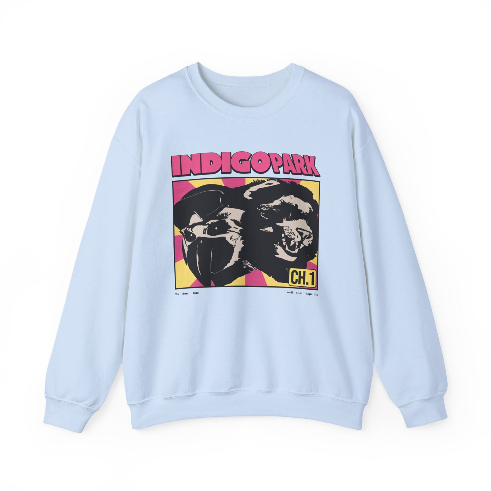 Ideal for any situation, a Indigo Park Indigo Park We Don’t Bite unisex heavy blend crewneck sweatshirt is pure comfort. These garments are made from polyester and cotton. This combination helps designs come out looking fresh and beautiful. The collar is ribbed knit, so it retains its shape even after washing. There are no itchy side seams on these sweaters.