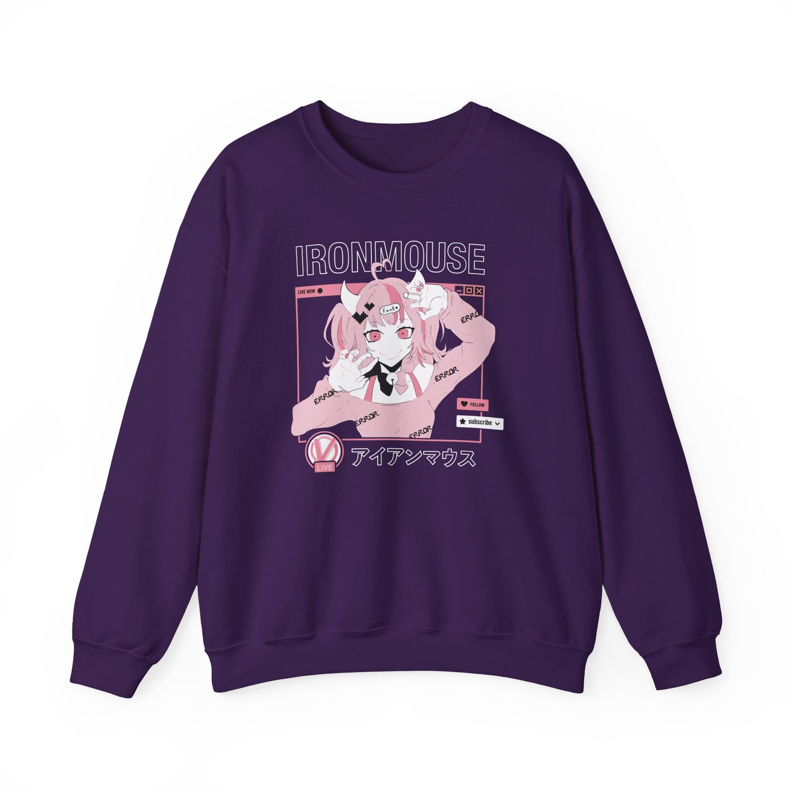 Ideal for any situation, a Ironmouse Live unisex heavy blend crewneck sweatshirt is pure comfort. These garments are made from polyester and cotton. This combination helps designs come out looking fresh and beautiful. The collar is ribbed knit, so it retains its shape even after washing. There are no itchy side seams on these sweaters.