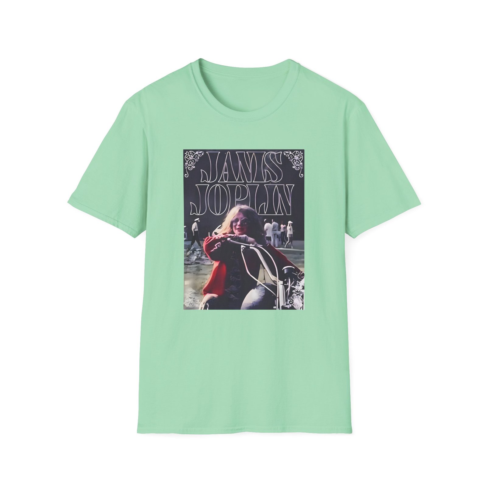 The Janis Joplin Greatest Hits Motorcycle Cover unisex soft-style t-shirt puts a new spin on casual comfort. Made from very soft materials, this tee is 100% cotton for solid colors. Heather colors and sports grey include polyester. The shoulders have twill tape for improved durability. There are no side seams. The collar is made with ribbed knitting to prevent curling damage.