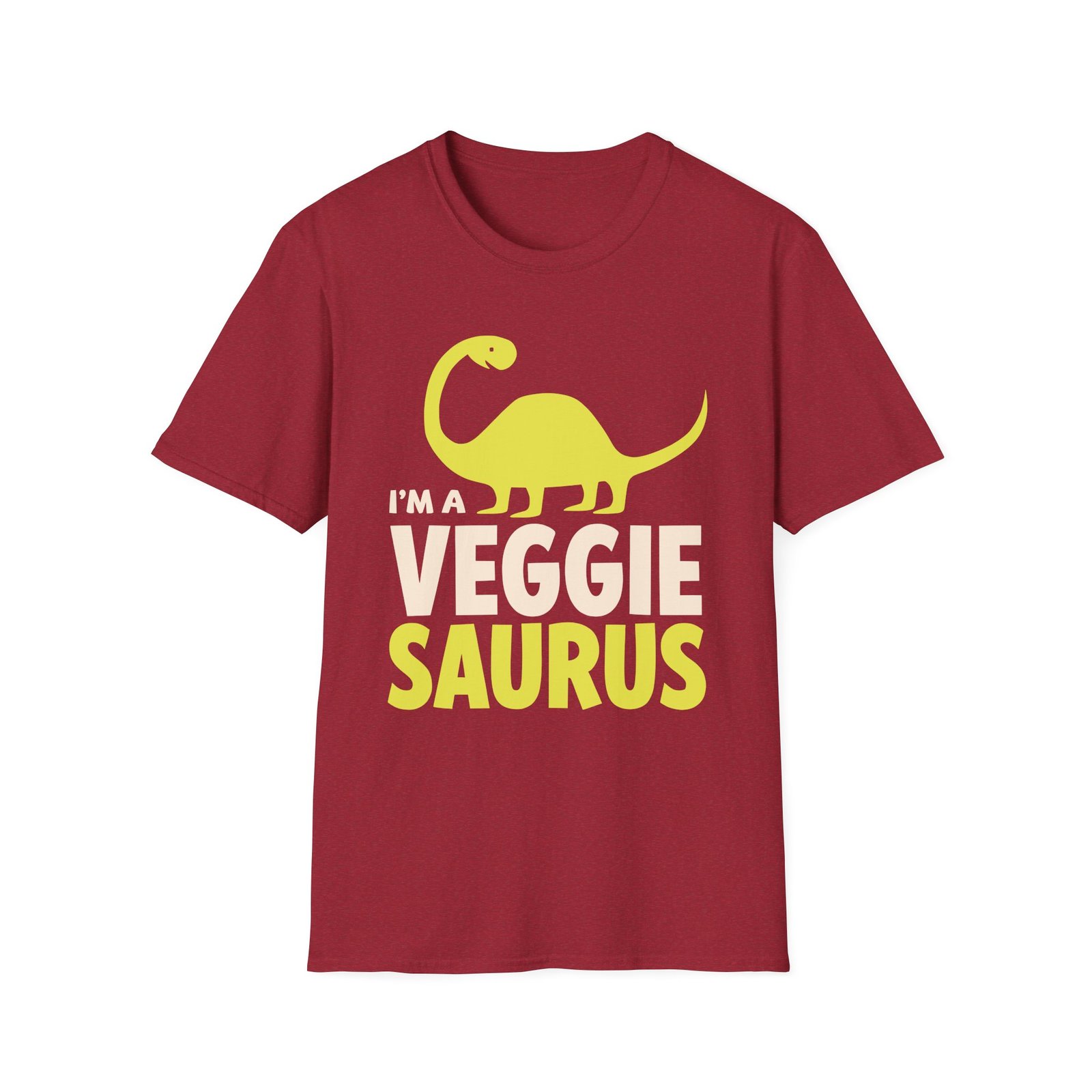 The Jessi Smiles I'm A Veggie Saurus unisex soft-style t-shirt puts a new spin on casual comfort. Made from very soft materials, this tee is 100% cotton for solid colors. Heather colors and sports grey include polyester. The shoulders have twill tape for improved durability. There are no side seams. The collar is made with ribbed knitting to prevent curling damage.