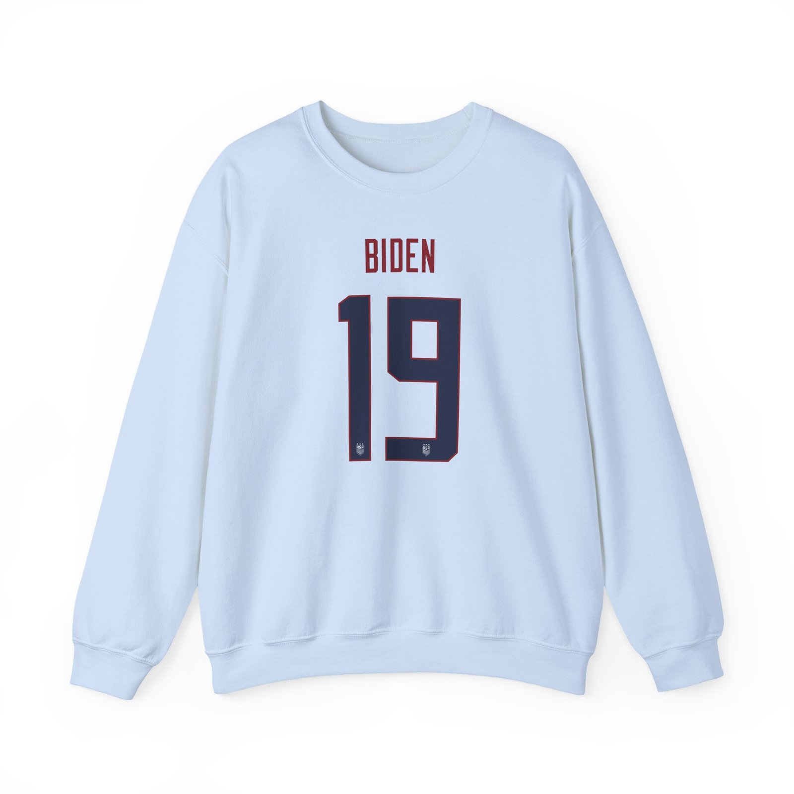 Ideal for any situation, a Joe Biden 19 unisex heavy blend crewneck sweatshirt is pure comfort. These garments are made from polyester and cotton. This combination helps designs come out looking fresh and beautiful. The collar is ribbed knit, so it retains its shape even after washing. There are no itchy side seams on these sweaters.