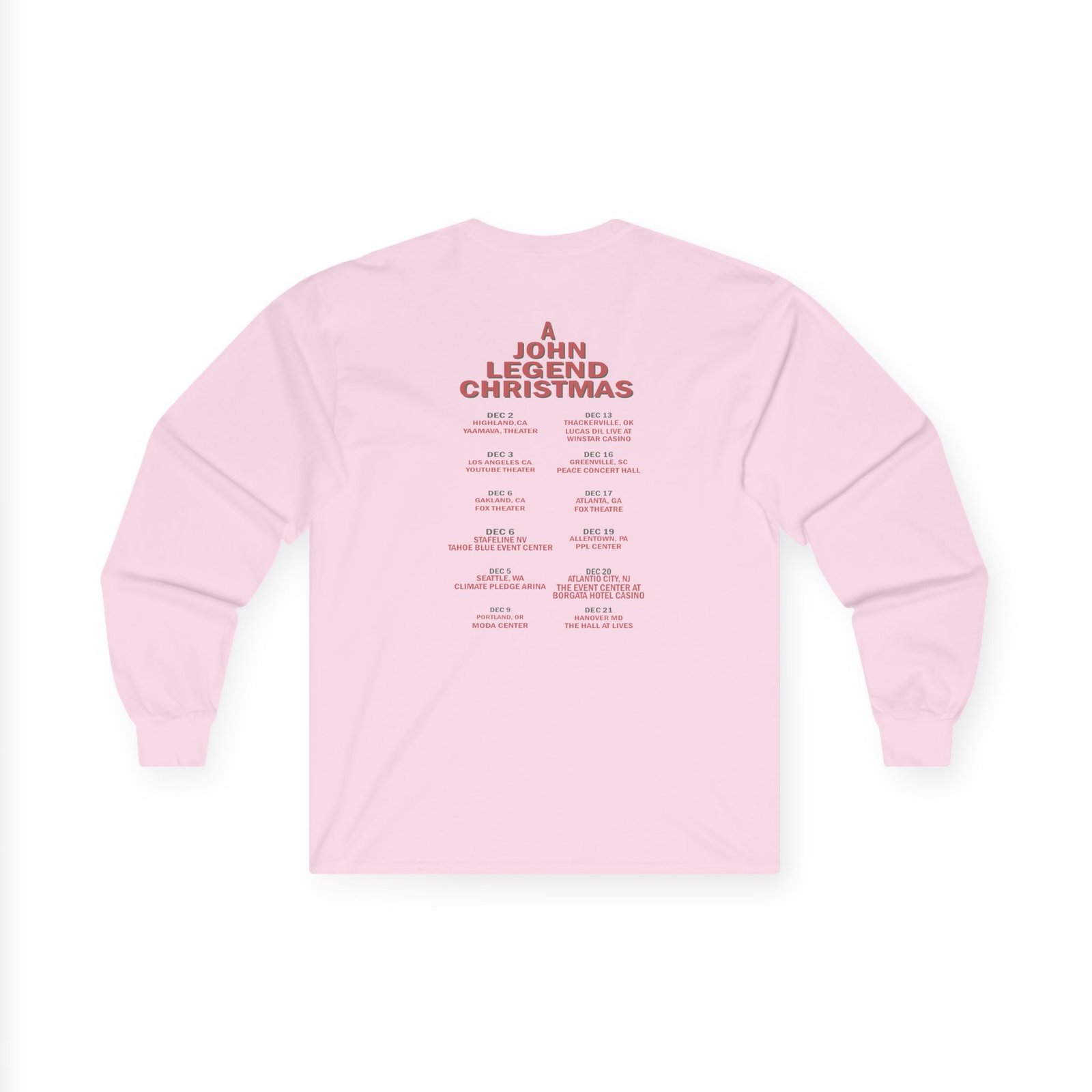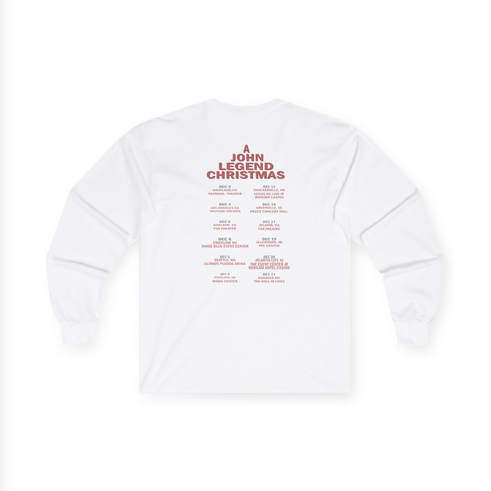 A bit more formal than a standard-issue t-shirt, the John Legend Ivory Tour ultra cotton long sleeve tee is a clear comfort winner. The sleeves also act as a nice frame. There are no side seams. The shoulders are taped for improved durability. This makes for a good fitting around the shoulders and neck. The cotton used for these shirts is environmentally friendly.