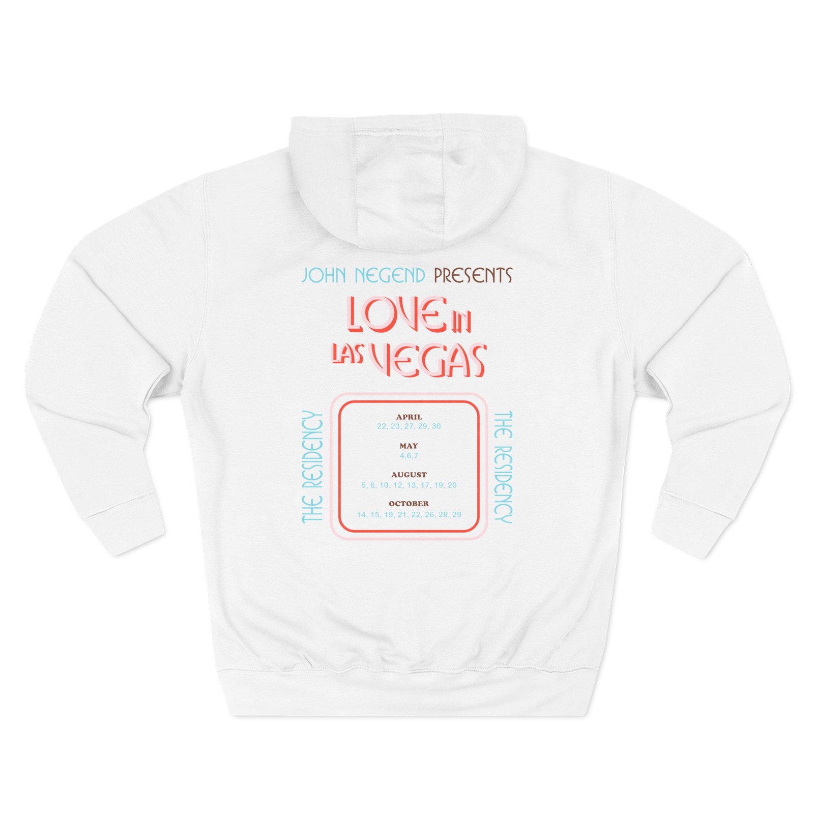 Beat the cold with this John Legend Love In Las Vegas premium pullover hoodie that’s just the right layer of warm and cozy. Made with three-panel fleece lining, this pullover is double stitched for durability and roomy. Pick one in your favorite color to match your style.