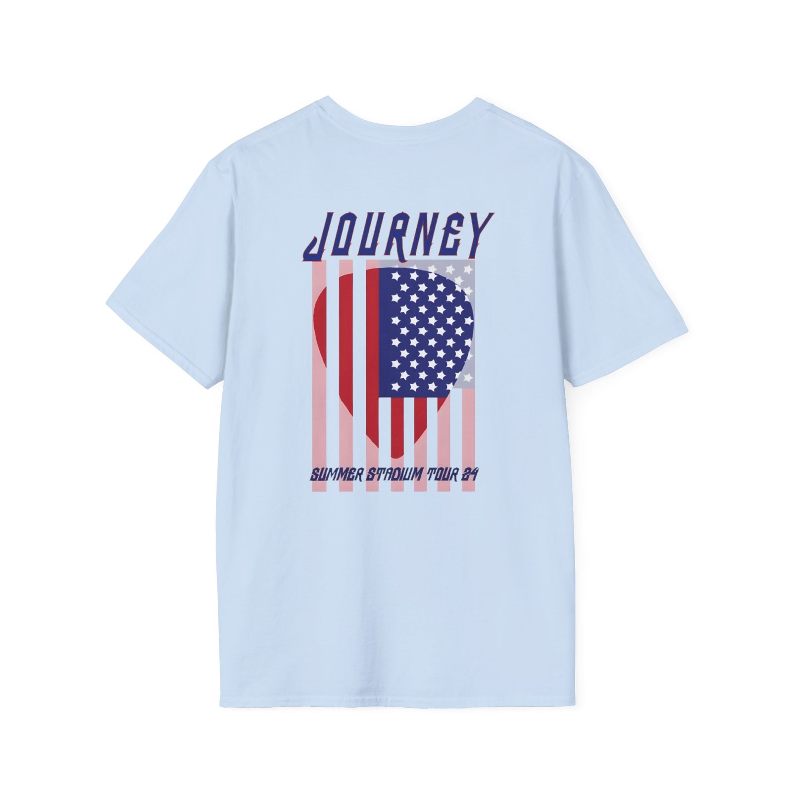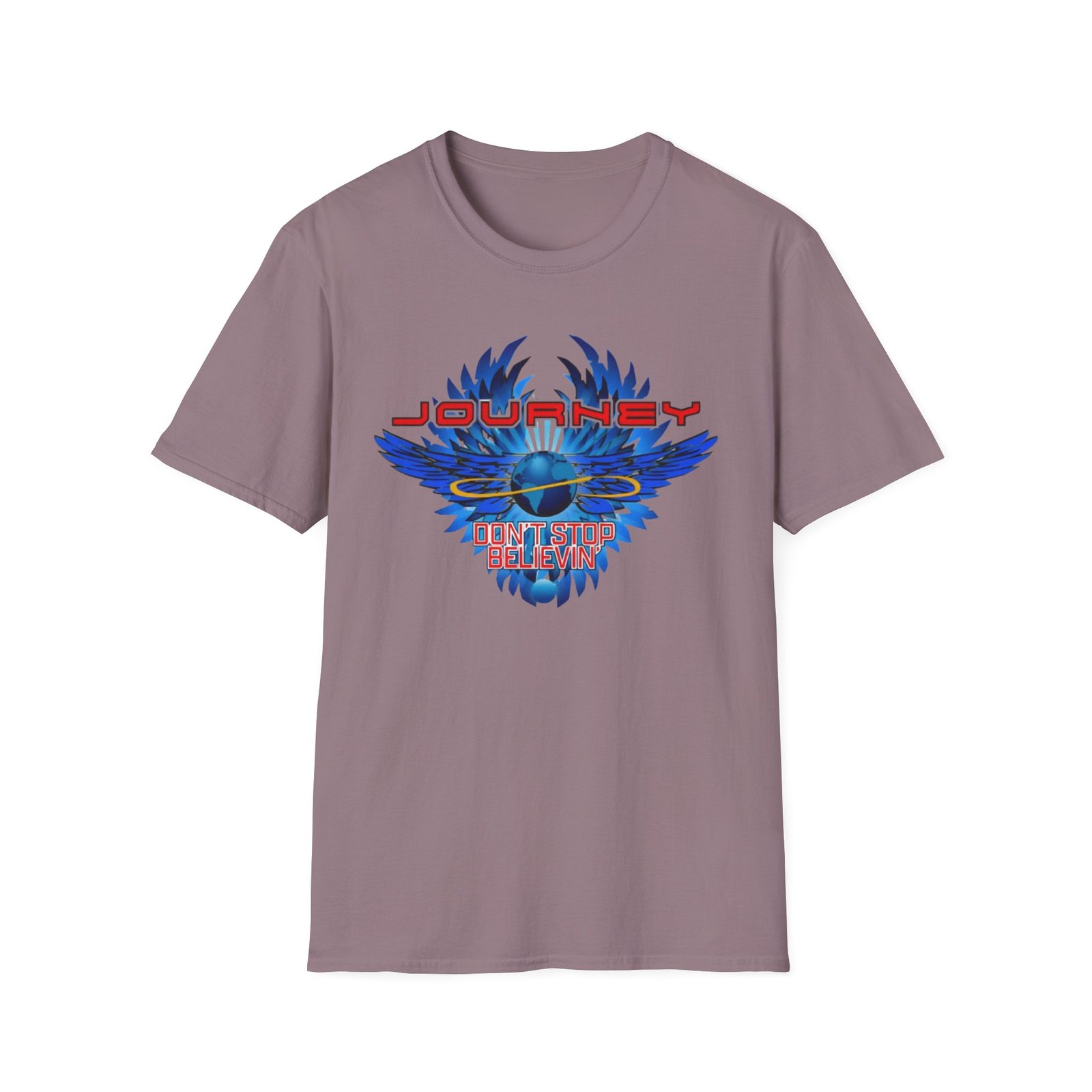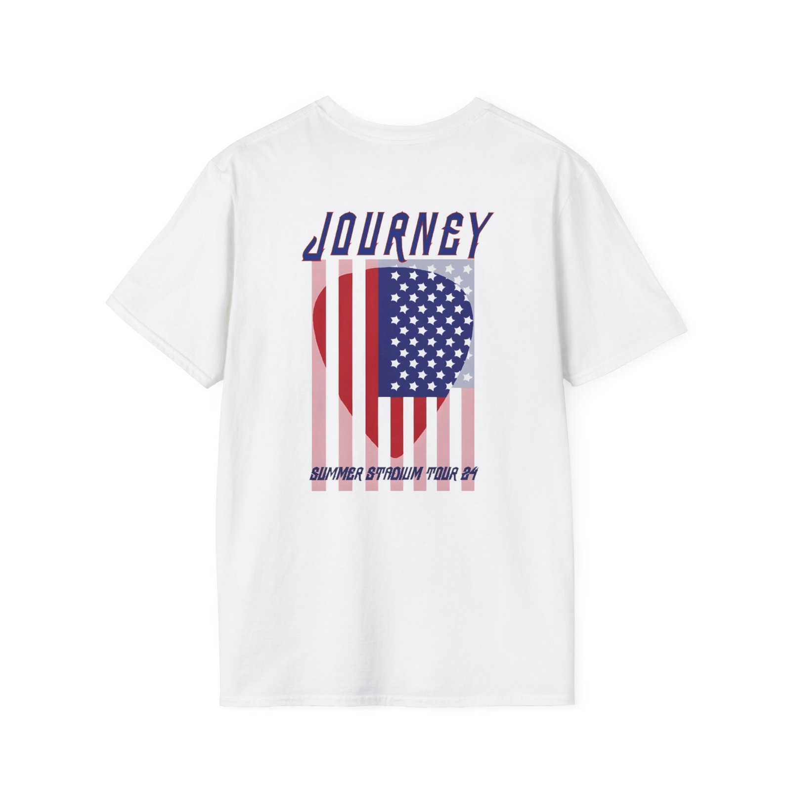 The Journey 2024 Don't Stop Believin unisex soft-style t-shirt puts a new spin on casual comfort. Made from very soft materials, this tee is 100% cotton for solid colors. Heather colors and sports grey include polyester. The shoulders have twill tape for improved durability. There are no side seams. The collar is made with ribbed knitting to prevent curling damage.