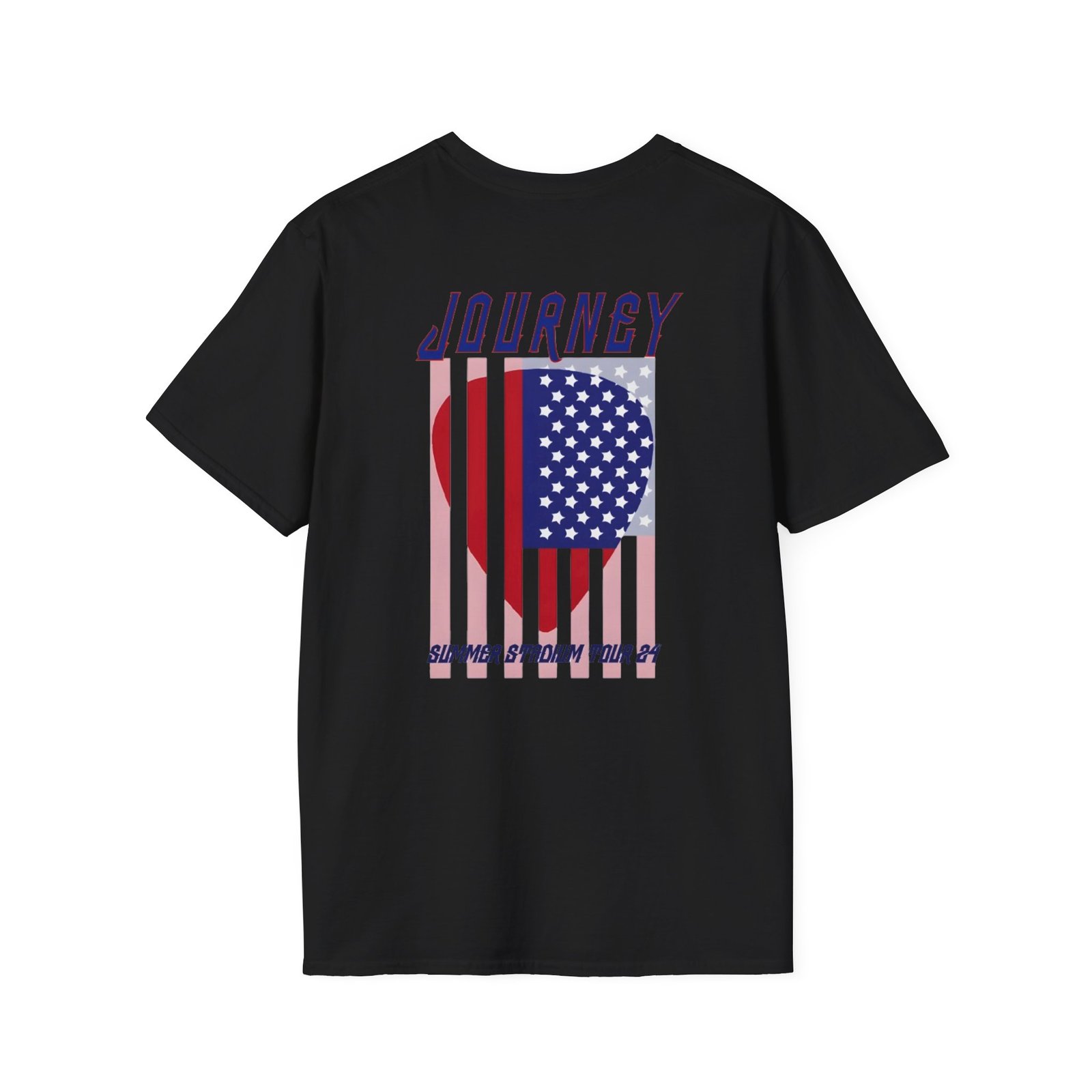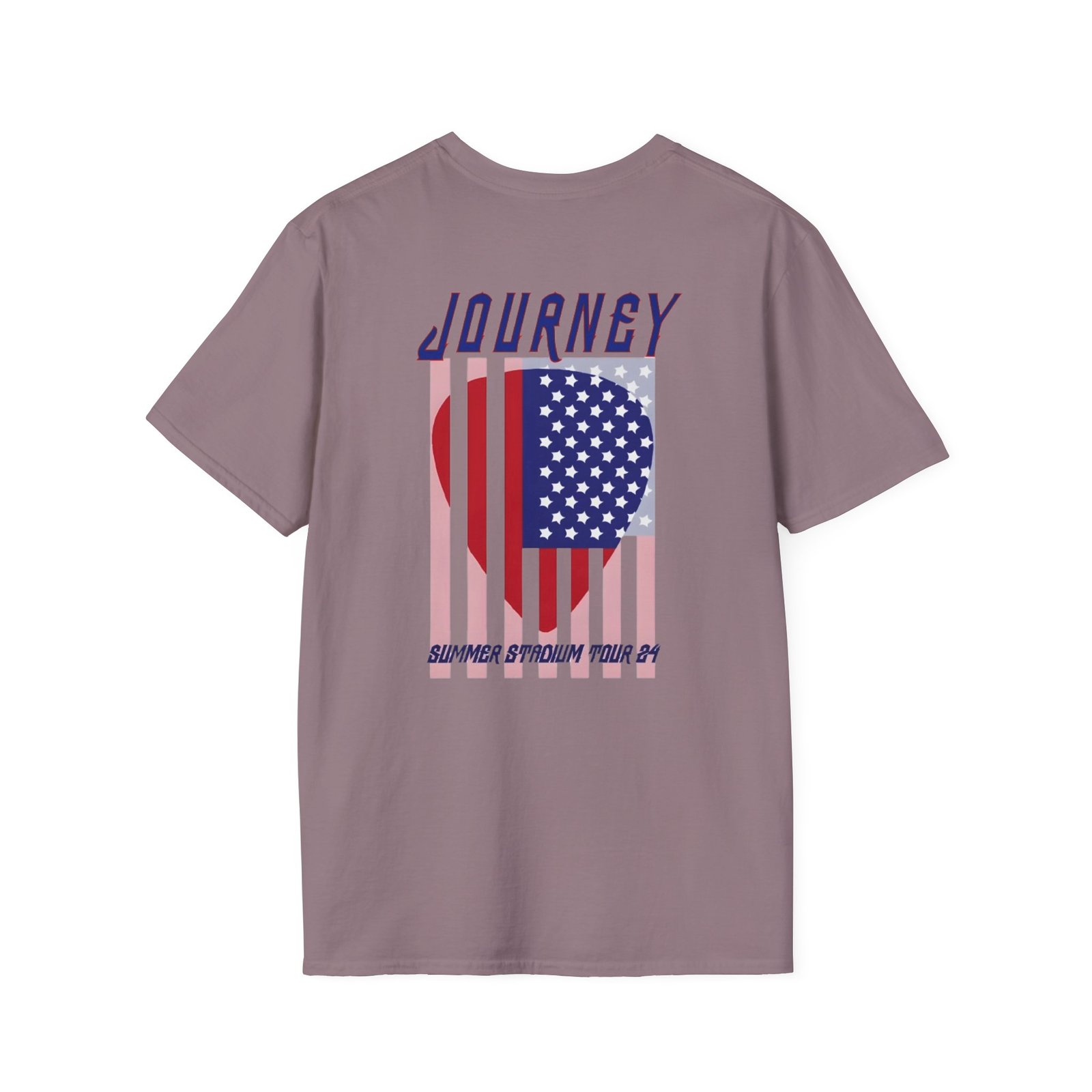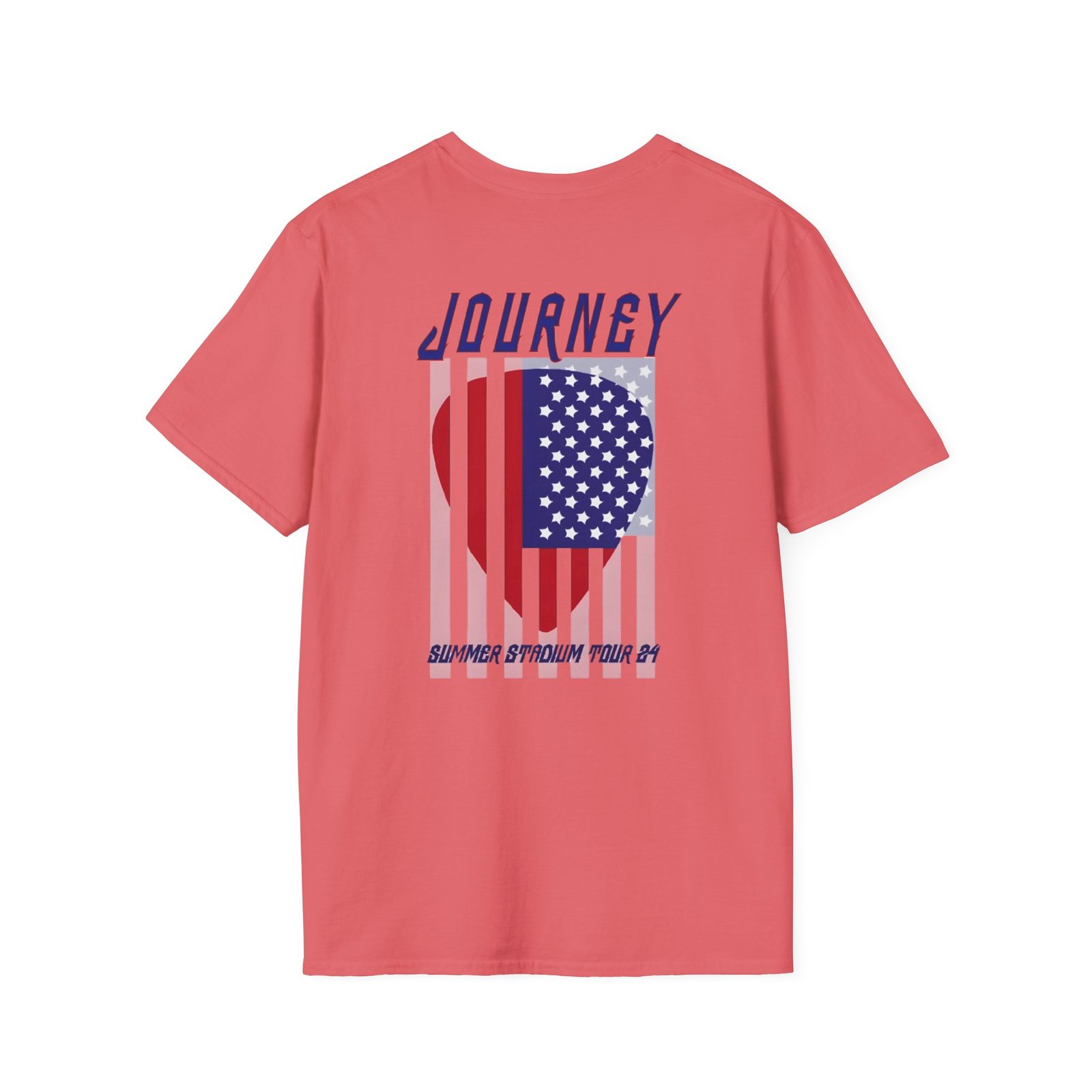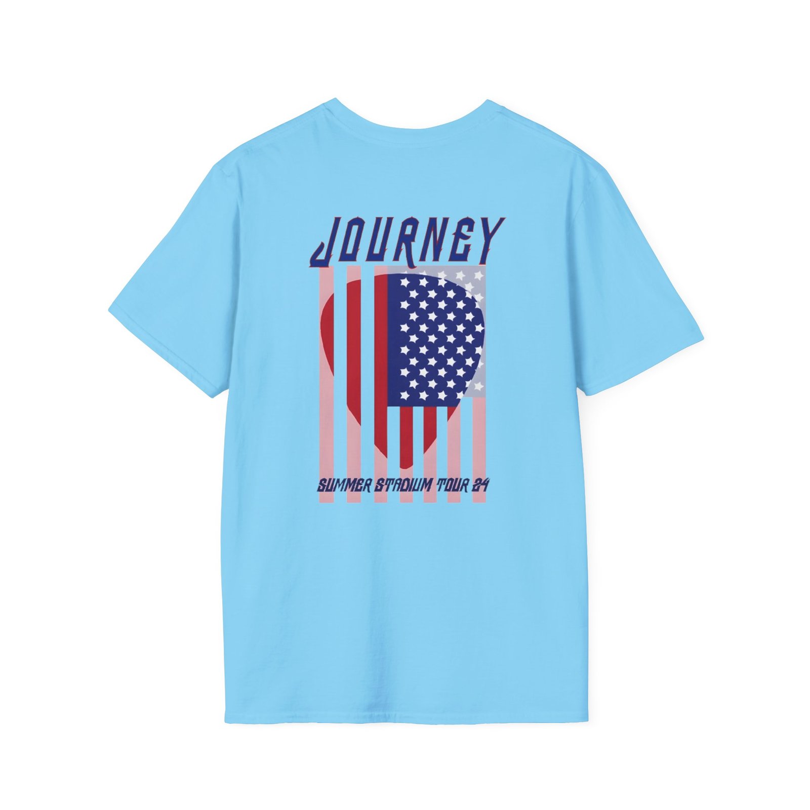 The Journey 2024 Don't Stop Believin unisex soft-style t-shirt puts a new spin on casual comfort. Made from very soft materials, this tee is 100% cotton for solid colors. Heather colors and sports grey include polyester. The shoulders have twill tape for improved durability. There are no side seams. The collar is made with ribbed knitting to prevent curling damage.