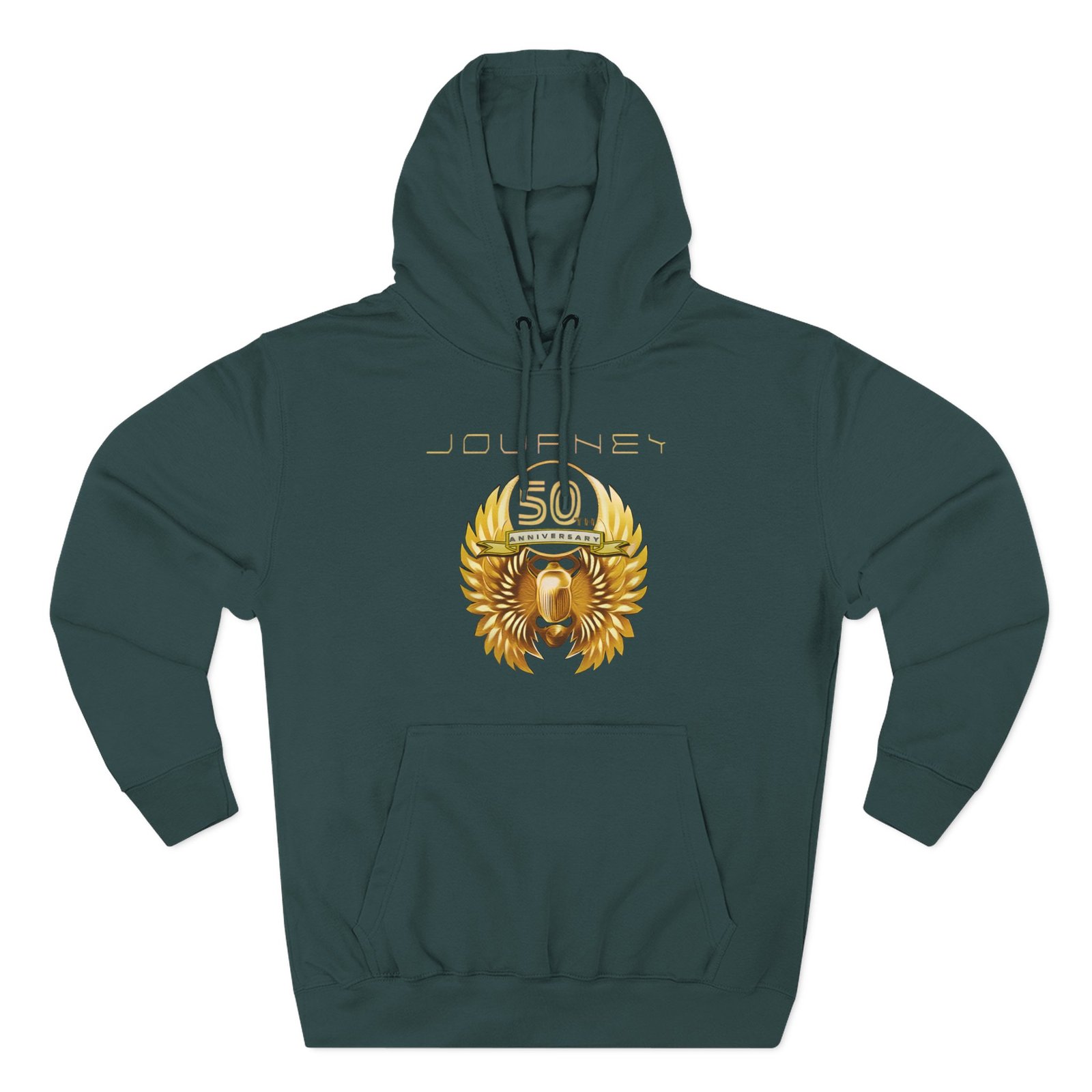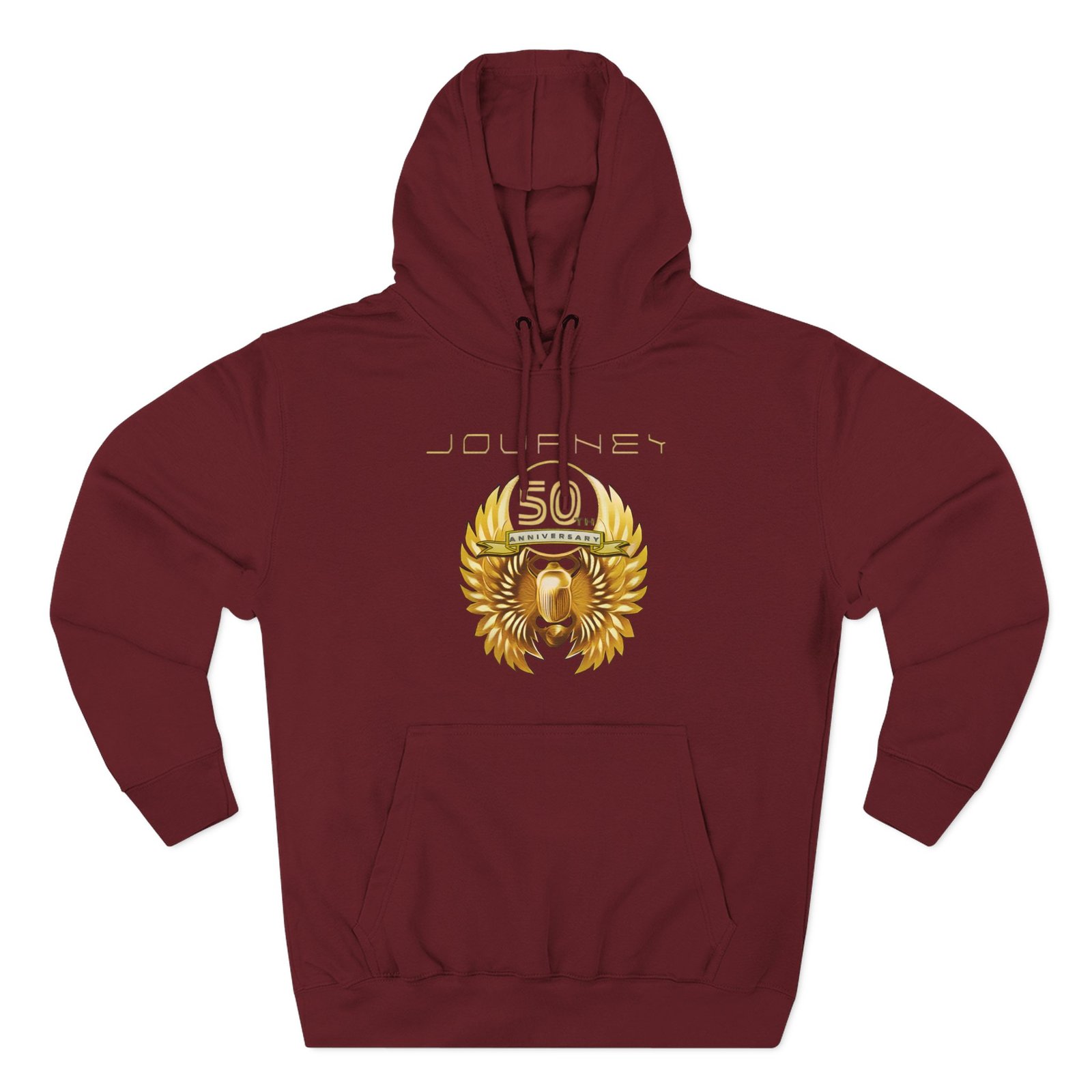 Beat the cold with this Journey 50th Anniversary premium pullover hoodie that’s just the right layer of warm and cozy. Made with three-panel fleece lining, this pullover is double stitched for durability and roomy. Pick one in your favorite color to match your style.