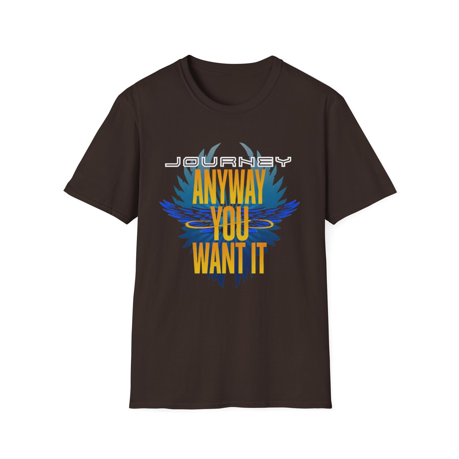 The Journey You Want It unisex soft-style t-shirt puts a new spin on casual comfort. Made from very soft materials, this tee is 100% cotton for solid colors. Heather colors and sports grey include polyester. The shoulders have twill tape for improved durability. There are no side seams. The collar is made with ribbed knitting to prevent curling damage.