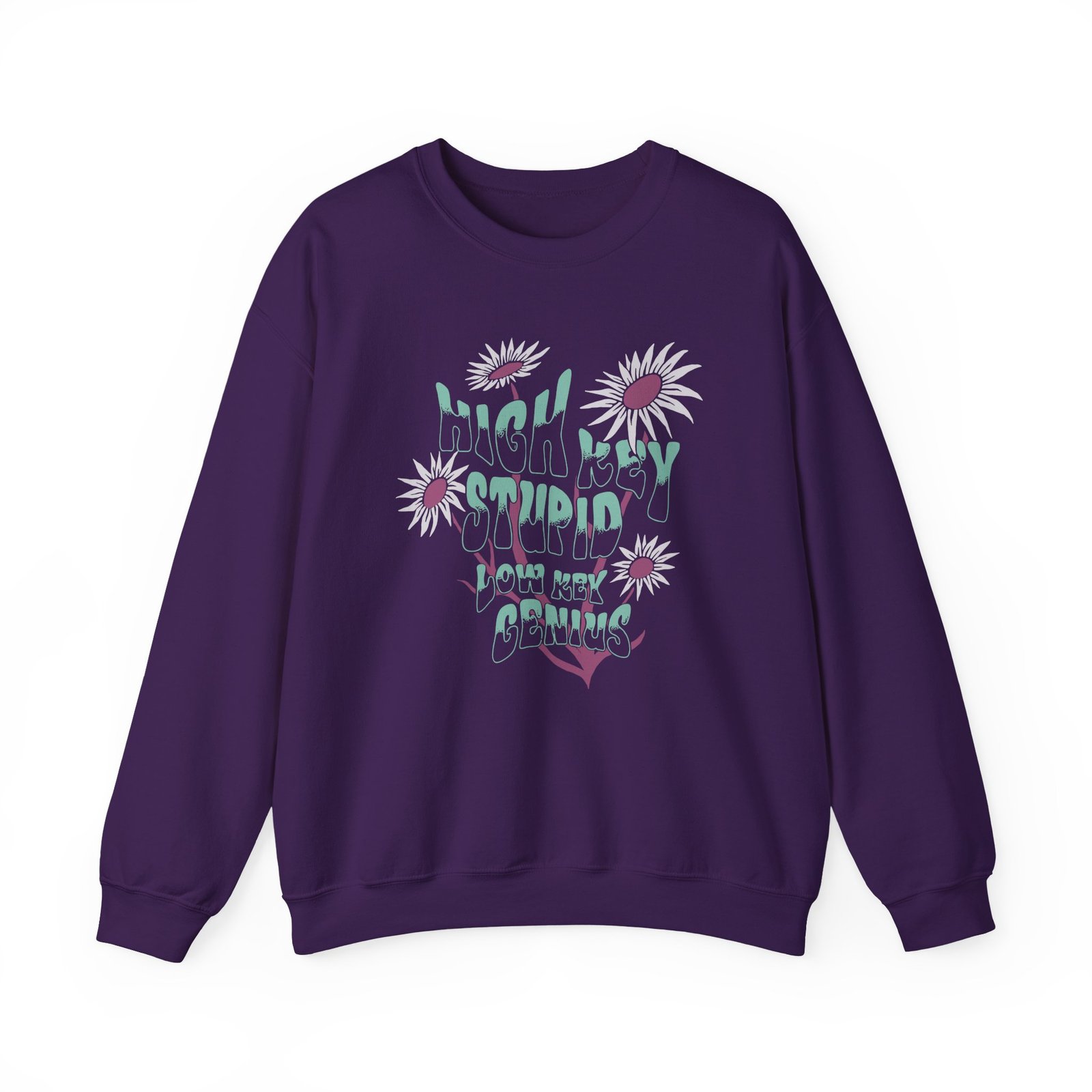 Ideal for any situation, a Kallmekris High Key Stupid Low Key Genius unisex heavy blend crewneck sweatshirt is pure comfort. These garments are made from polyester and cotton. This combination helps designs come out looking fresh and beautiful. The collar is ribbed knit, so it retains its shape even after washing. There are no itchy side seams on these sweaters.