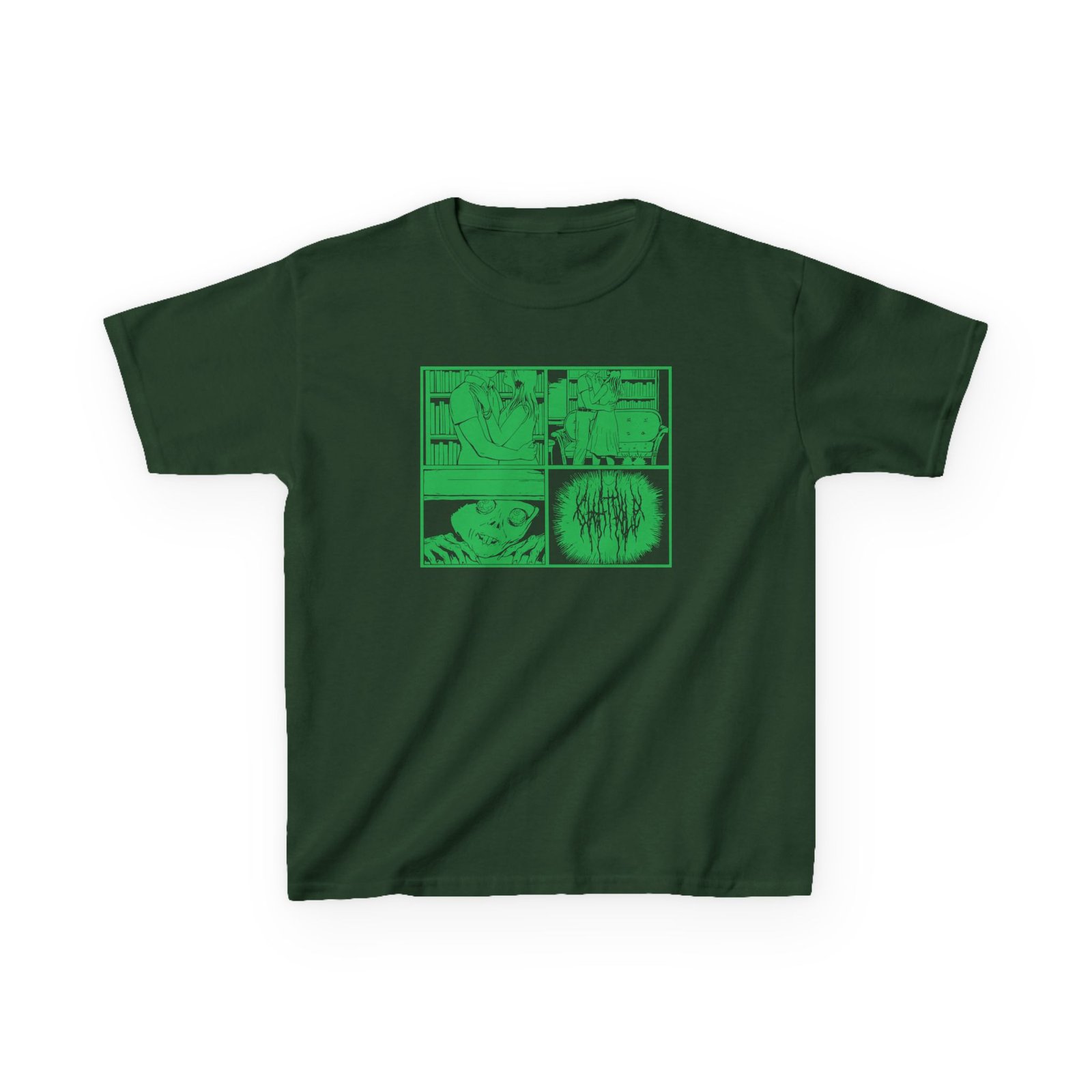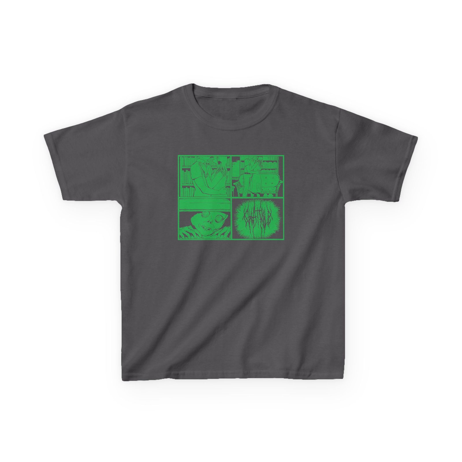 This kids Chat Pile Green Rat Boy tee brings playful fruit-card humor to everyday wear. The soft midweight cotton keeps active little ones comfy through playground antics and quiet storytime alike, while the bold front graphic—two banana card illustrations with the cheeky caption about Gros Michel and Cavendish varieties—adds a wink of botanical nostalgia. The classic crew neck and relaxed cut move with kids, and tear-away labels and ribbed collar keep irritation low. Ethically sourced, REACH- and Oeko‑Tex‑certified materials mean you can feel good about a shirt built for repeated washes and season-to-season wear. It sits easily under jackets or on its own for warm days and brings a lighthearted, nerdy flair to family outings, school events, or casual weekends.