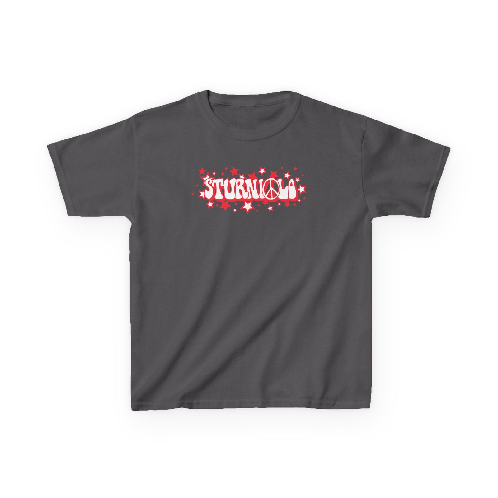 This kids Sturniolo Peace & Stars tee brings playful fruit-card humor to everyday wear. The soft midweight cotton keeps active little ones comfy through playground antics and quiet storytime alike, while the bold front graphic—two banana card illustrations with the cheeky caption about Gros Michel and Cavendish varieties—adds a wink of botanical nostalgia. The classic crew neck and relaxed cut move with kids, and tear-away labels and ribbed collar keep irritation low. Ethically sourced, REACH- and Oeko‑Tex‑certified materials mean you can feel good about a shirt built for repeated washes and season-to-season wear. It sits easily under jackets or on its own for warm days and brings a lighthearted, nerdy flair to family outings, school events, or casual weekends.