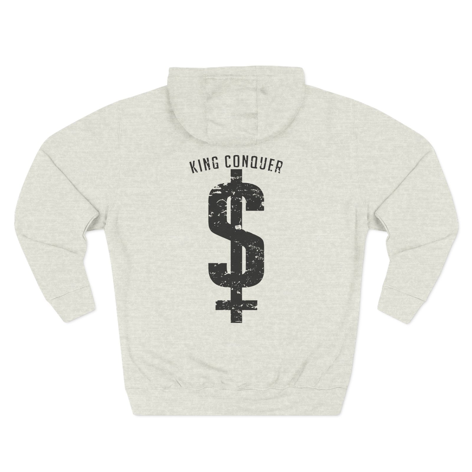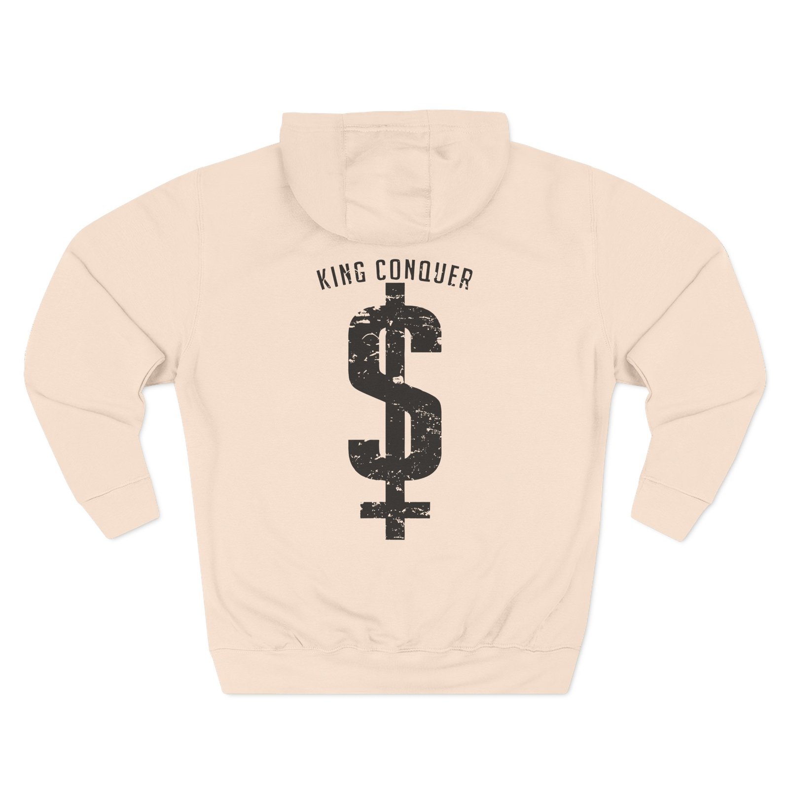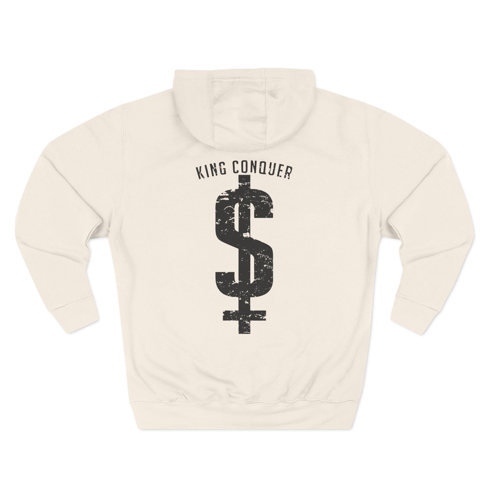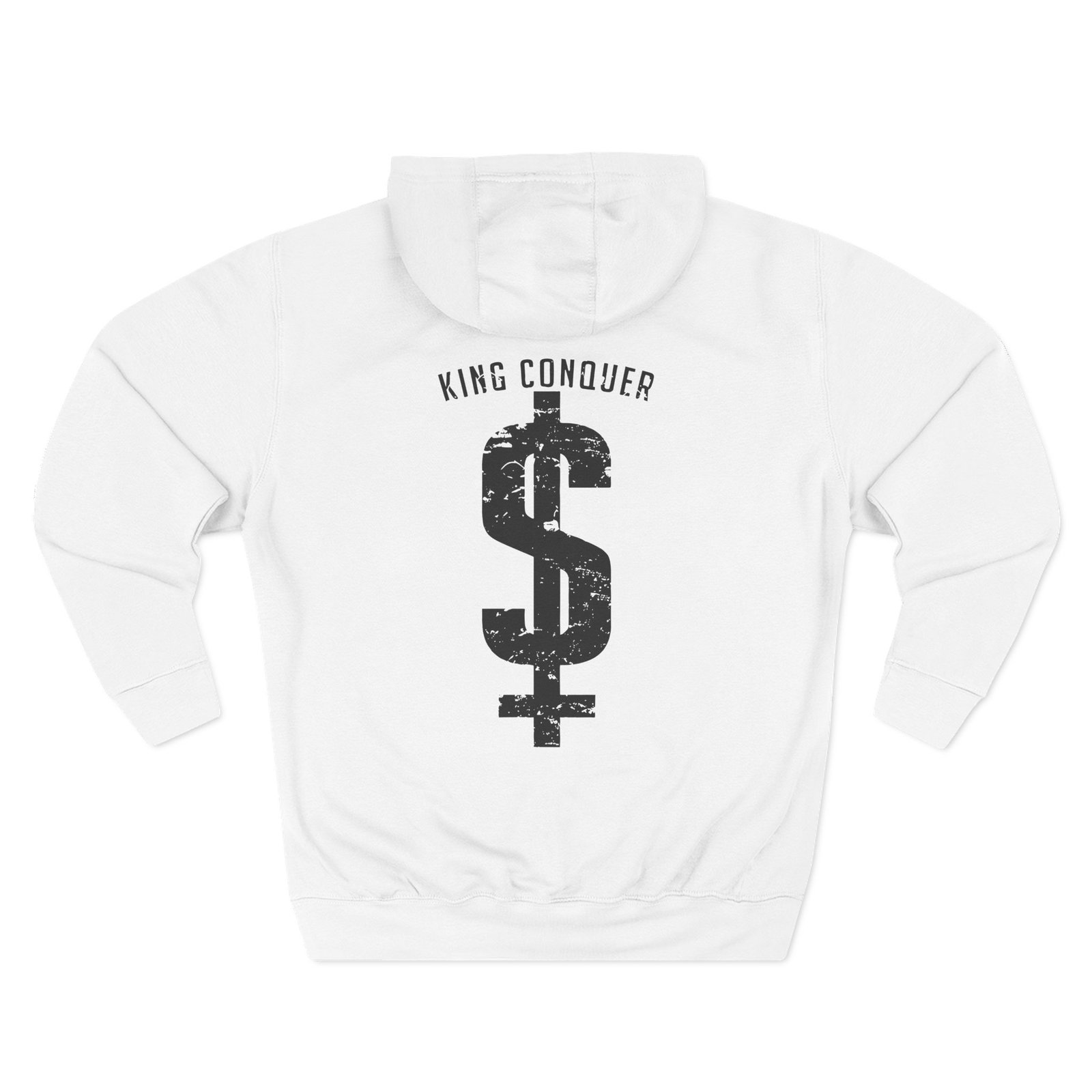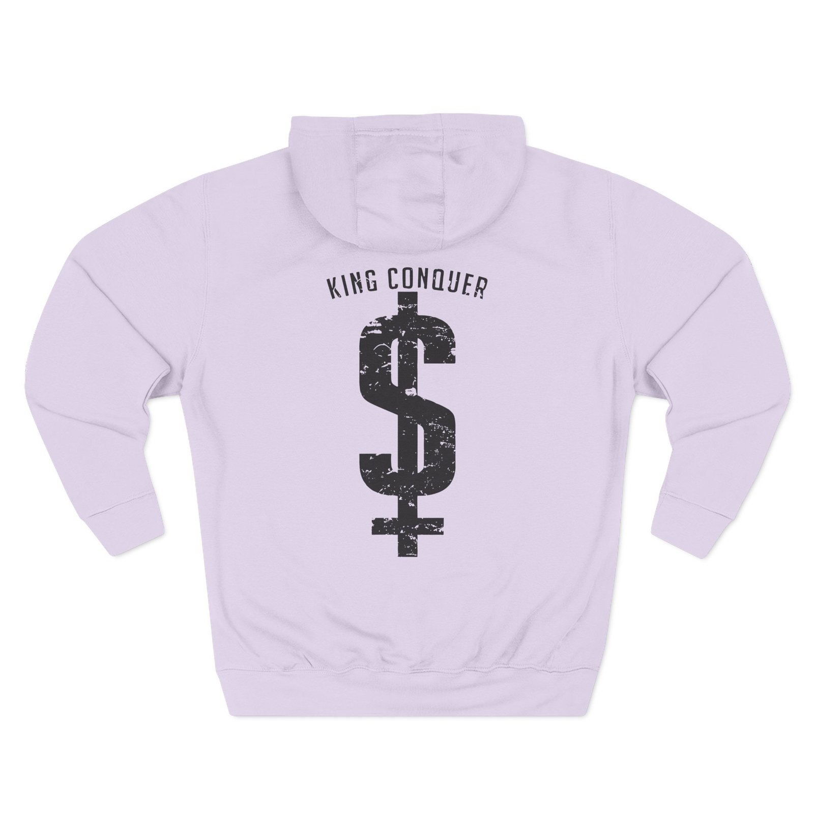 Beat the cold with this King Conquer dollar sign premium pullover hoodie that’s just the right layer of warm and cozy. Made with three-panel fleece lining, this pullover is double stitched for durability and roomy. Pick one in your favorite color to match your style.