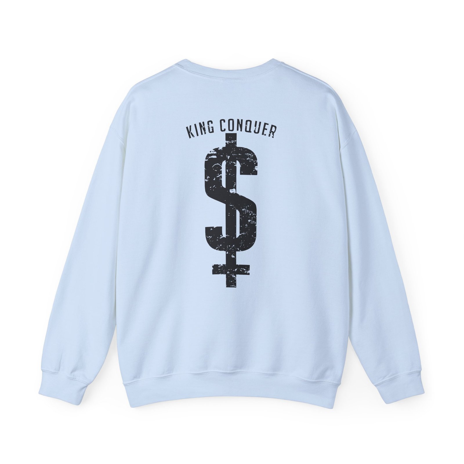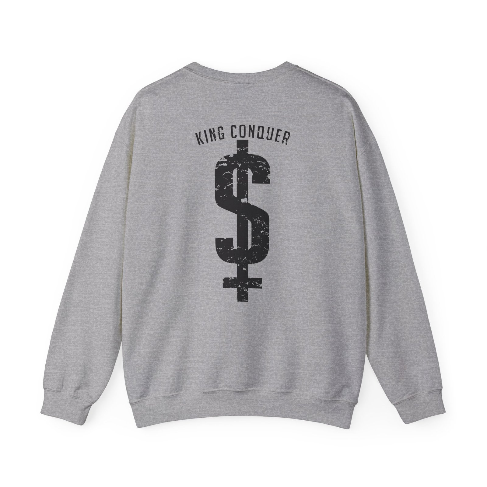 Ideal for any situation, a King Conquer dollar sign unisex heavy blend crewneck sweatshirt is pure comfort. These garments are made from polyester and cotton. This combination helps designs come out looking fresh and beautiful. The collar is ribbed knit, so it retains its shape even after washing. There are no itchy side seams on these sweaters.