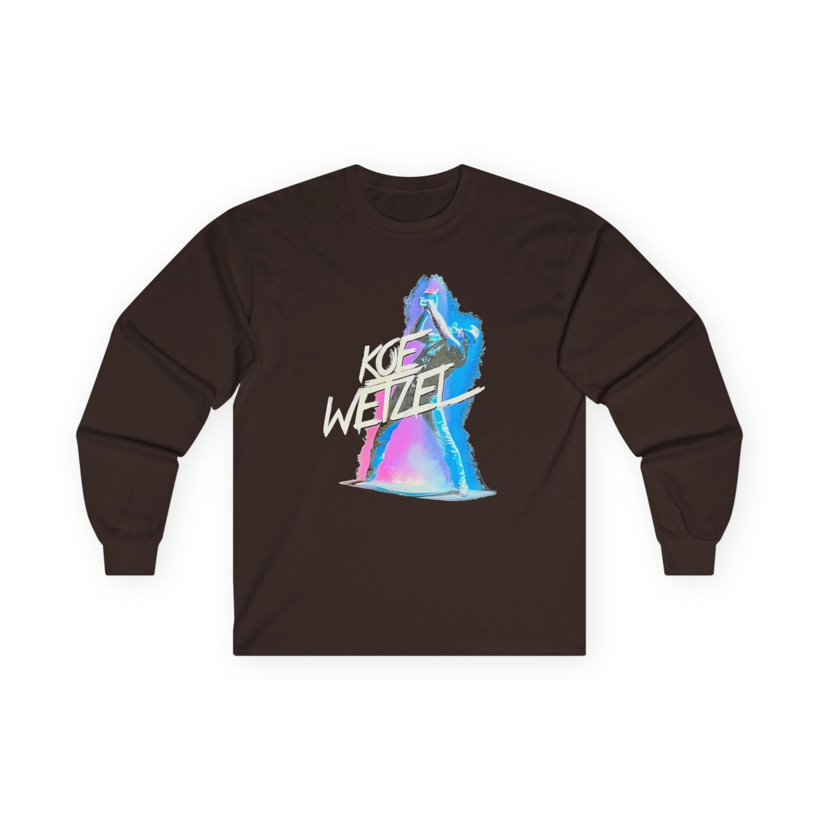 A bit more formal than a standard-issue t-shirt, the Koe Wetzel Guitar Smash ultra cotton long sleeve tee is a clear comfort winner. The sleeves also act as a nice frame. There are no side seams. The shoulders are taped for improved durability. This makes for a good fitting around the shoulders and neck. The cotton used for these shirts is environmentally friendly.