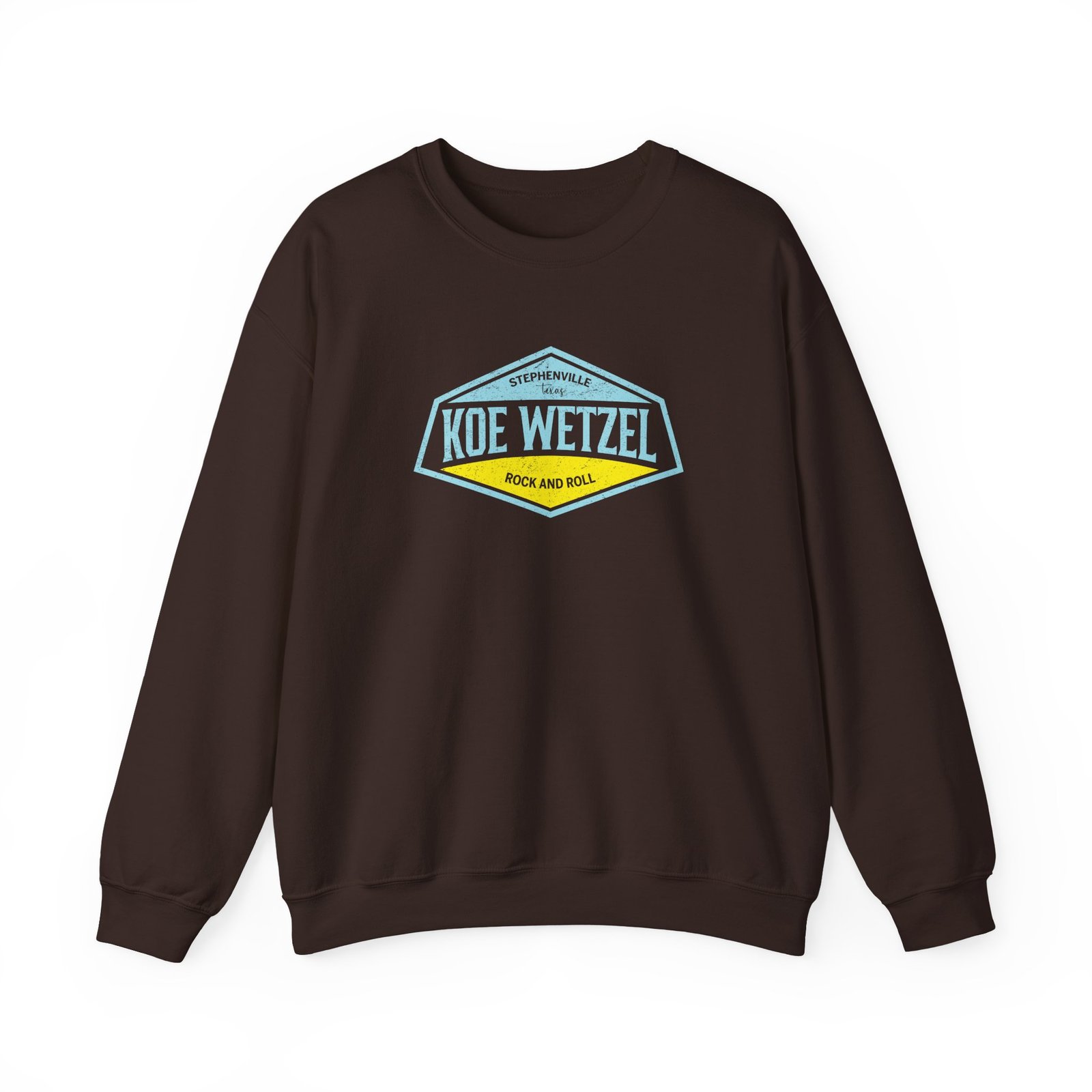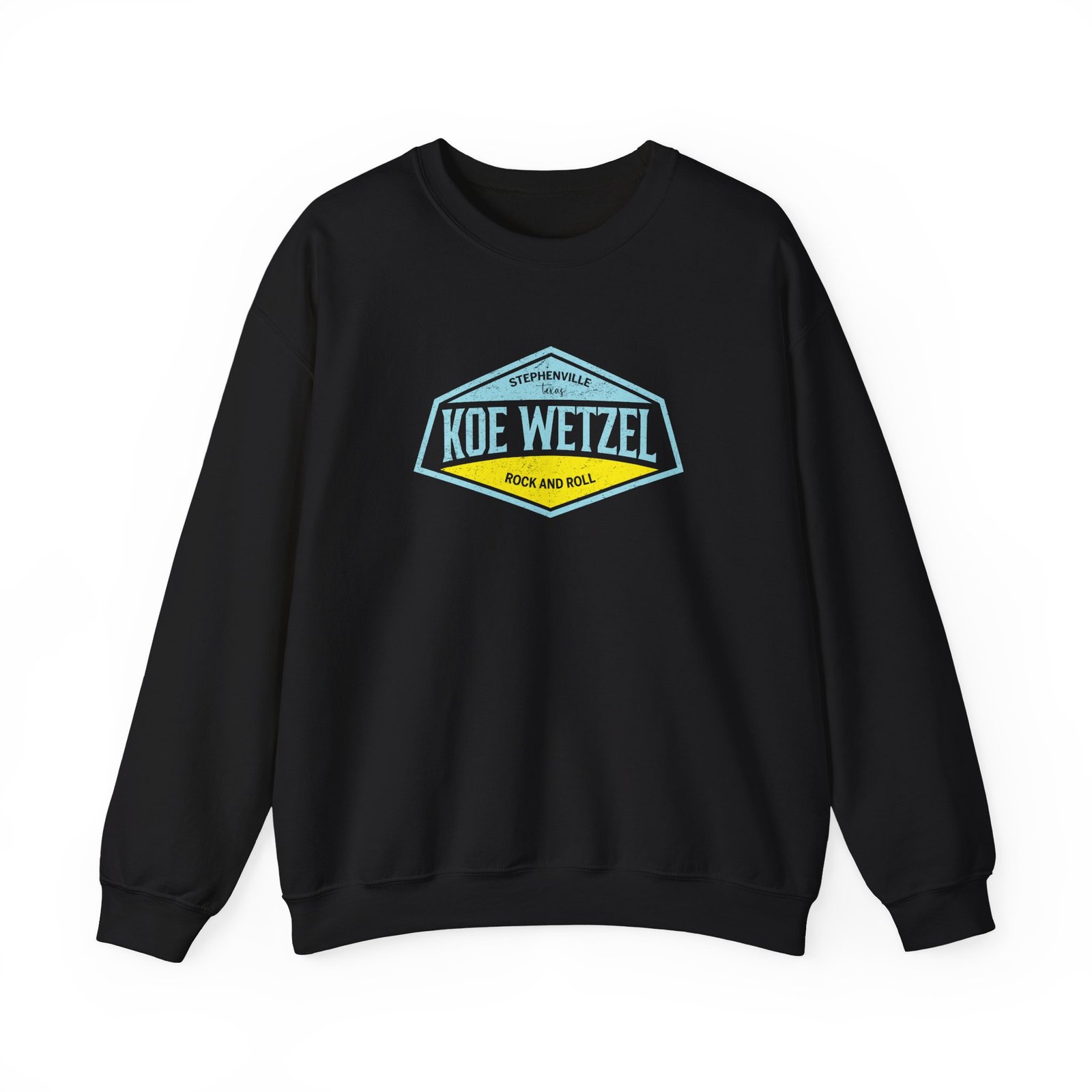 Ideal for any situation, a Koe Wetzel Stephenville Rock & Roll unisex heavy blend crewneck sweatshirt is pure comfort. These garments are made from polyester and cotton. This combination helps designs come out looking fresh and beautiful. The collar is ribbed knit, so it retains its shape even after washing. There are no itchy side seams on these sweaters.