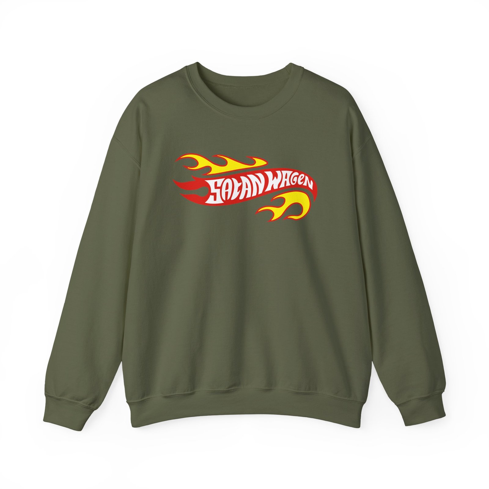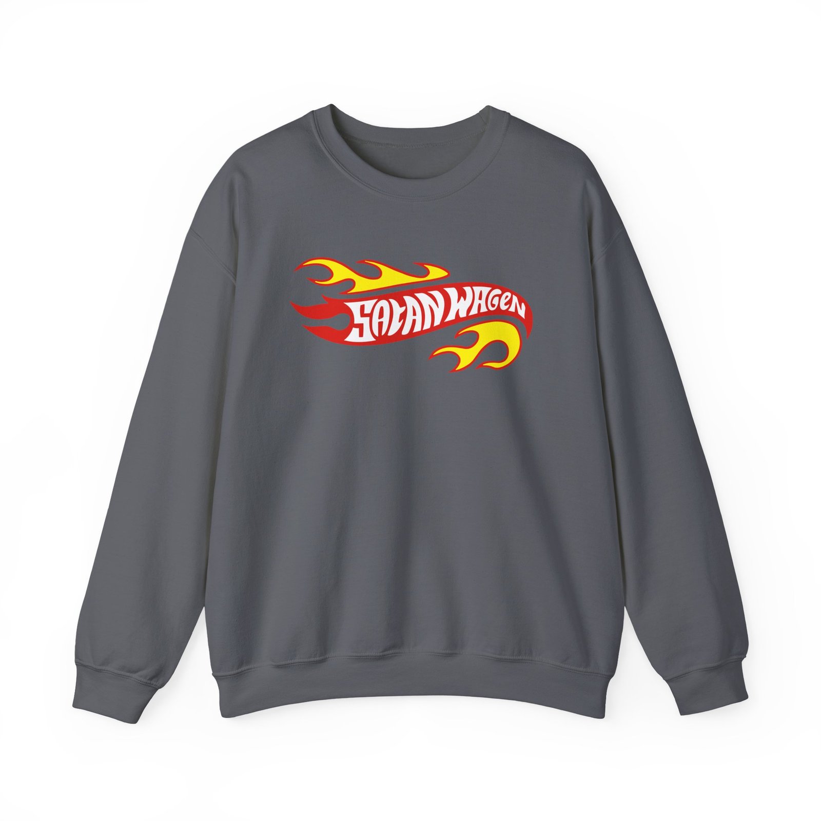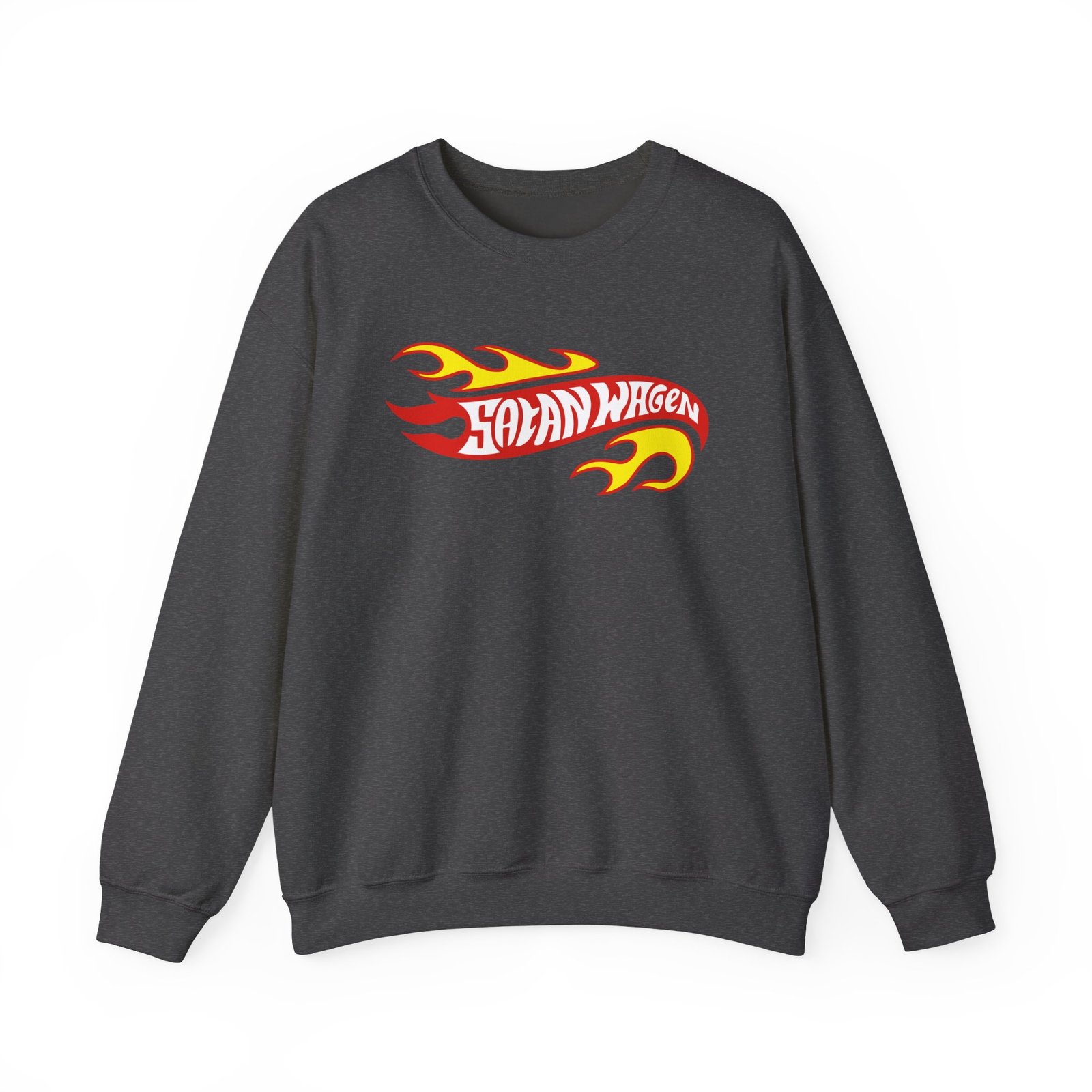 Ideal for any situation, a Koza Bobkov Satanwagen Inferno unisex heavy blend crewneck sweatshirt is pure comfort. These garments are made from polyester and cotton. This combination helps designs come out looking fresh and beautiful. The collar is ribbed knit, so it retains its shape even after washing. There are no itchy side seams on these sweaters.