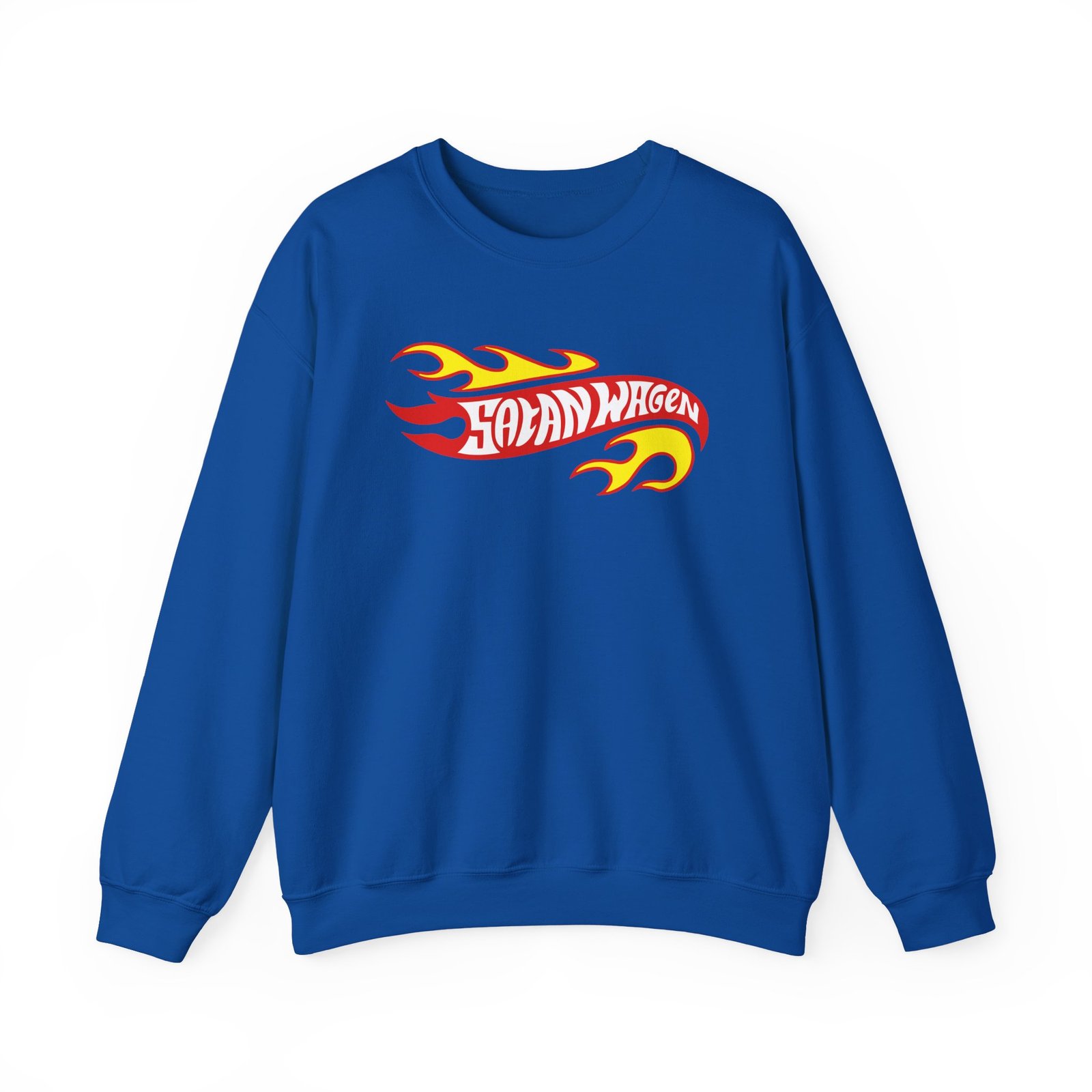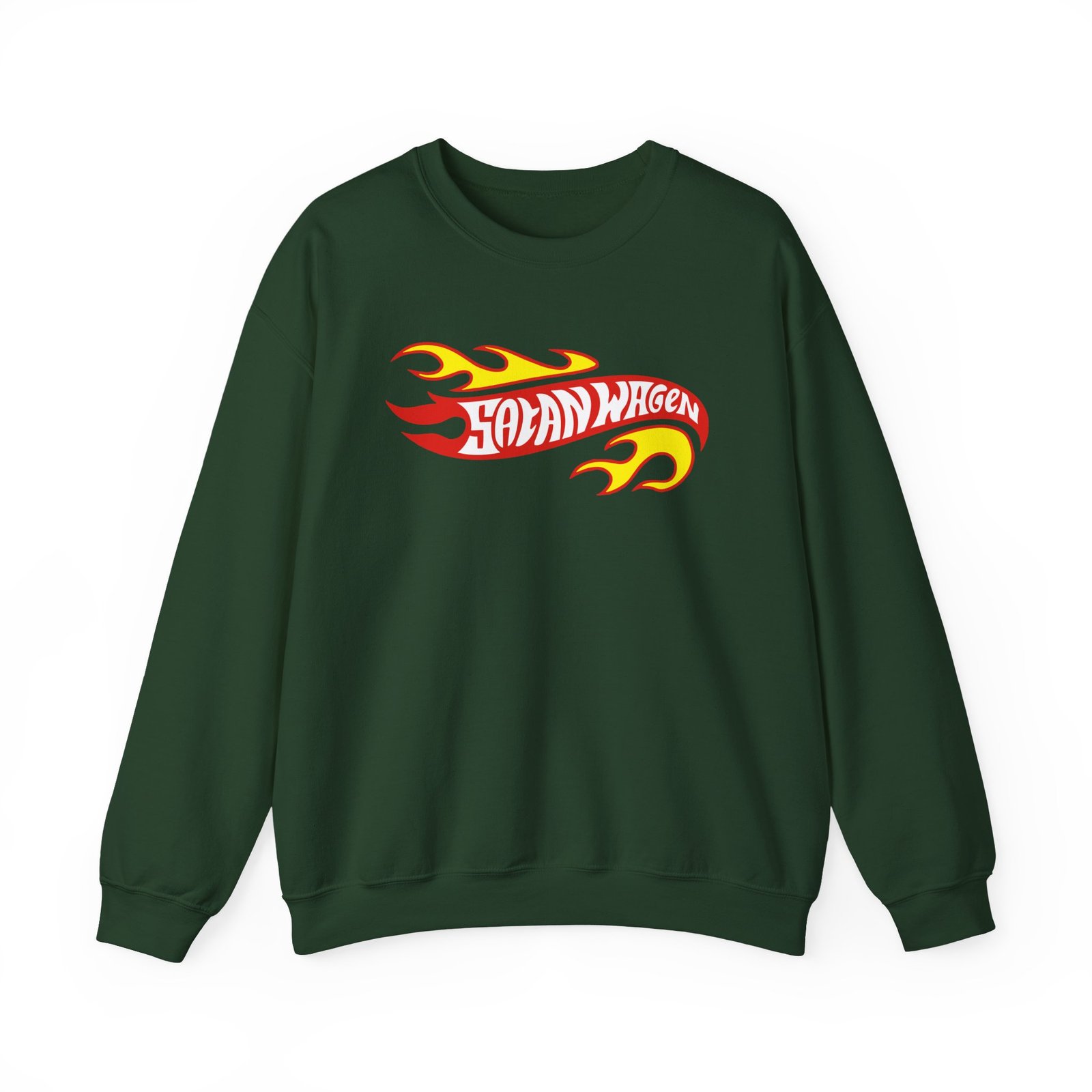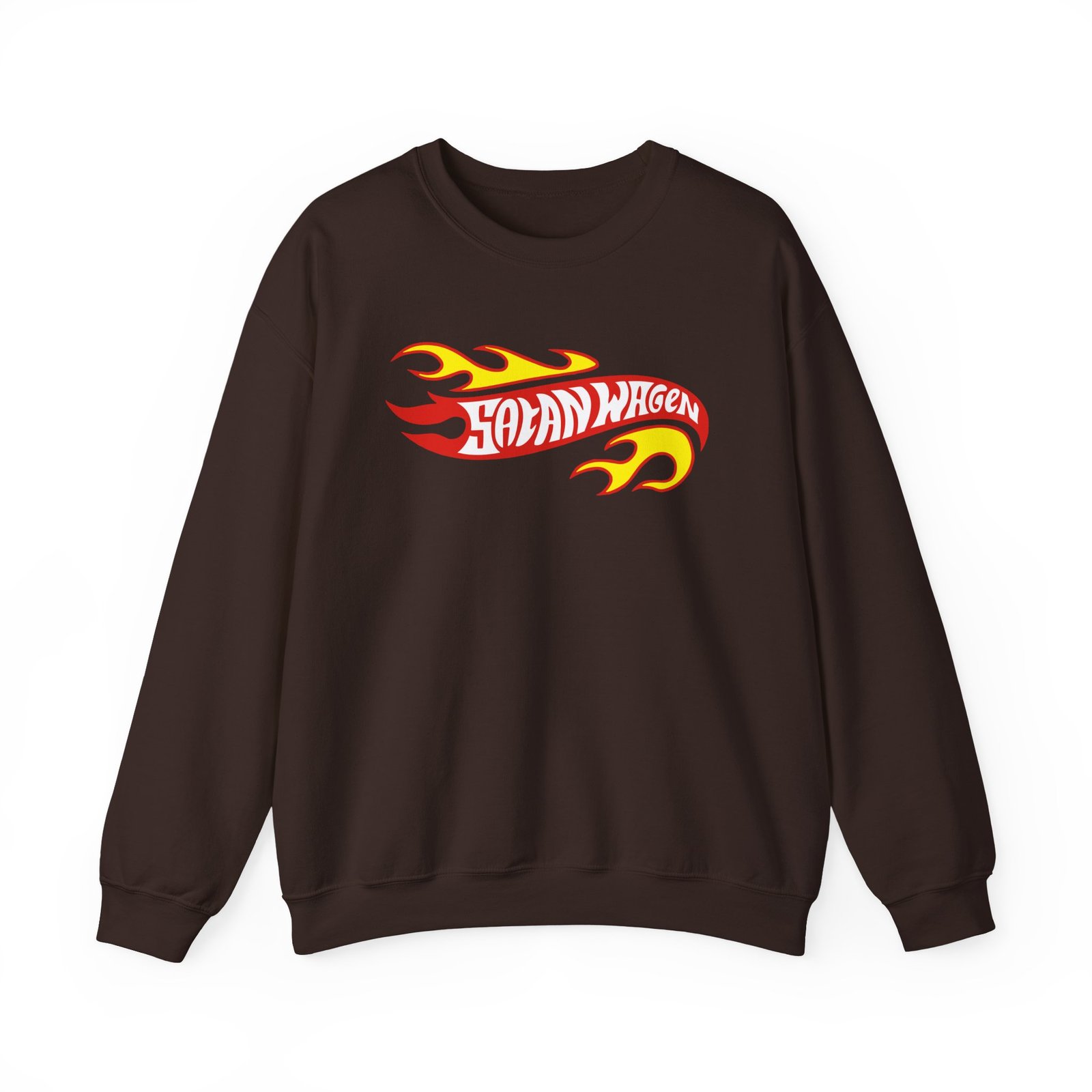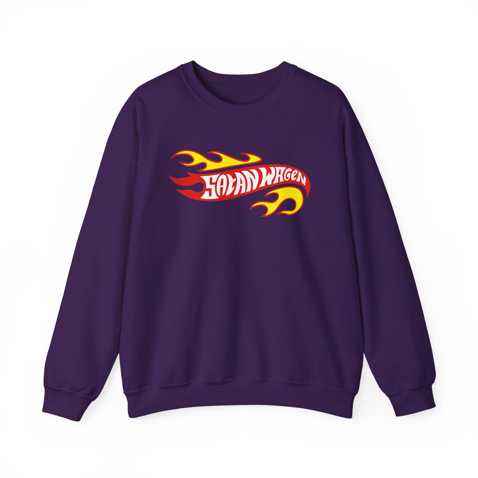 Ideal for any situation, a Koza Bobkov Satanwagen Inferno unisex heavy blend crewneck sweatshirt is pure comfort. These garments are made from polyester and cotton. This combination helps designs come out looking fresh and beautiful. The collar is ribbed knit, so it retains its shape even after washing. There are no itchy side seams on these sweaters.