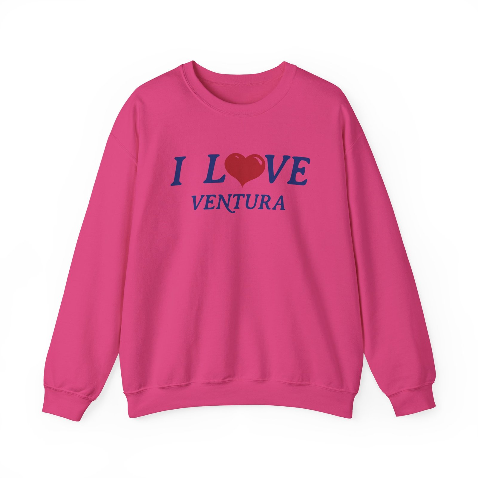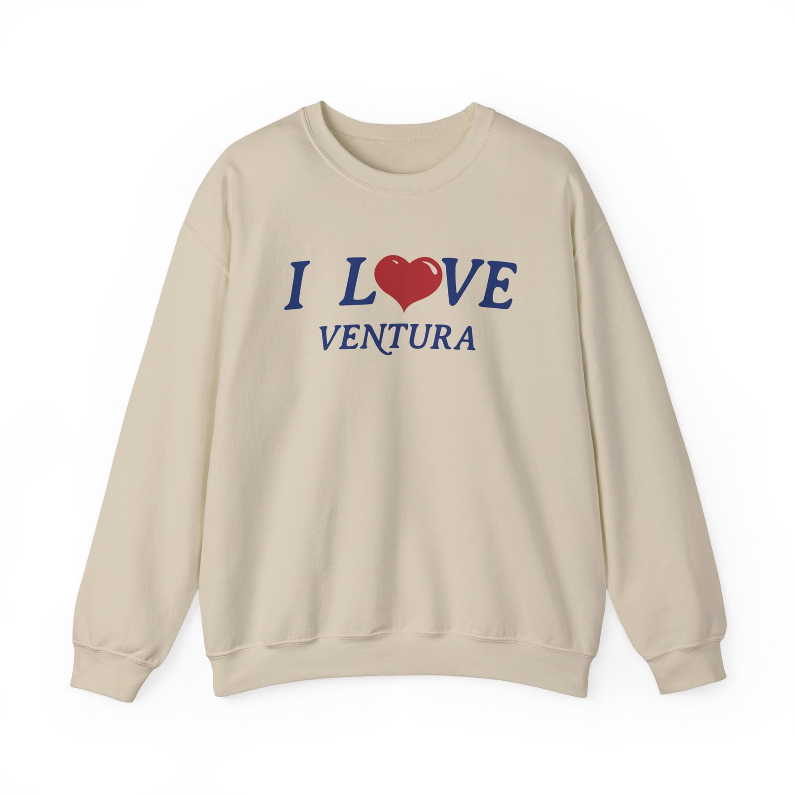 Ideal for any situation, a Kyle I Love Ventura unisex heavy blend crewneck sweatshirt is pure comfort. These garments are made from polyester and cotton. This combination helps designs come out looking fresh and beautiful. The collar is ribbed knit, so it retains its shape even after washing. There are no itchy side seams on these sweaters.