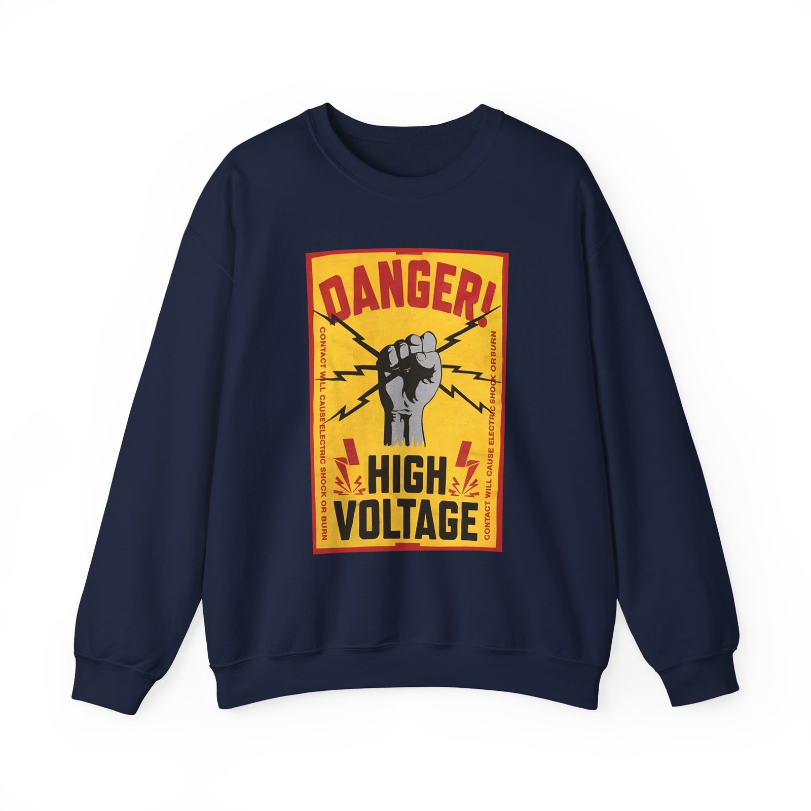 Ideal for any situation, a Lachlan Danger! High Voltage unisex heavy blend crewneck sweatshirt is pure comfort. These garments are made from polyester and cotton. This combination helps designs come out looking fresh and beautiful. The collar is ribbed knit, so it retains its shape even after washing. There are no itchy side seams on these sweaters.