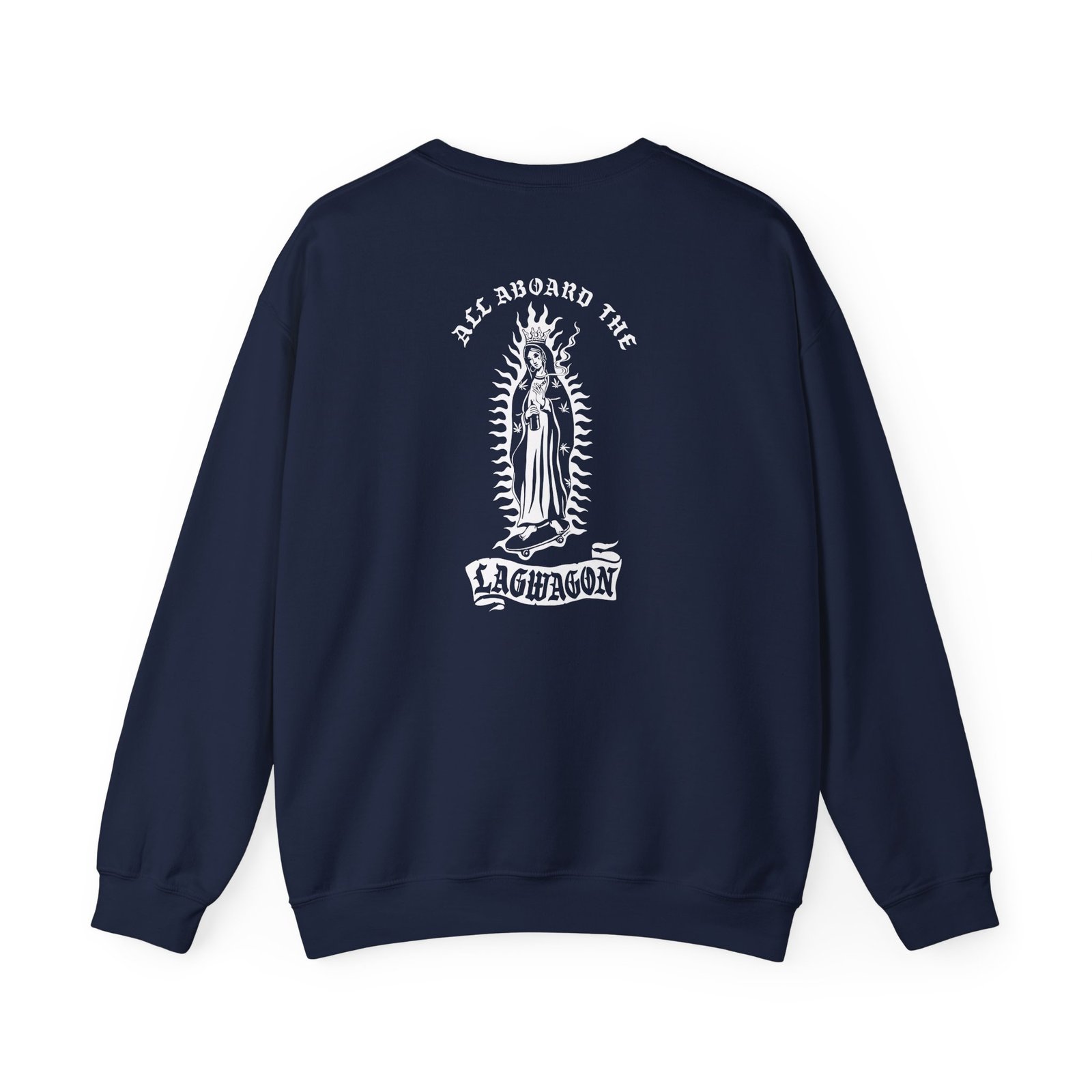 Ideal for any situation, a Lagwagon All Aboard unisex heavy blend crewneck sweatshirt is pure comfort. These garments are made from polyester and cotton. This combination helps designs come out looking fresh and beautiful. The collar is ribbed knit, so it retains its shape even after washing. There are no itchy side seams on these sweaters.