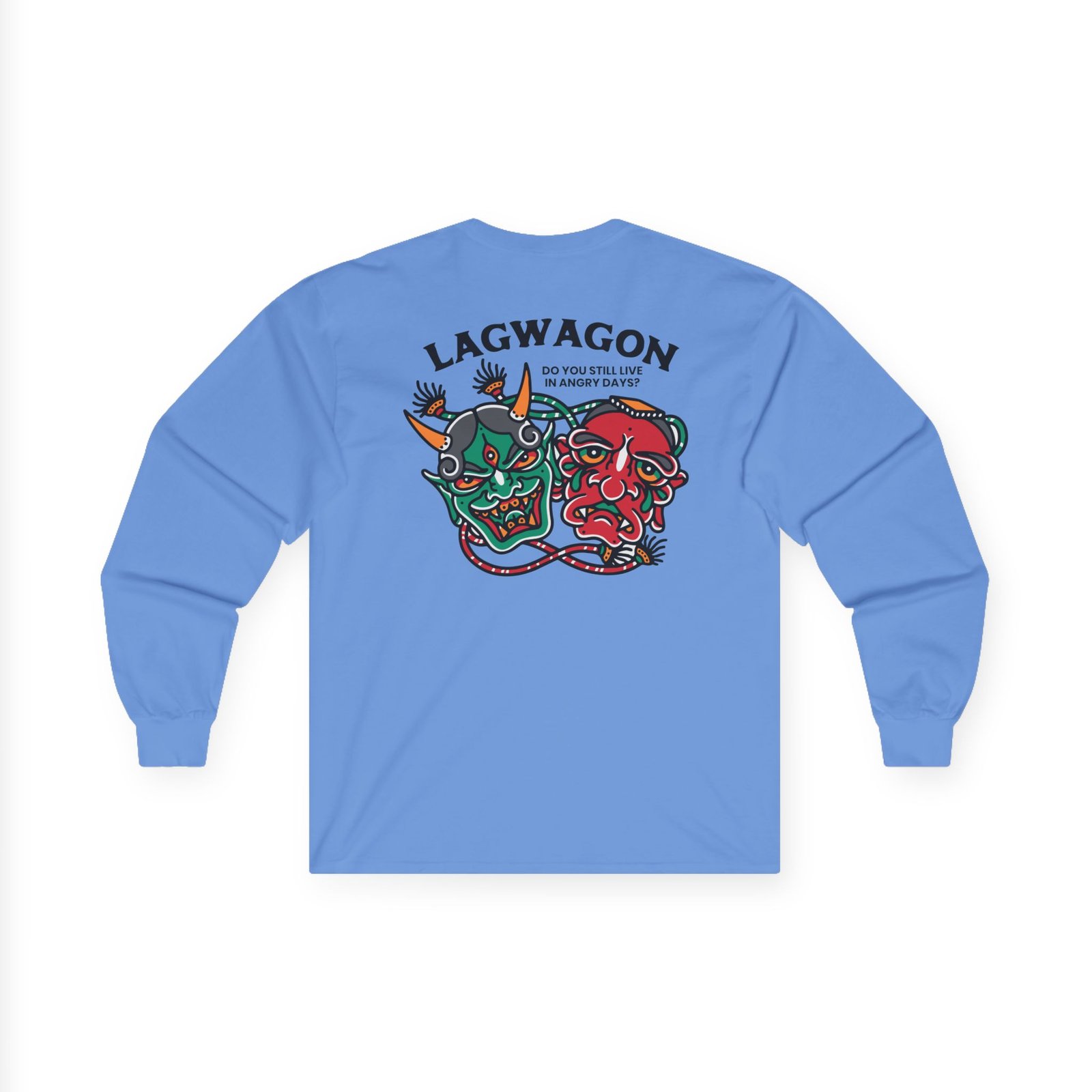 A bit more formal than a standard-issue t-shirt, the Lagwagon Angry Days ultra cotton long sleeve tee is a clear comfort winner. The sleeves also act as a nice frame. There are no side seams. The shoulders are taped for improved durability. This makes for a good fitting around the shoulders and neck. The cotton used for these shirts is environmentally friendly.