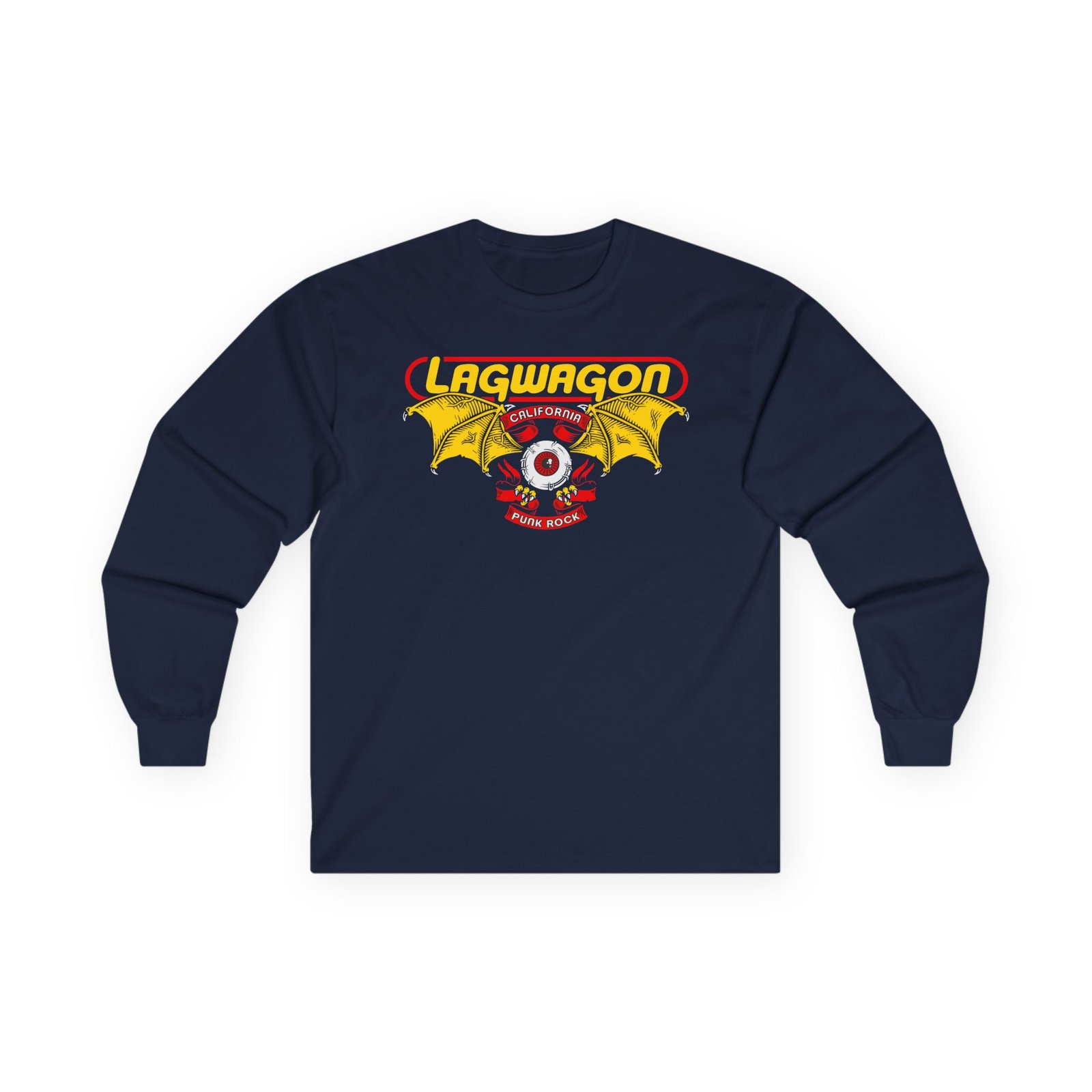 A bit more formal than a standard-issue t-shirt, the Lagwagon Eye California ultra cotton long sleeve tee is a clear comfort winner. The sleeves also act as a nice frame. There are no side seams. The shoulders are taped for improved durability. This makes for a good fitting around the shoulders and neck. The cotton used for these shirts is environmentally friendly.