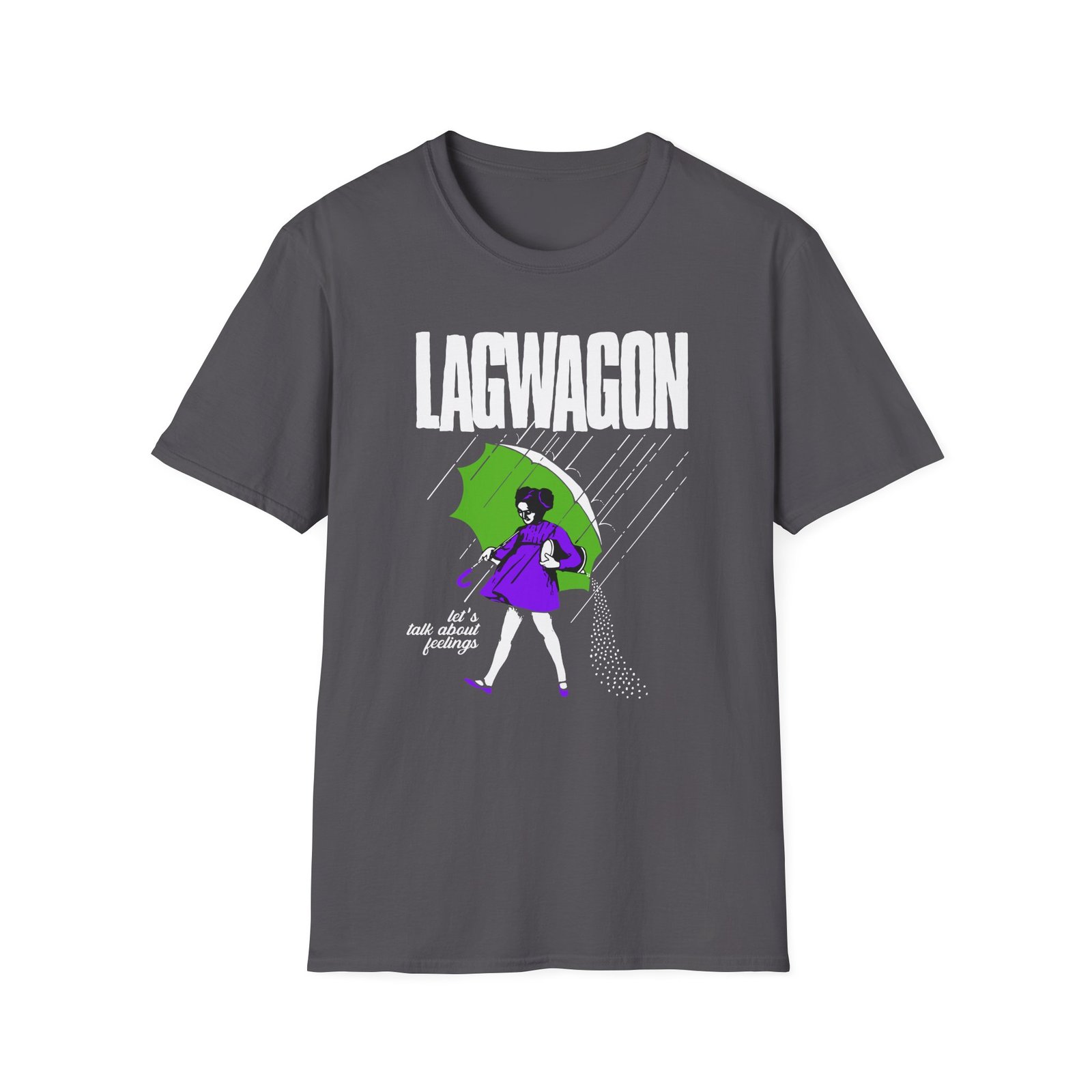 The Lagwagon Salty Feelings unisex soft-style t-shirt puts a new spin on casual comfort. Made from very soft materials, this tee is 100% cotton for solid colors. Heather colors and sports grey include polyester. The shoulders have twill tape for improved durability. There are no side seams. The collar is made with ribbed knitting to prevent curling damage.