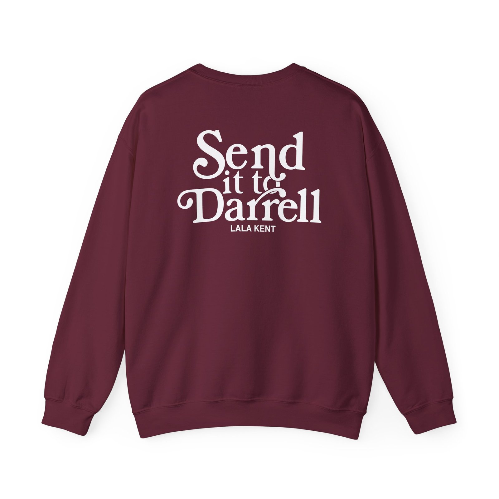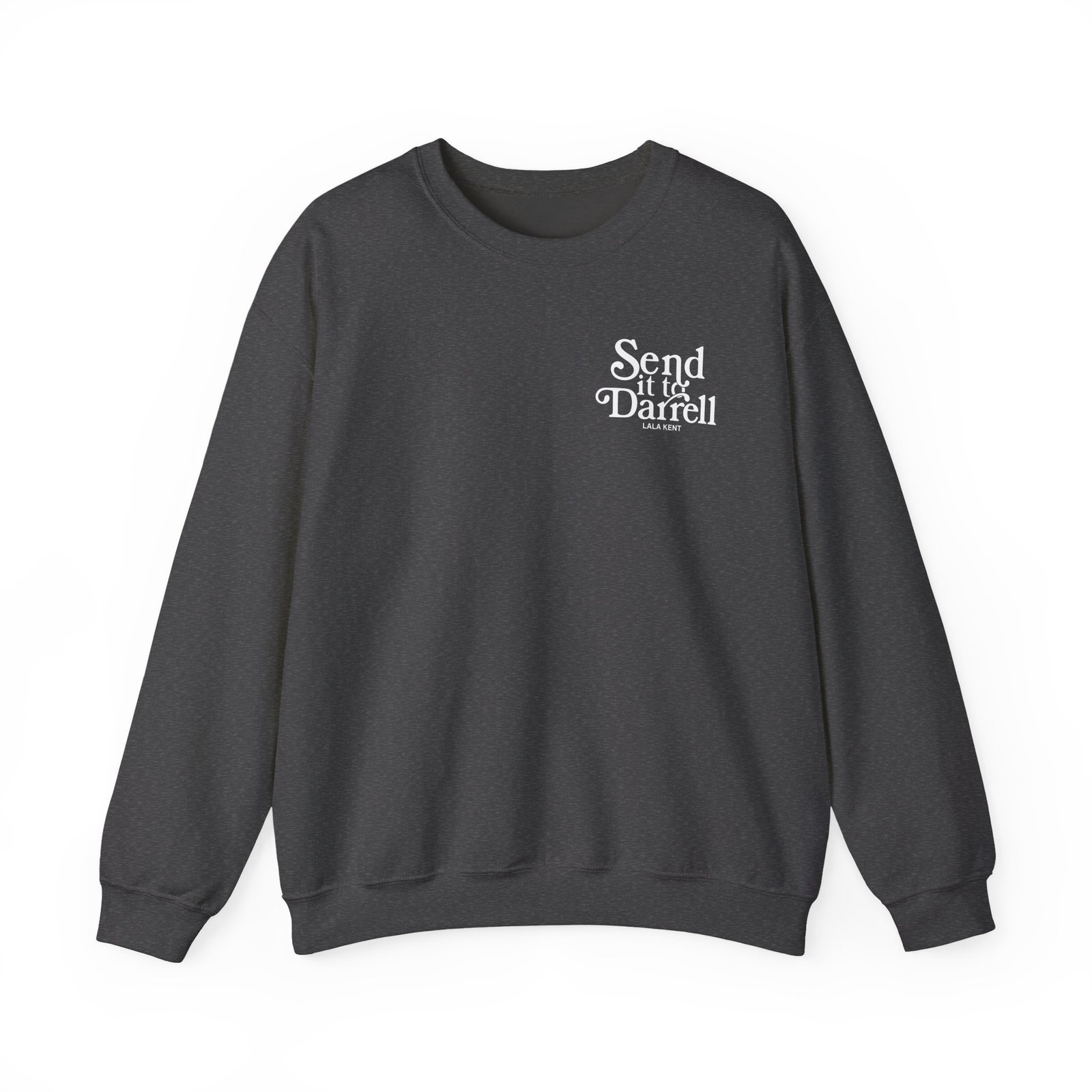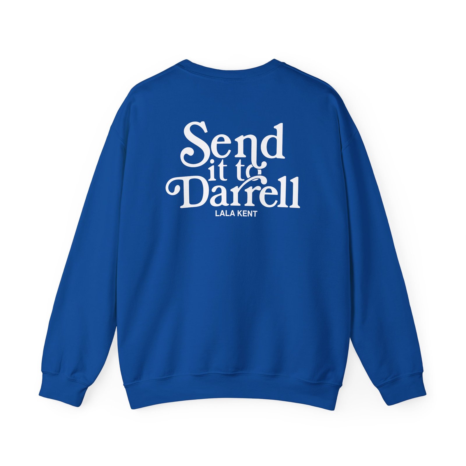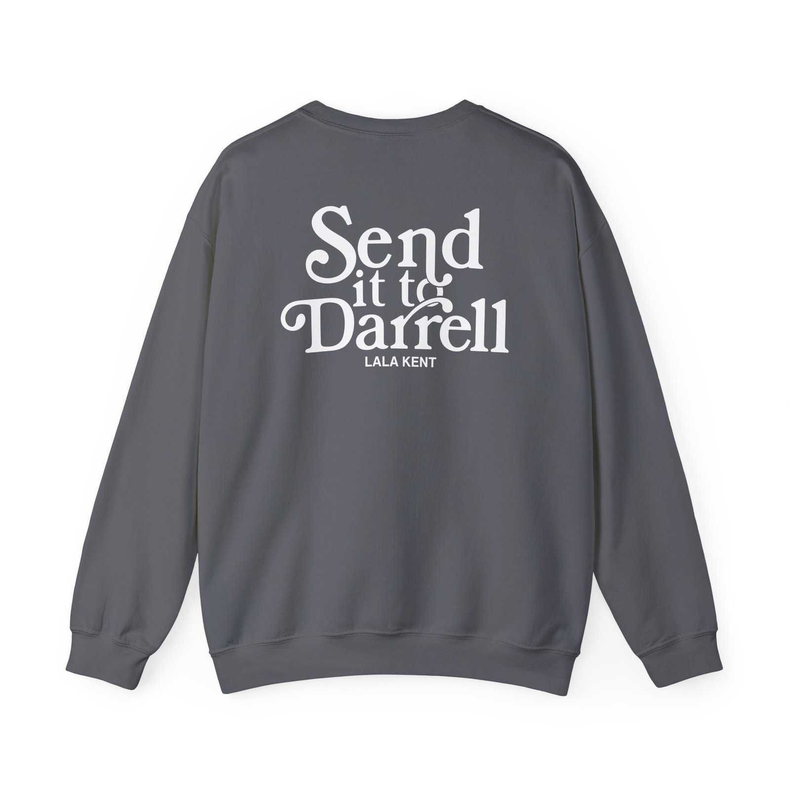 Ideal for any situation, a Lala Kent Send It to Darrell unisex heavy blend crewneck sweatshirt is pure comfort. These garments are made from polyester and cotton. This combination helps designs come out looking fresh and beautiful. The collar is ribbed knit, so it retains its shape even after washing. There are no itchy side seams on these sweaters.