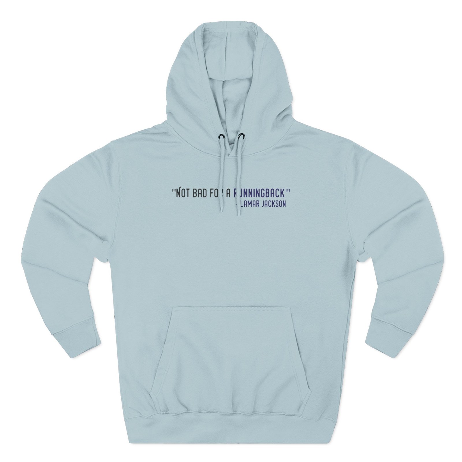 Beat the cold with this Lamar Jackson The Prodigy Not Bad for a Running Back premium pullover hoodie that’s just the right layer of warm and cozy. Made with three-panel fleece lining, this pullover is double stitched for durability and roomy. Pick one in your favorite color to match your style.
