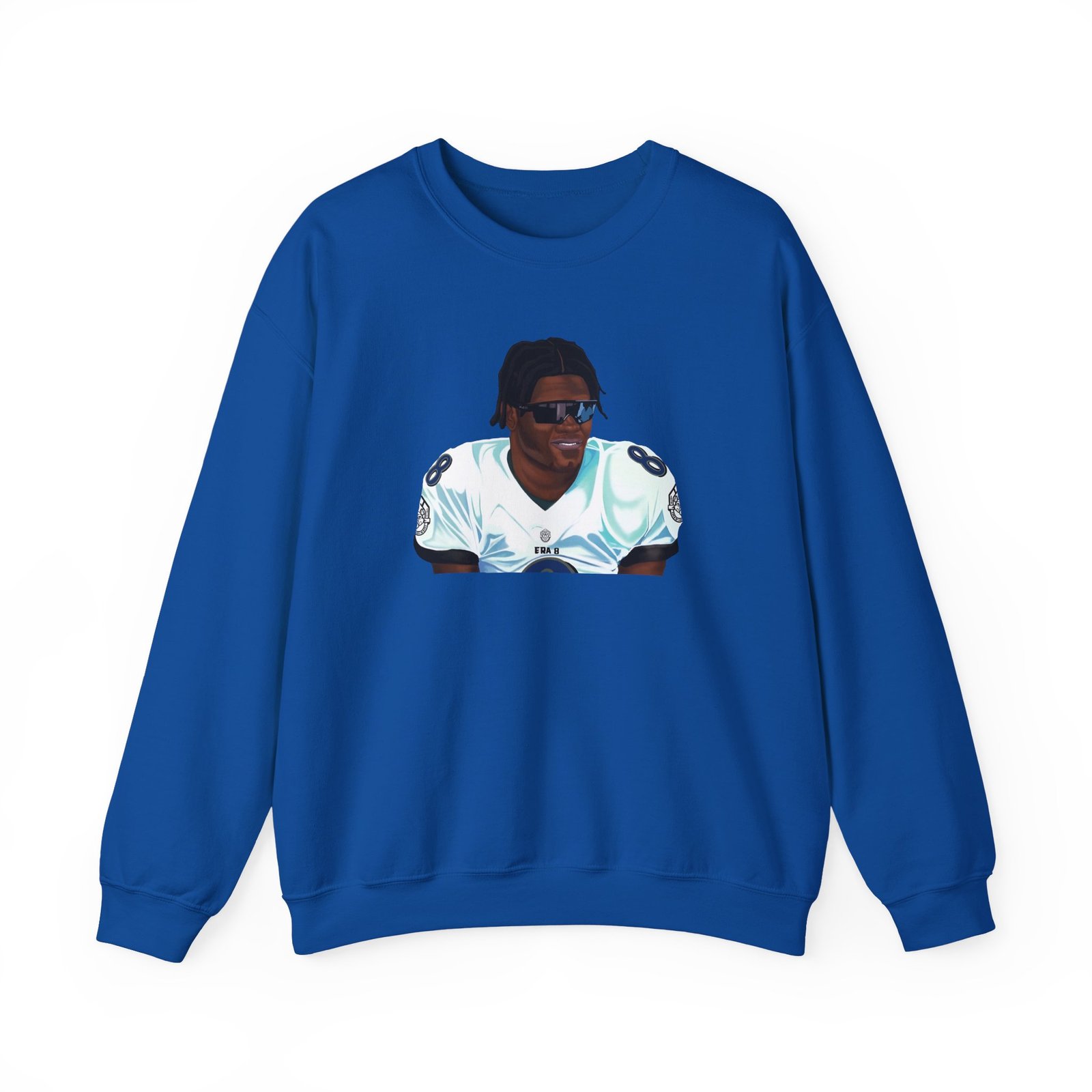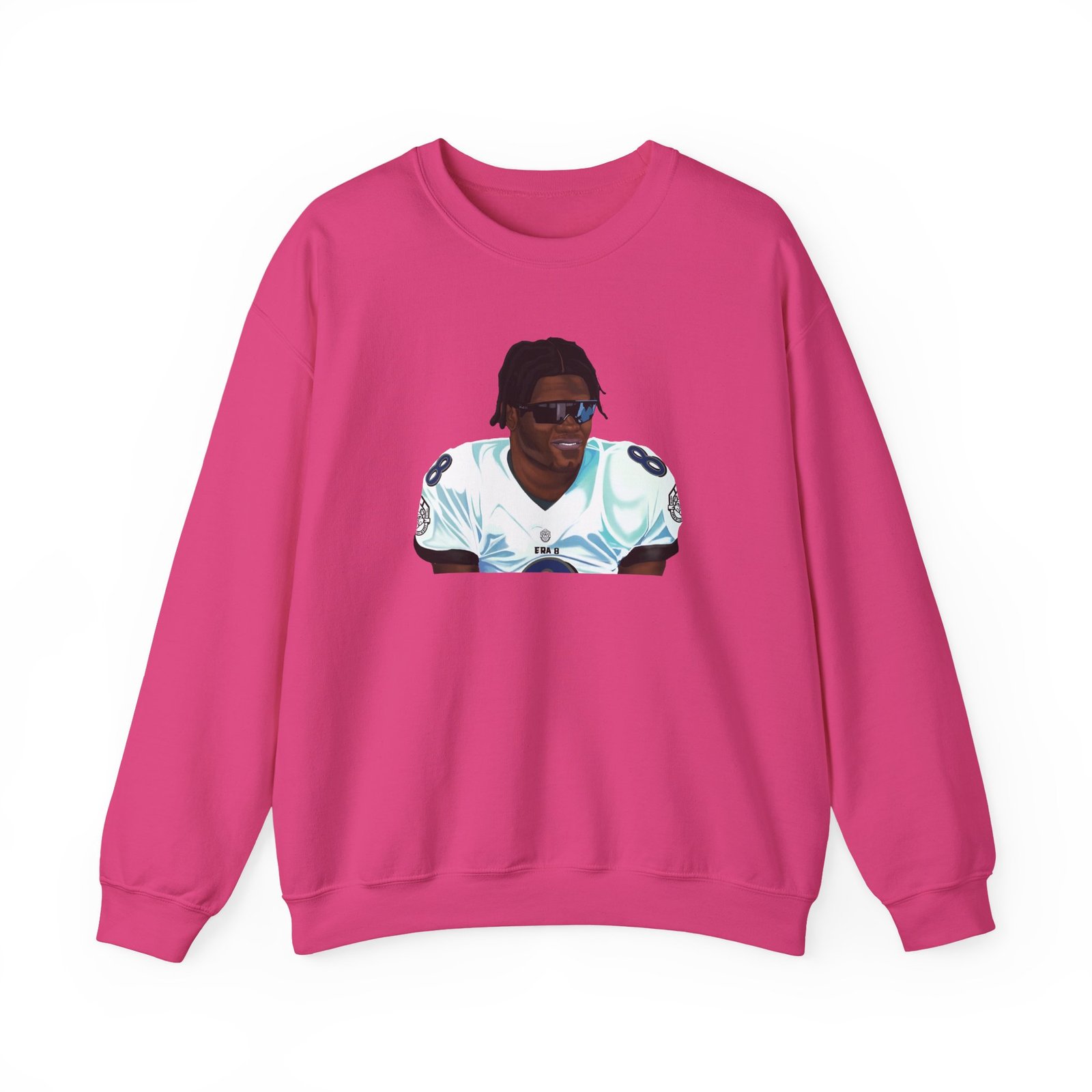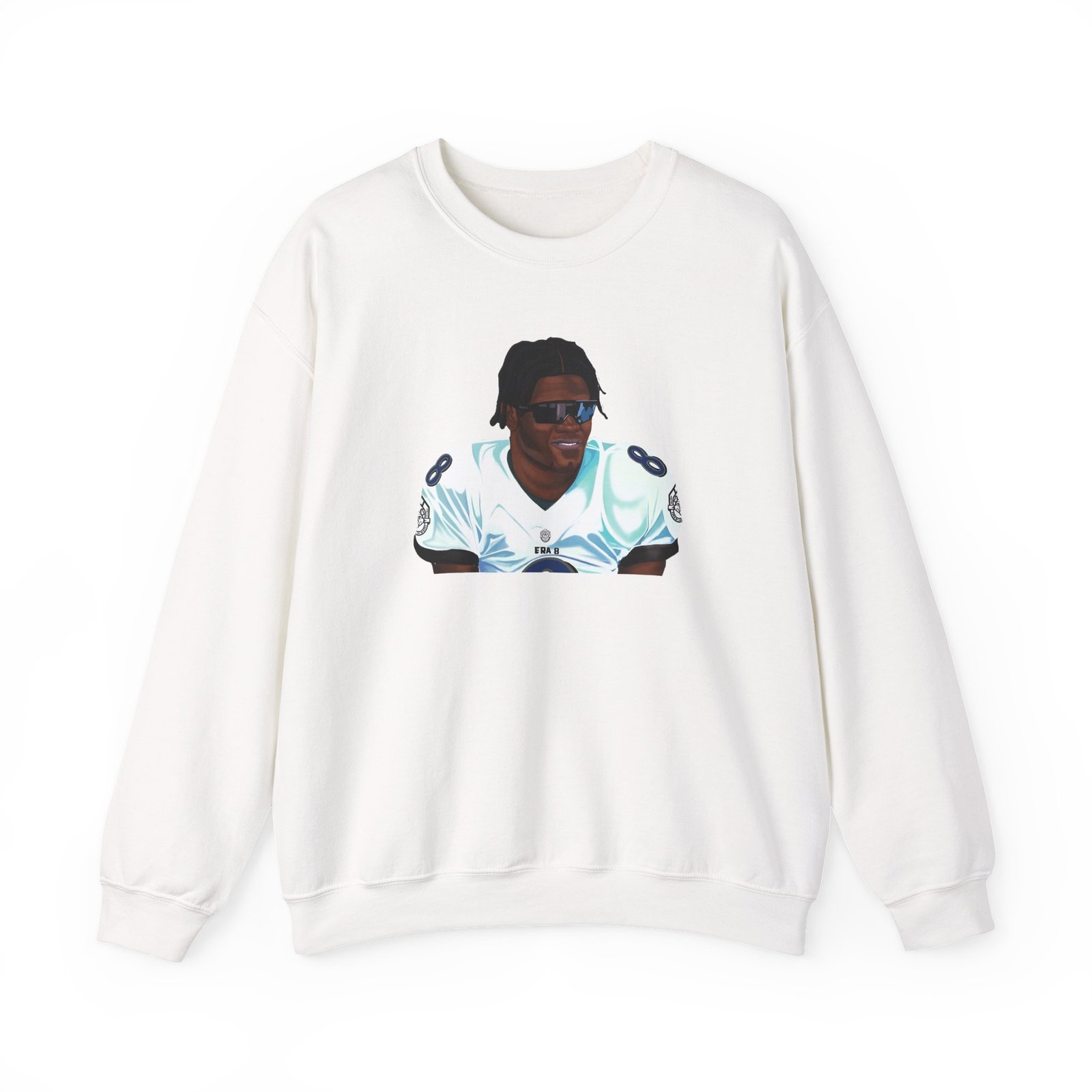 Ideal for any situation, a Lamar Jackson unisex heavy blend crewneck sweatshirt is pure comfort. These garments are made from polyester and cotton. This combination helps designs come out looking fresh and beautiful. The collar is ribbed knit, so it retains its shape even after washing. There are no itchy side seams on these sweaters.