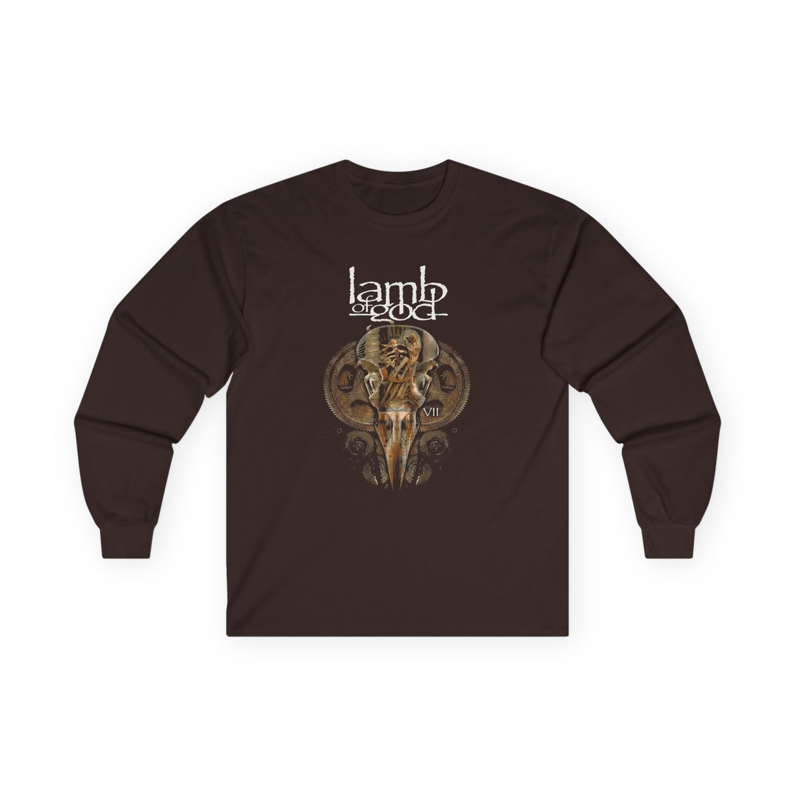 A bit more formal than a standard-issue t-shirt, the Lamb of God Sturm Und Gears ultra cotton long sleeve tee is a clear comfort winner. The sleeves also act as a nice frame. There are no side seams. The shoulders are taped for improved durability. This makes for a good fitting around the shoulders and neck. The cotton used for these shirts is environmentally friendly.