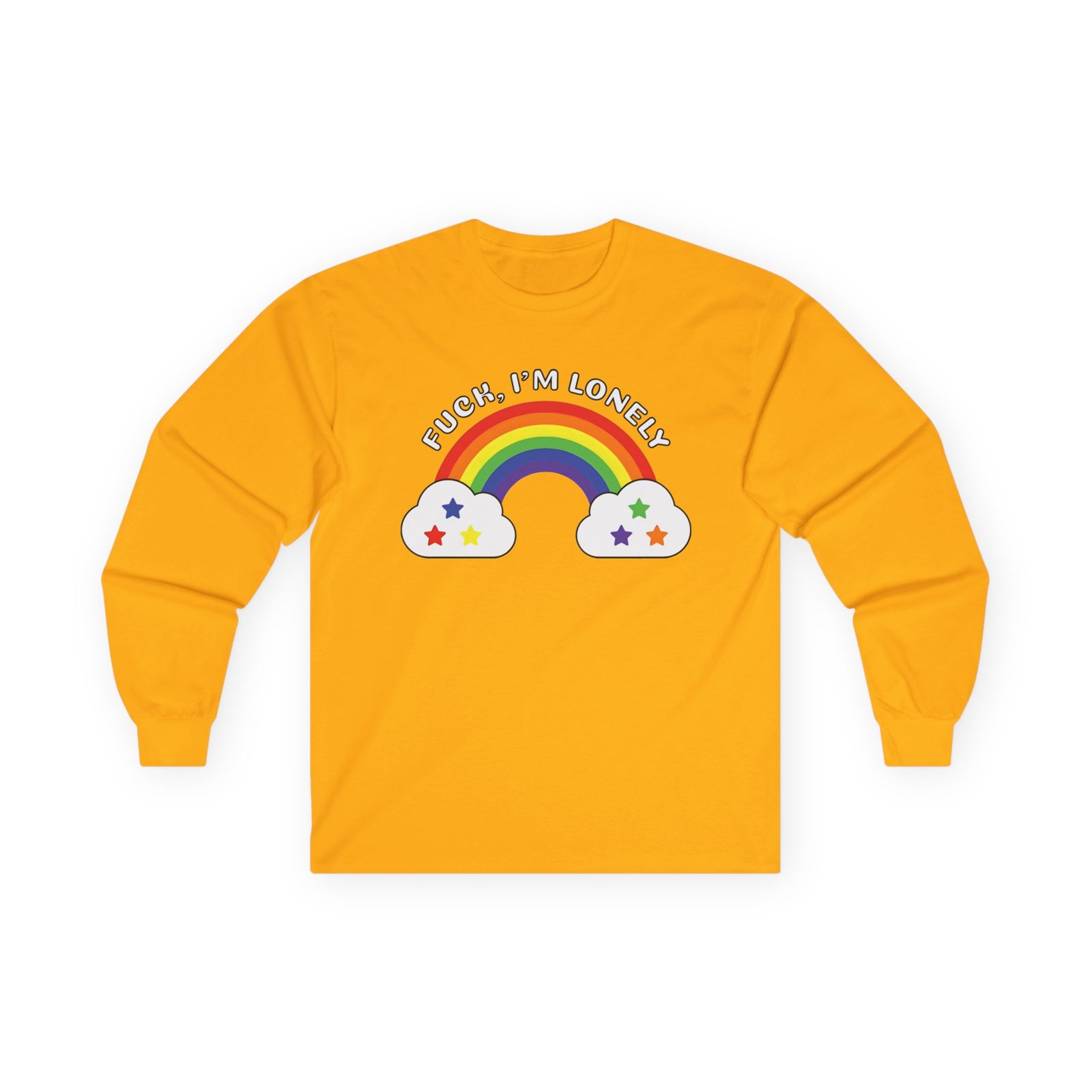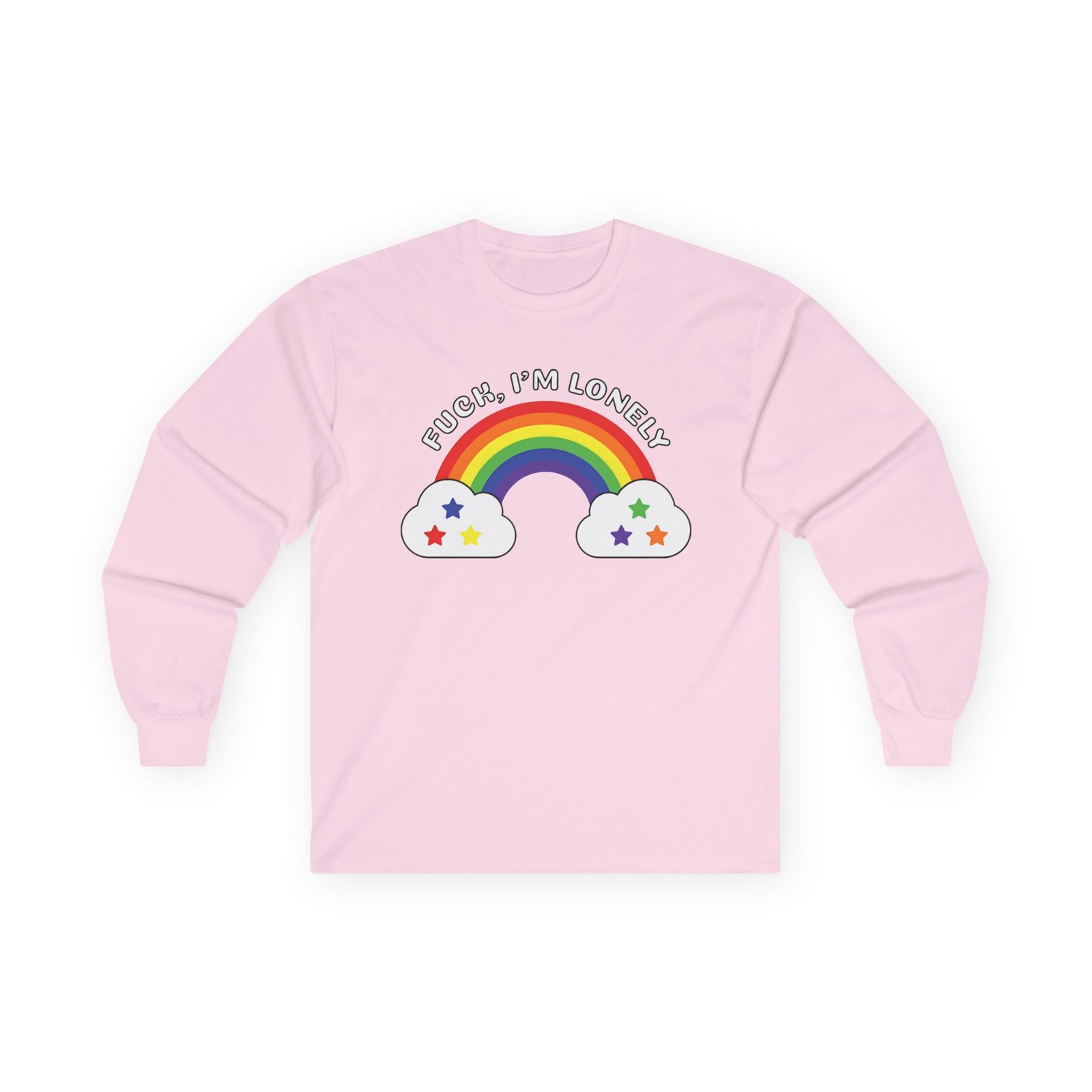 A bit more formal than a standard-issue t-shirt, the Lauv Fuck I'm Lonely Rainbow ultra cotton long sleeve tee is a clear comfort winner. The sleeves also act as a nice frame. There are no side seams. The shoulders are taped for improved durability. This makes for a good fitting around the shoulders and neck. The cotton used for these shirts is environmentally friendly.
