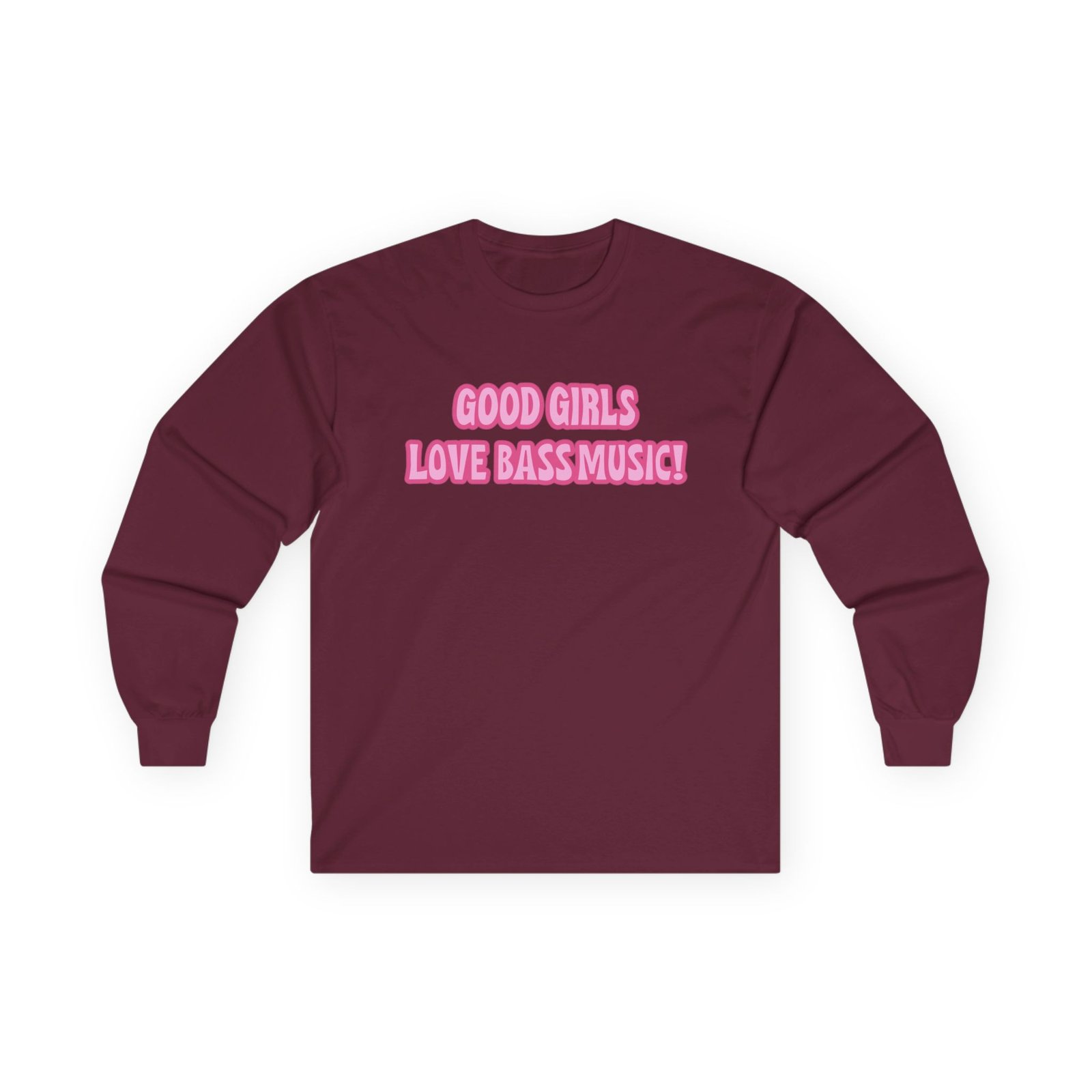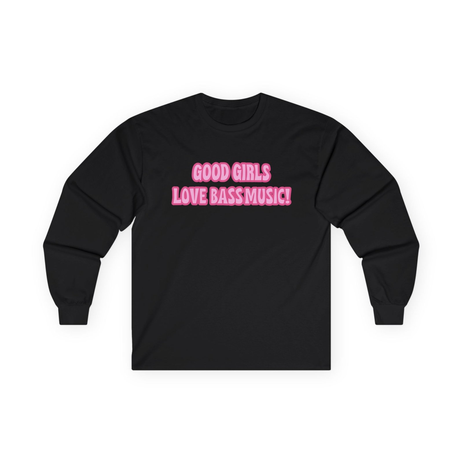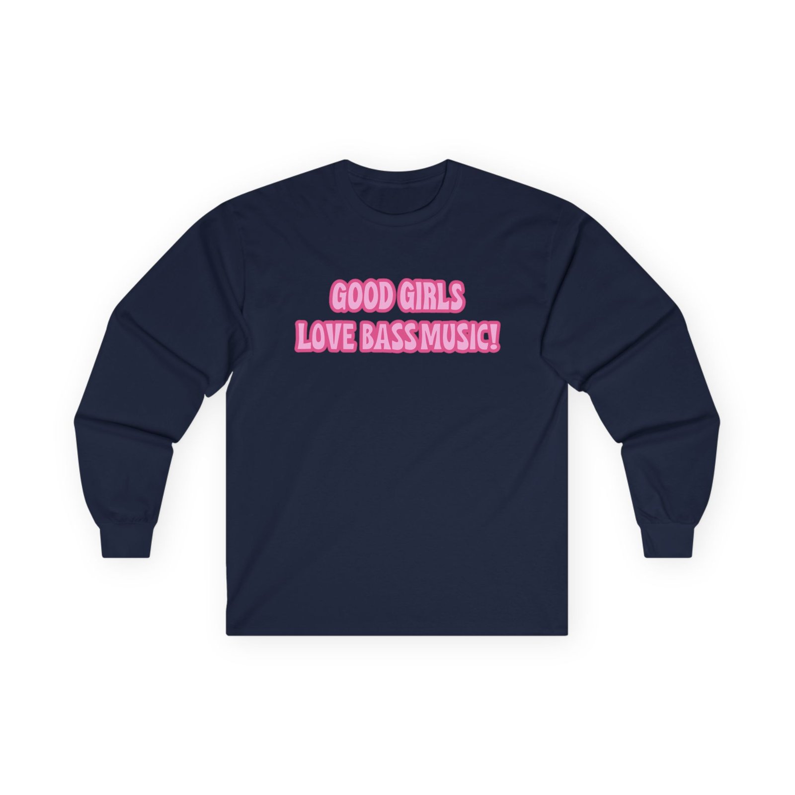 A bit more formal than a standard-issue t-shirt, the Leah Kateb Good Girls Love Bass Music ultra cotton long sleeve tee is a clear comfort winner. The sleeves also act as a nice frame. There are no side seams. The shoulders are taped for improved durability. This makes for a good fitting around the shoulders and neck. The cotton used for these shirts is environmentally friendly.