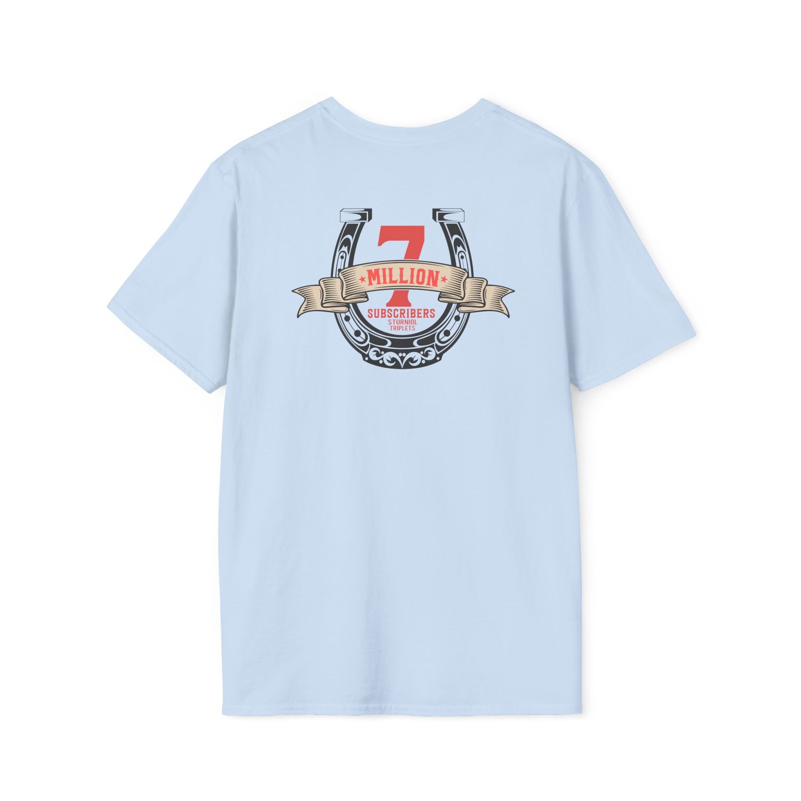 The Let's Trip 7M Subscribers Sturniolo Triplets unisex soft-style t-shirt puts a new spin on casual comfort. Made from very soft materials, this tee is 100% cotton for solid colors. Heather colors and sports grey include polyester. The shoulders have twill tape for improved durability. There are no side seams. The collar is made with ribbed knitting to prevent curling damage.