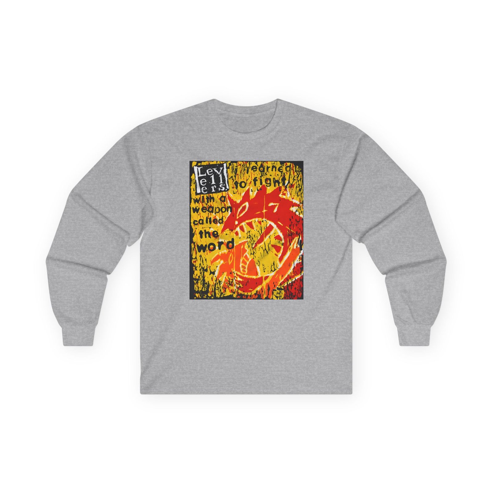A bit more formal than a standard-issue t-shirt, the Levellers Against Racism ultra cotton long sleeve tee is a clear comfort winner. The sleeves also act as a nice frame. There are no side seams. The shoulders are taped for improved durability. This makes for a good fitting around the shoulders and neck. The cotton used for these shirts is environmentally friendly.